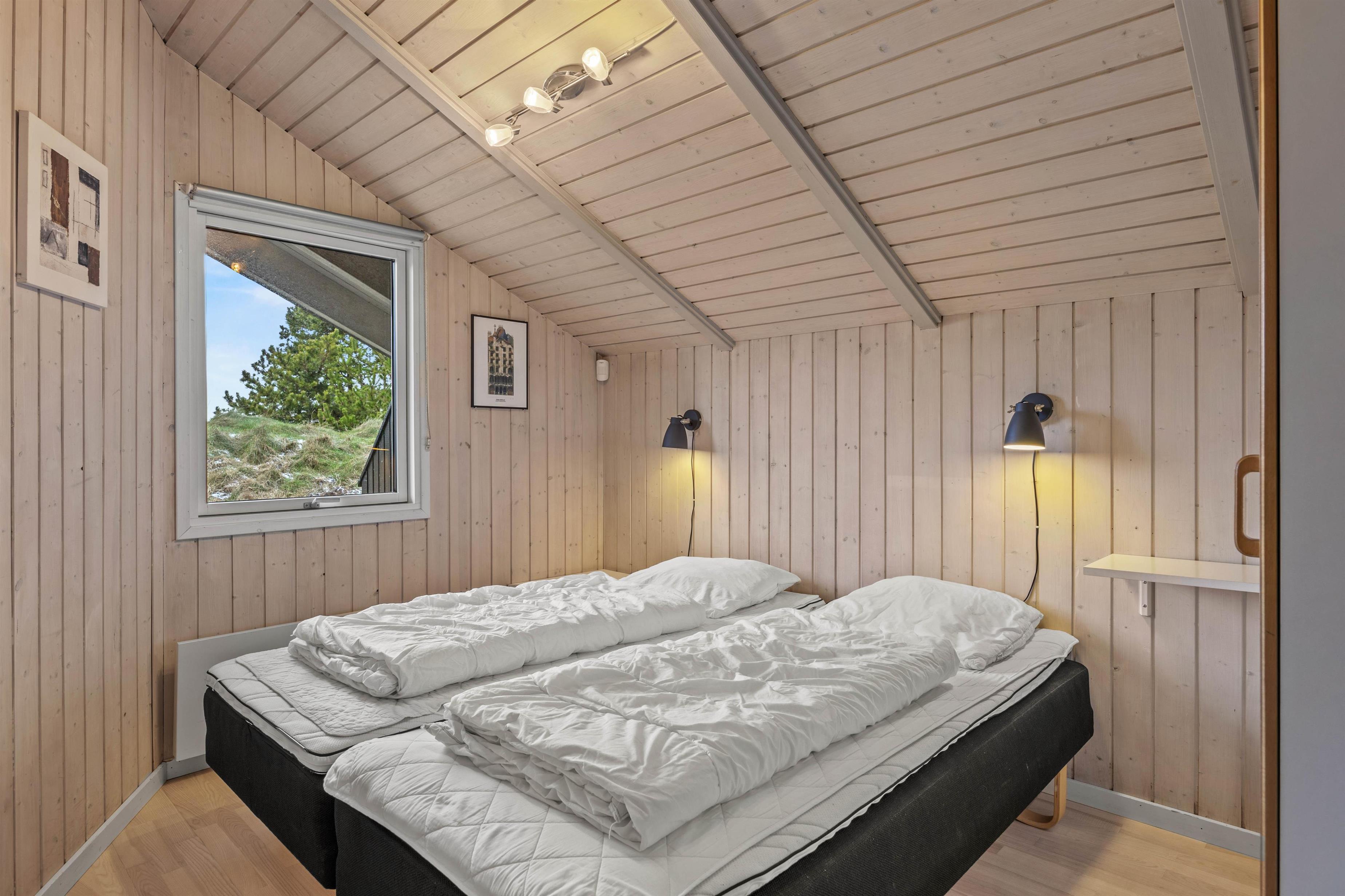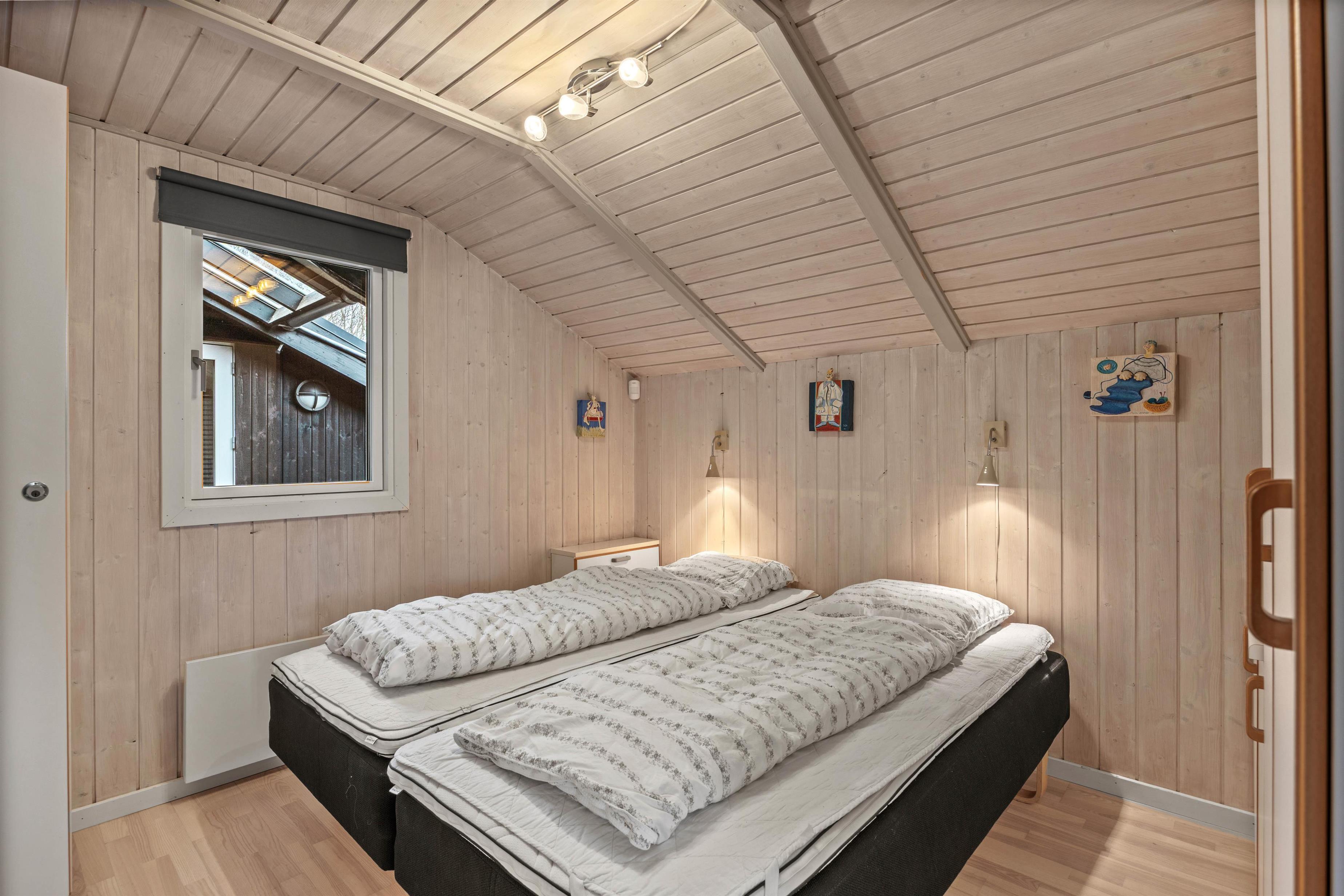 Med et rummeligt boligareal på 124 m² byder sommerhuset på god plads til op til 8 personer. Indendørs finder I 4 hyggelige soveværelser med 3 dobbeltsenge og 2 enkeltsenge. For ekstra wellness og forkælelse er der en stor sauna med udsigt til det moderne badeværelse, som desuden rummer hele 2 spabade samt en rummelig bruseniche. Den komfortable sofa indbyder til afslappende timer, ligesom hyggelige aftener foran brændeovnen sætter den perfekte feriestemning. En luft til luft varmepumpe sørger ligeledes for et behageligt indeklima året rundt.