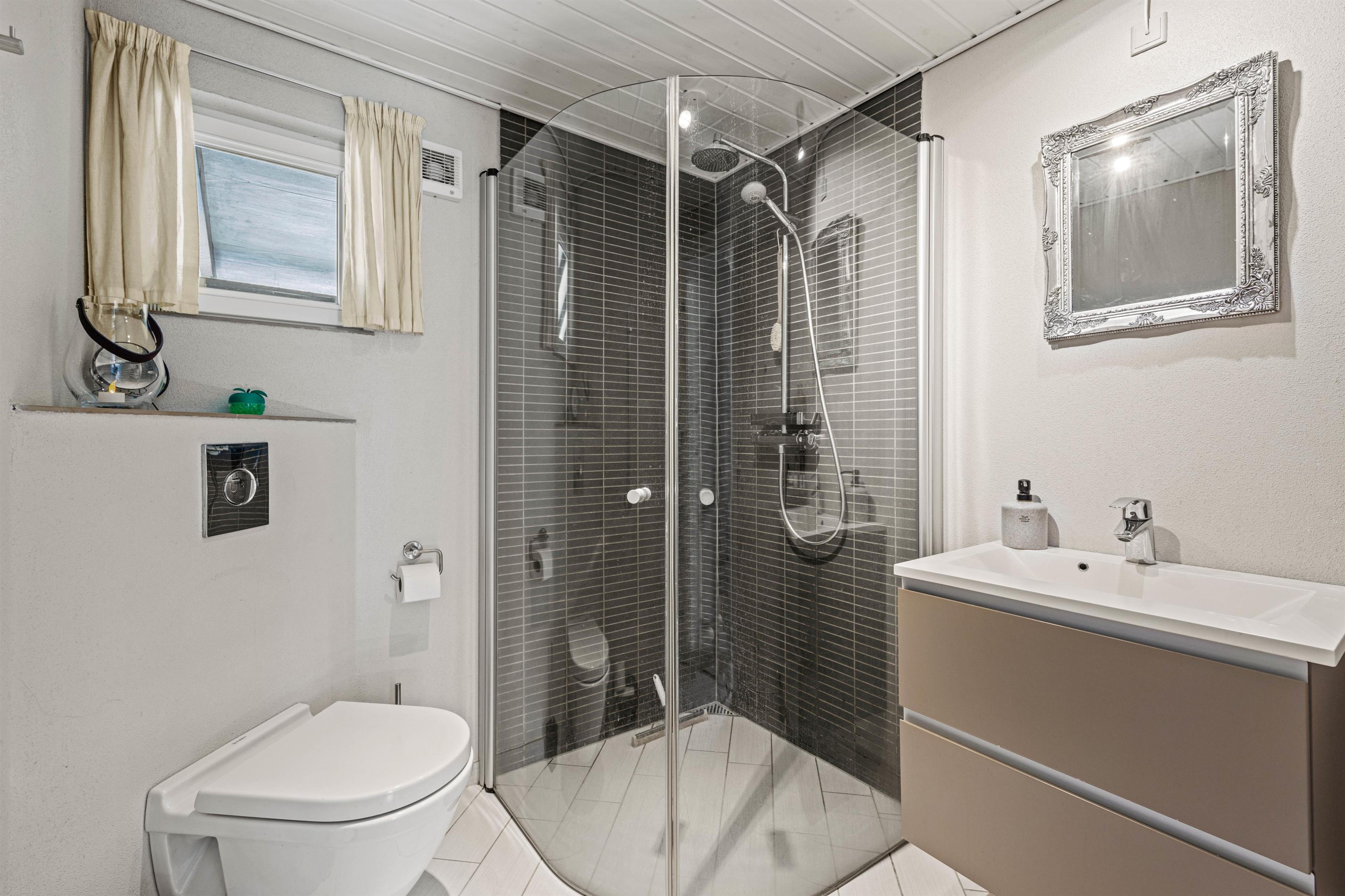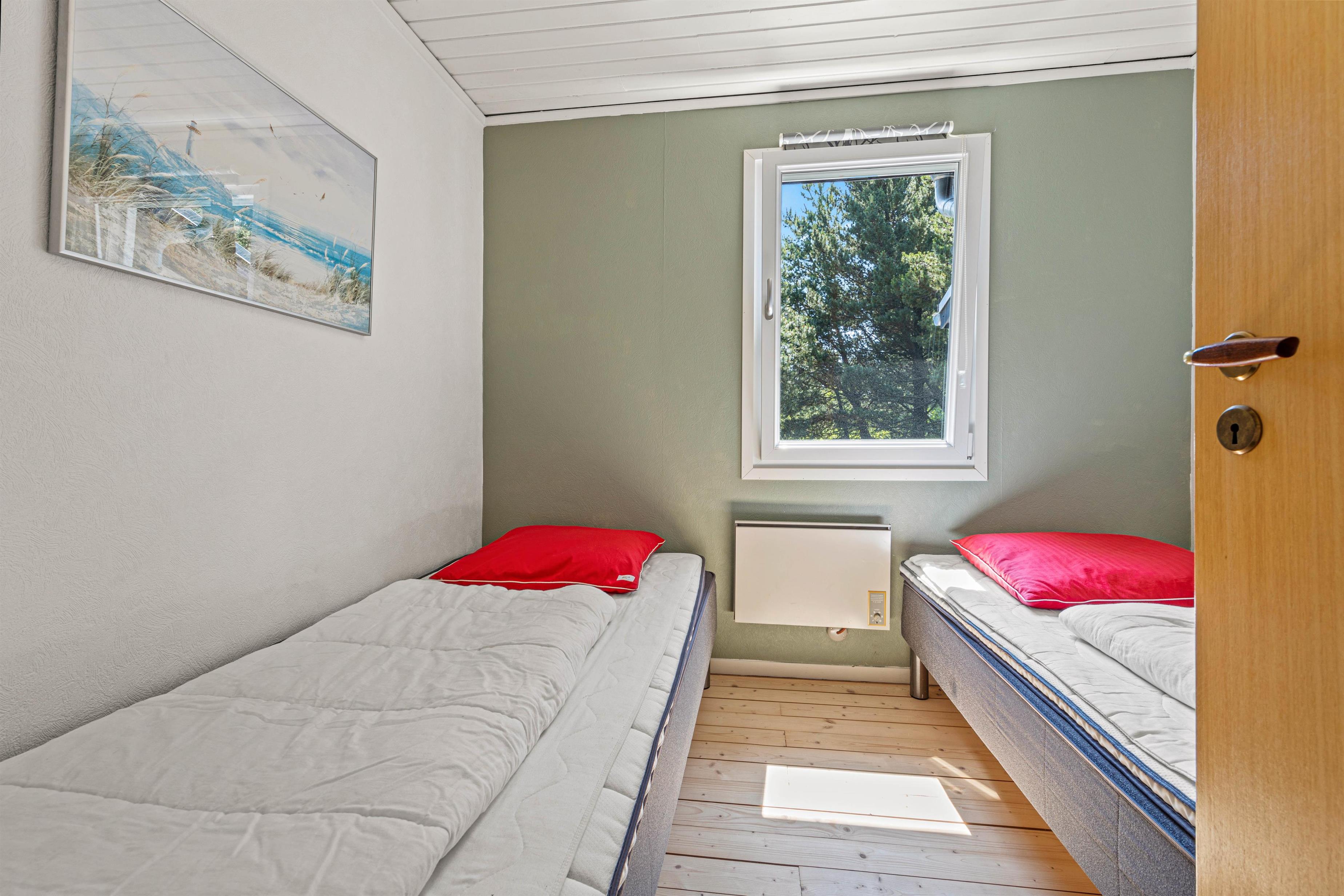 Det træbeklædte gulv giver feriehuset en varm atmosfære. Det velholdte badeværelse med bruser og gulvvarme sikrer, at I kan starte dagen med ro og afslutte den afslappet. Der er masser af plads til at hvile og trække sig tilbage efter begivenhedsrige feriedage.