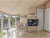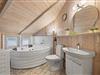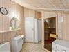 På badeværelset finder I jeres eget wellnessområde med sauna og boblebad. Her kan I slappe af i det varme vand eller nyde en dejlig stund i sauanen efter en oplevelsesrig feriedag på øen. Der er gulvarme i badeværelset og her har I også en vaskemaskine til rådighed i sommerhuset, så I kan vaske lidt håndklæder i løbet af ferien.