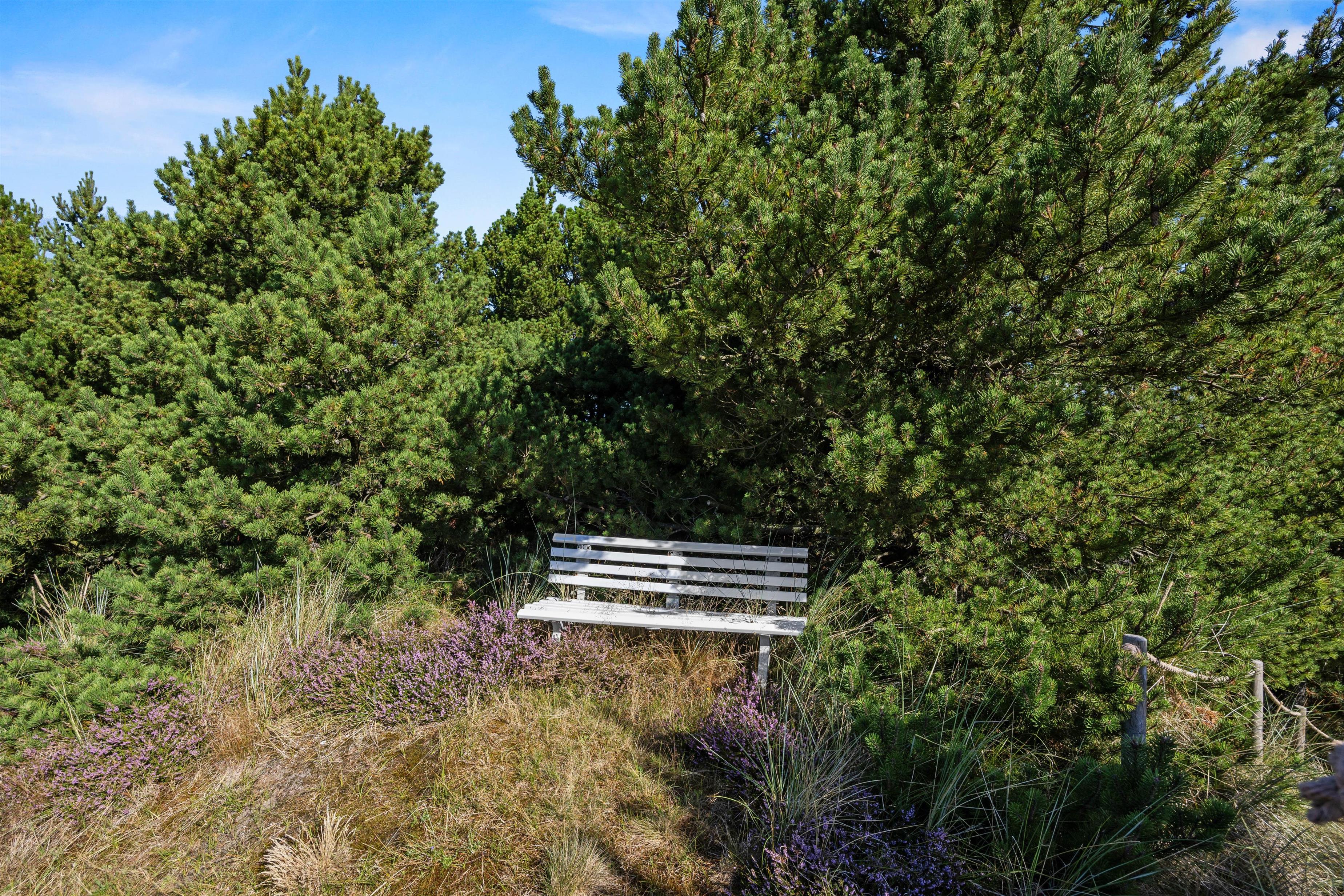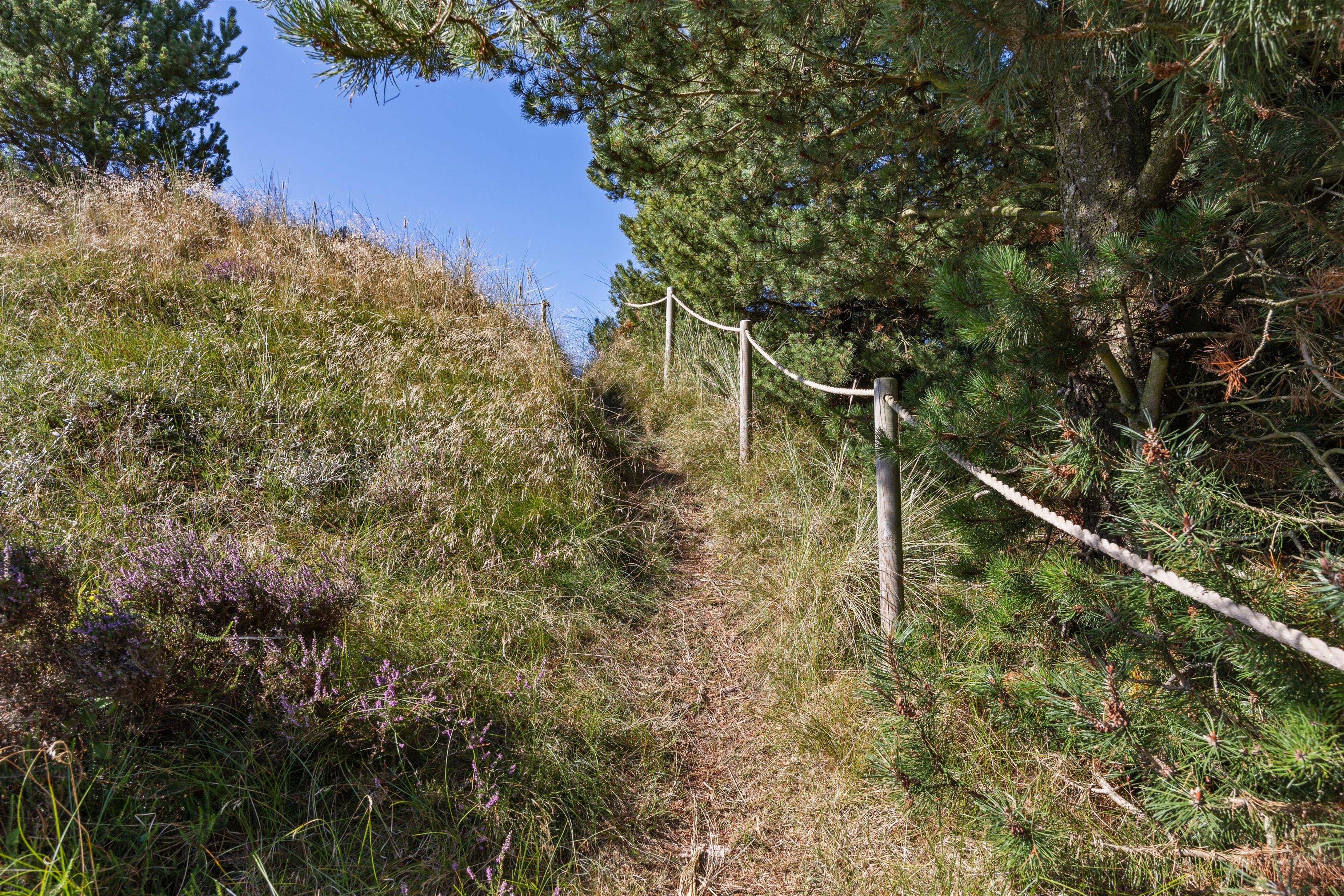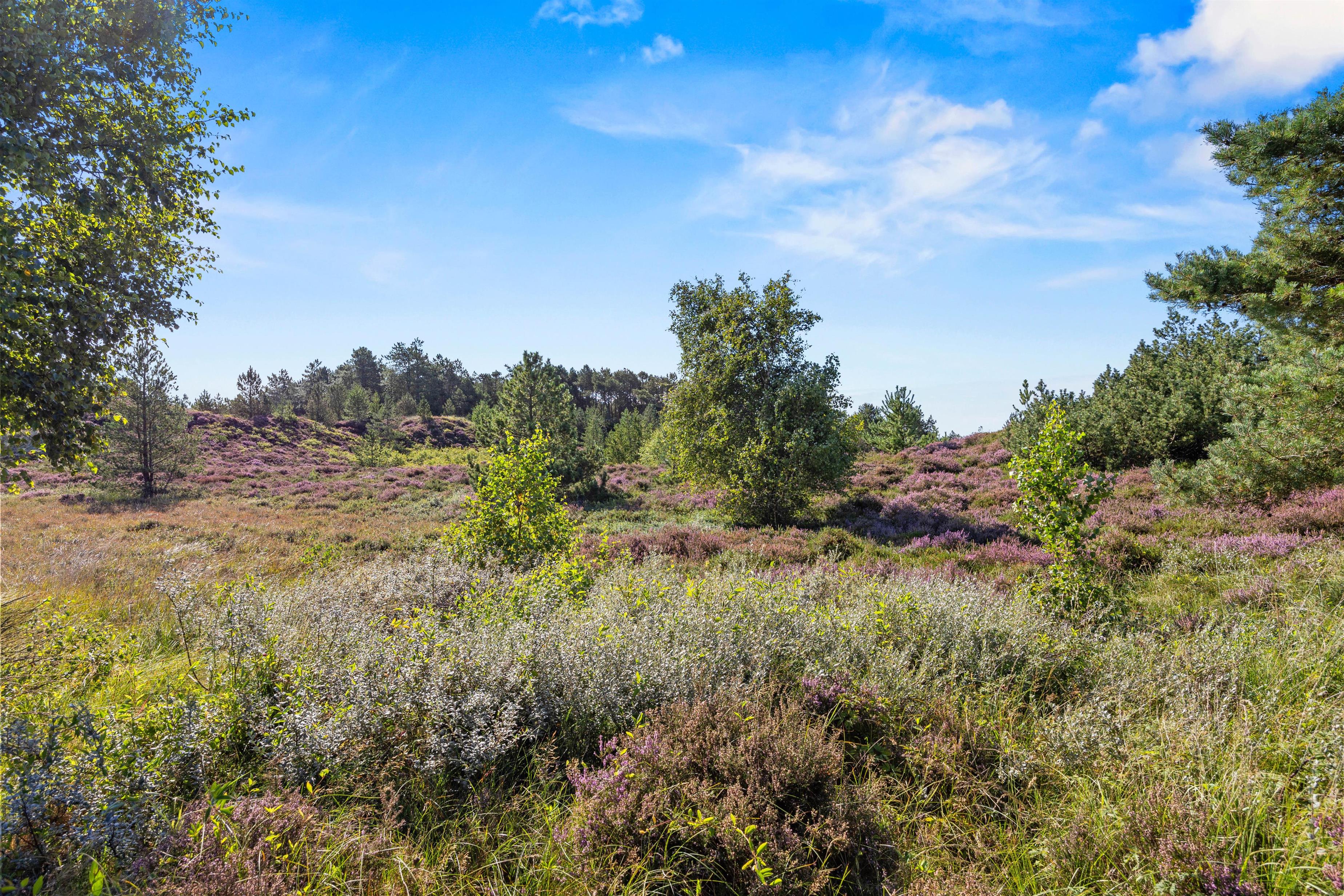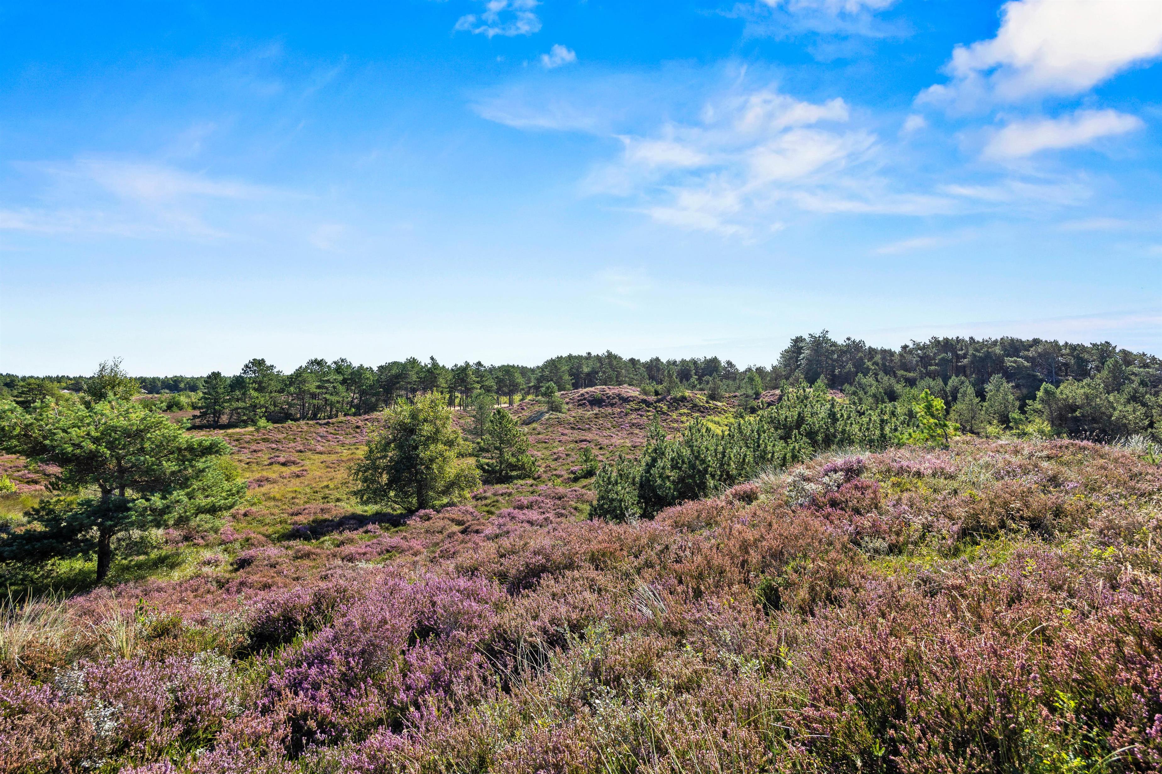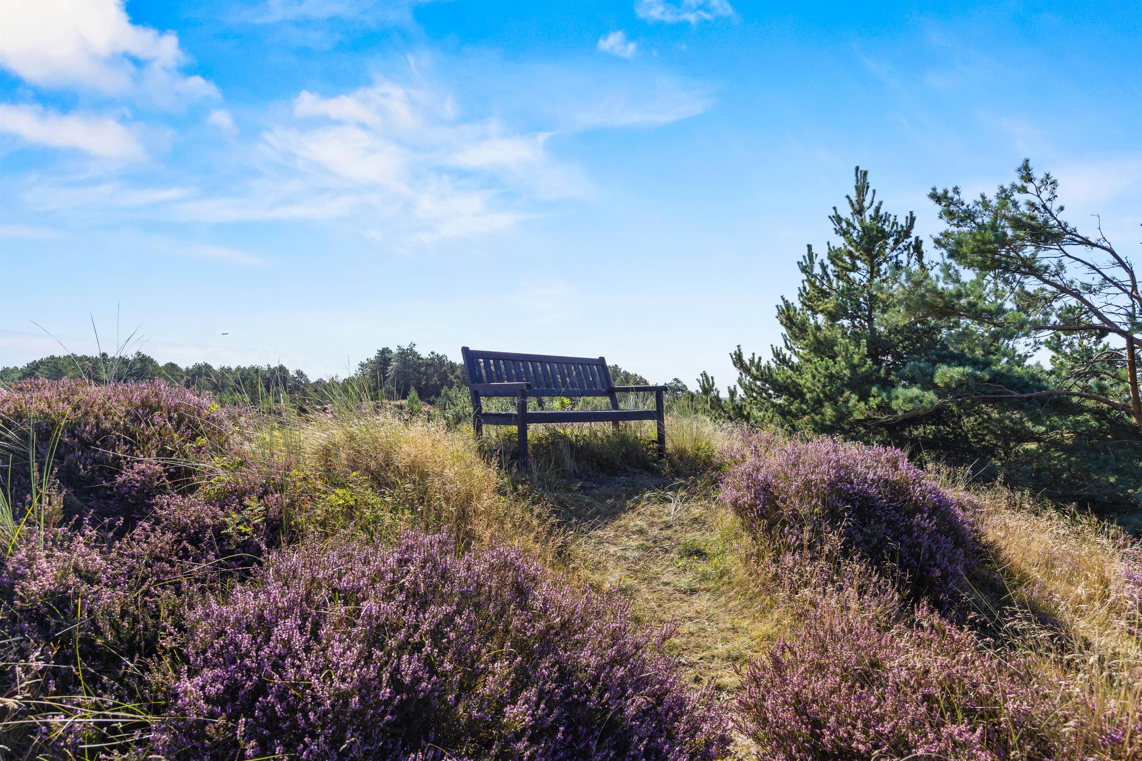 Fra opholdsområdet har I adgang til de delvist overdækkede terrasser, som indbyder til mange timer i frisk luft, solbadning eller til at afslutte dagen med et lækkert grillmåltid. Især når den omkringliggende hede blomstrer, har I en smuk udsigt, akkompagneret af fuglesang og duften af skov. For jeres børn er der egen legeplads på den 2.500 m2 store grund. Klatring, rutsjebane, gynger og sandkasse - mens I tilbereder maden eller måske læser en bog, er børnene godt beskæftiget. På bakken ved siden af huset, er der lavet en lille sti op til toppen. Der kan I sidde på en bænk og nyde solnedgangen.