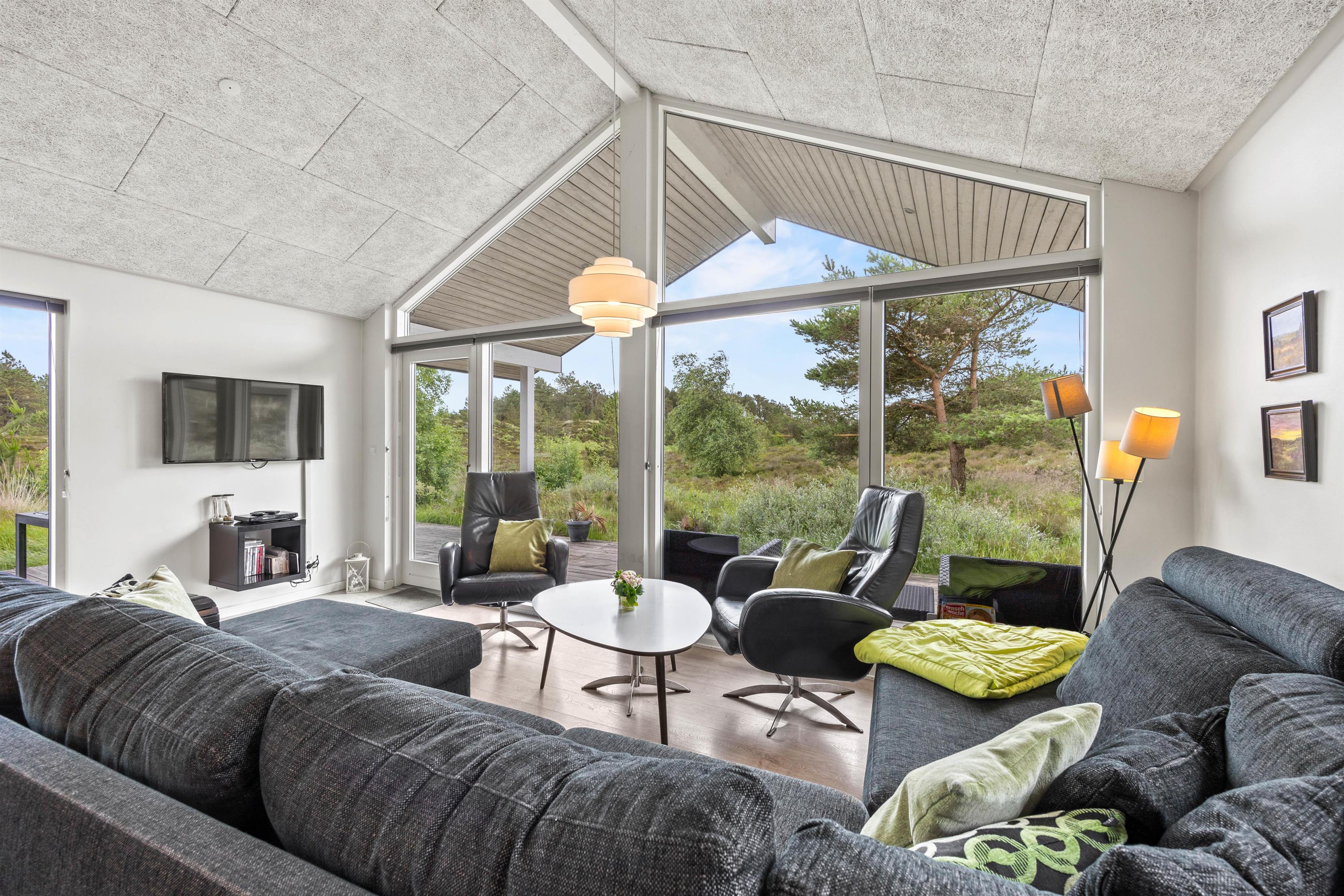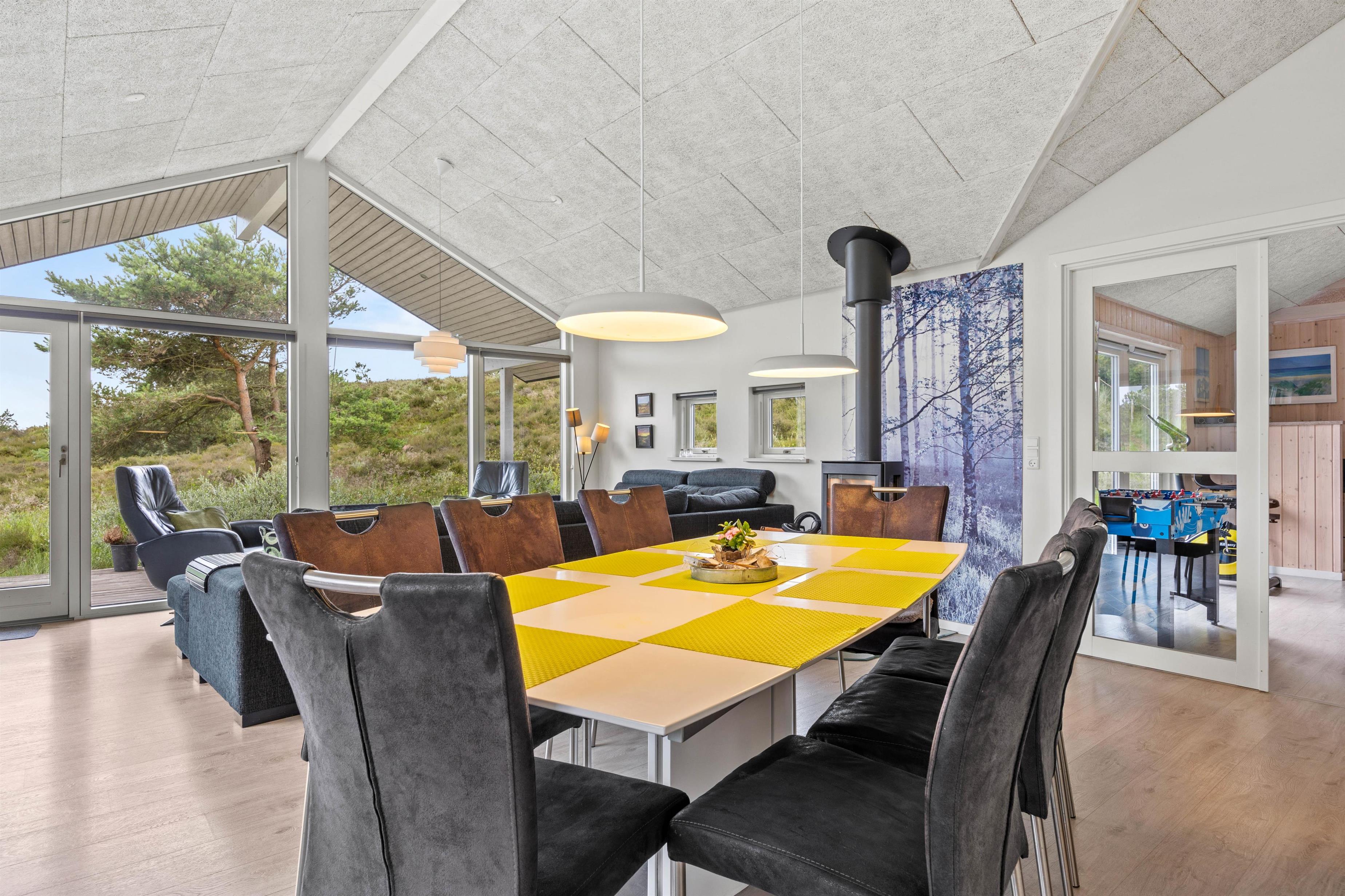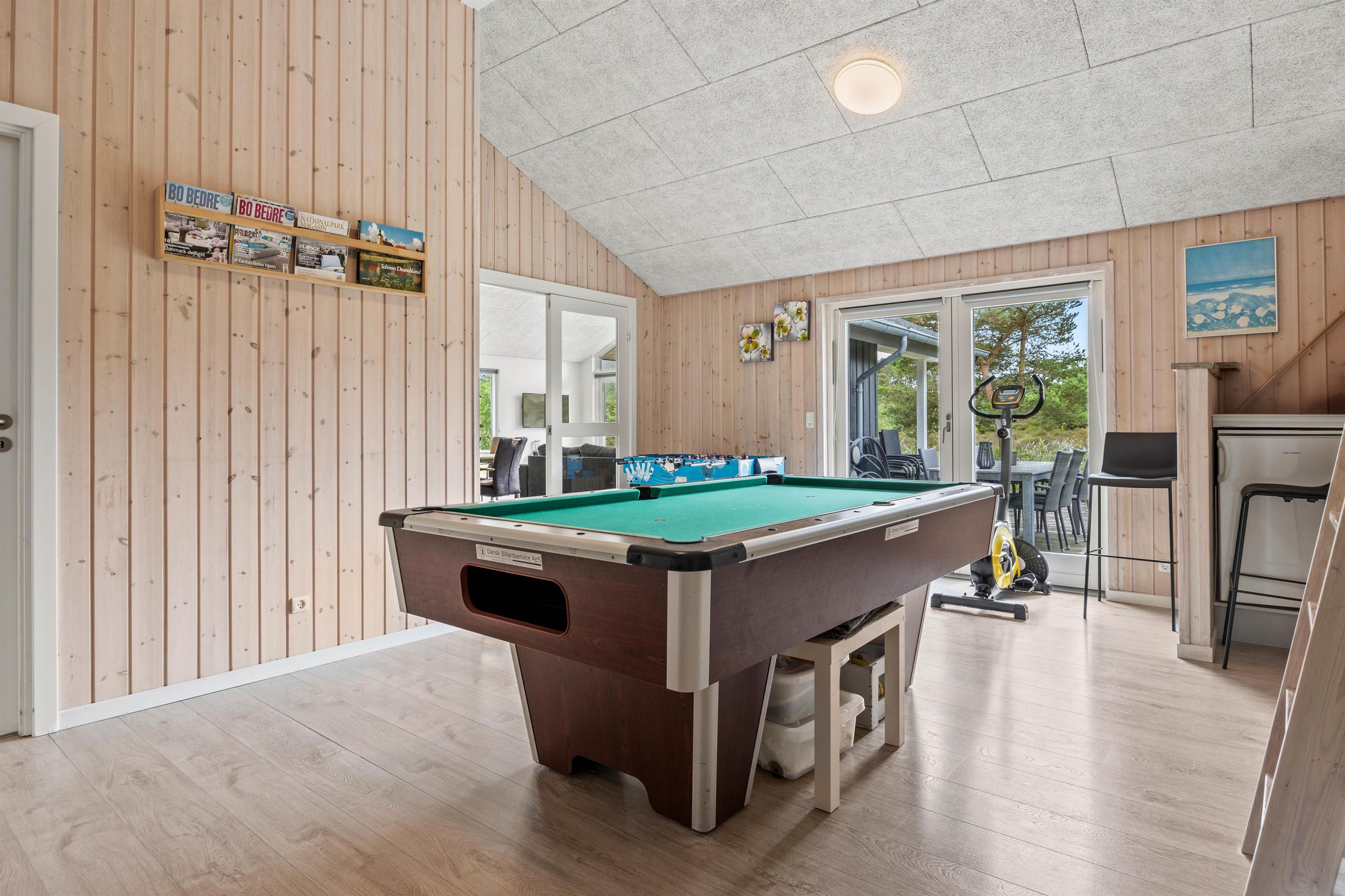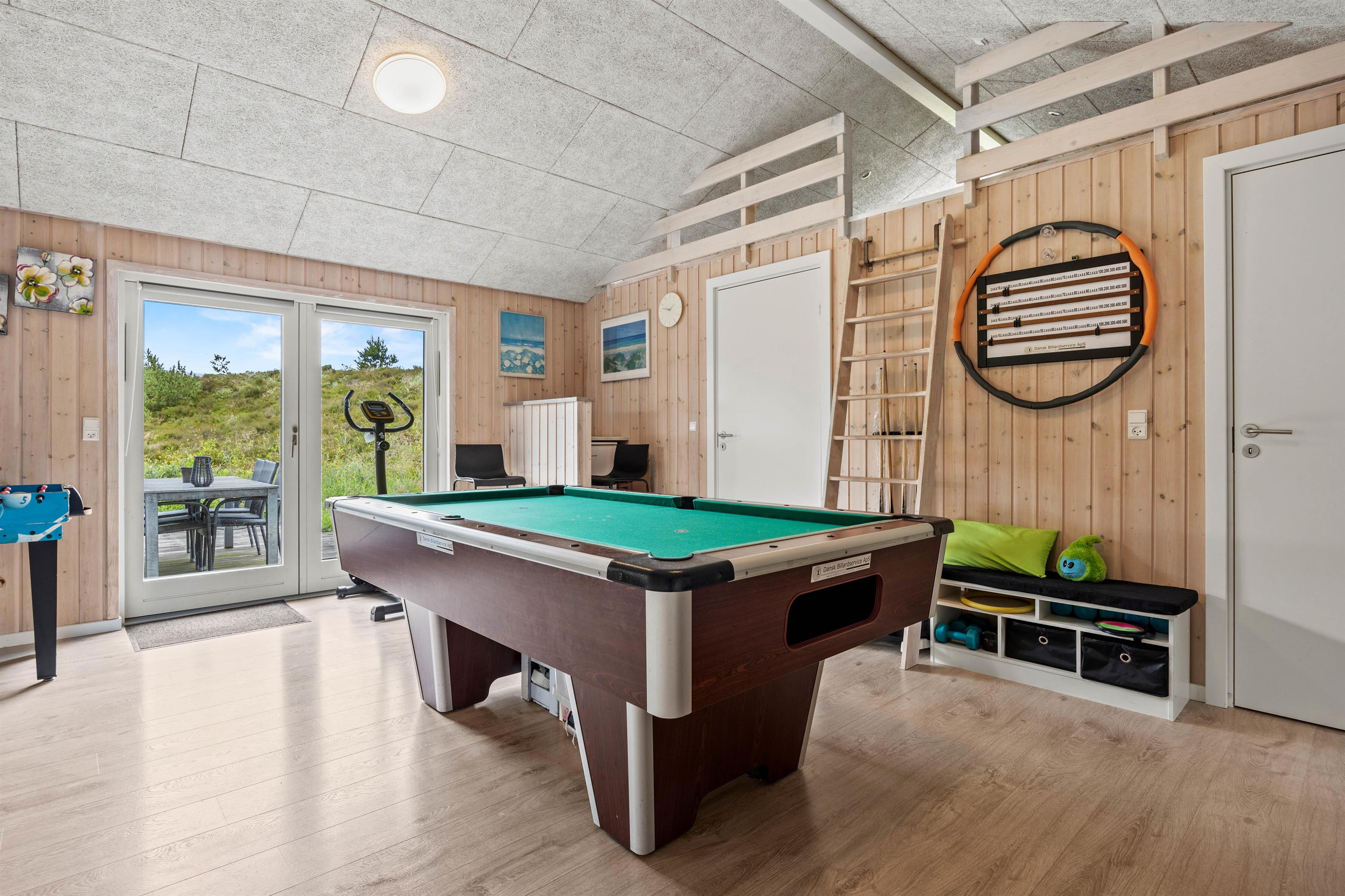 Brændeovnen topper feriestemningen, og alternativt skaber varmepumpen et behageligt indeklima med den ønskede temperatur. Aktivitetsrummet med bl.a. poolbillard og bordfodbold er klart det foretrukne rum, hvis vejret skulle vise sig fra sin ustadige side - her kan man spille og konkurrere med hinanden. Der er også et TV og en PlayStation.