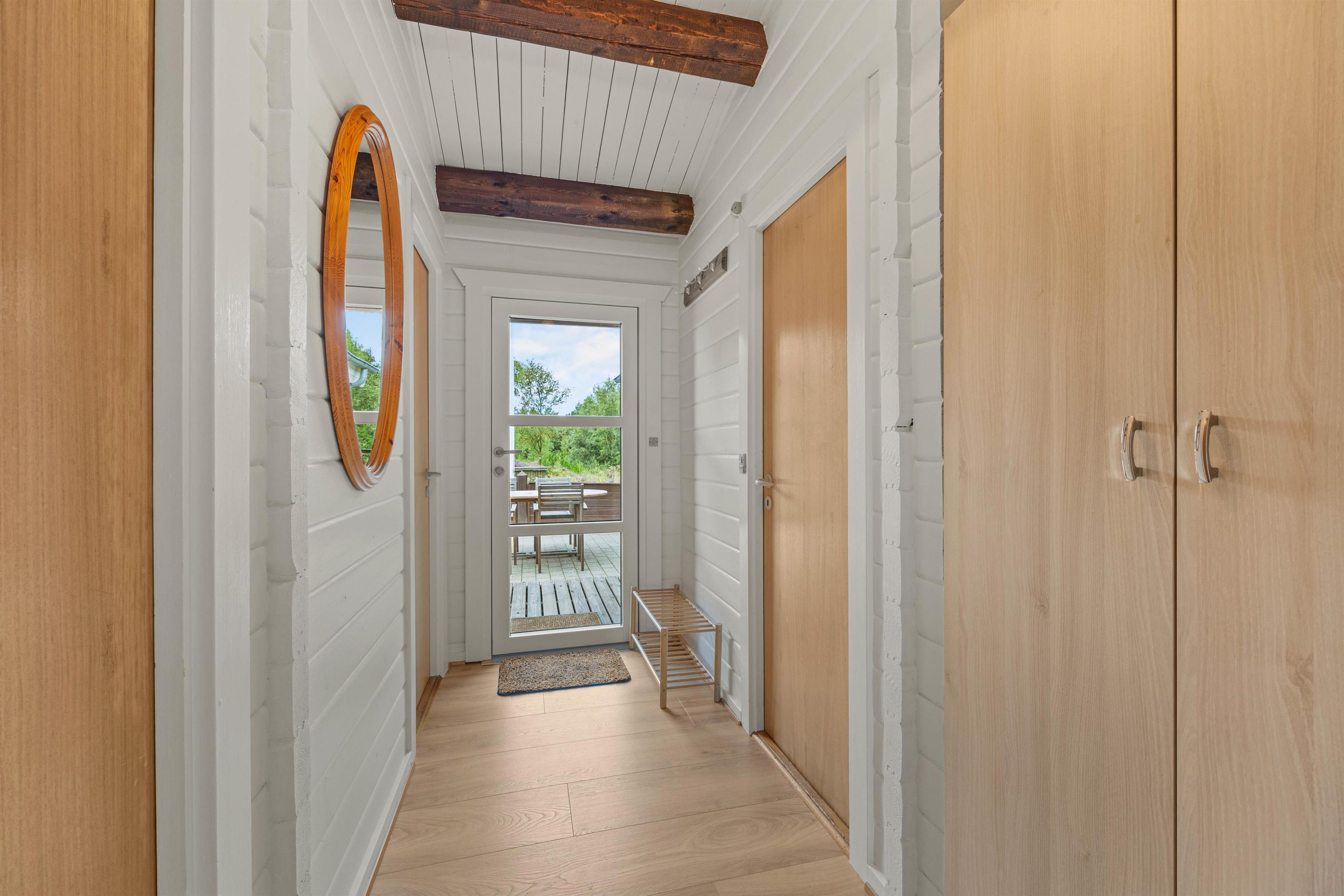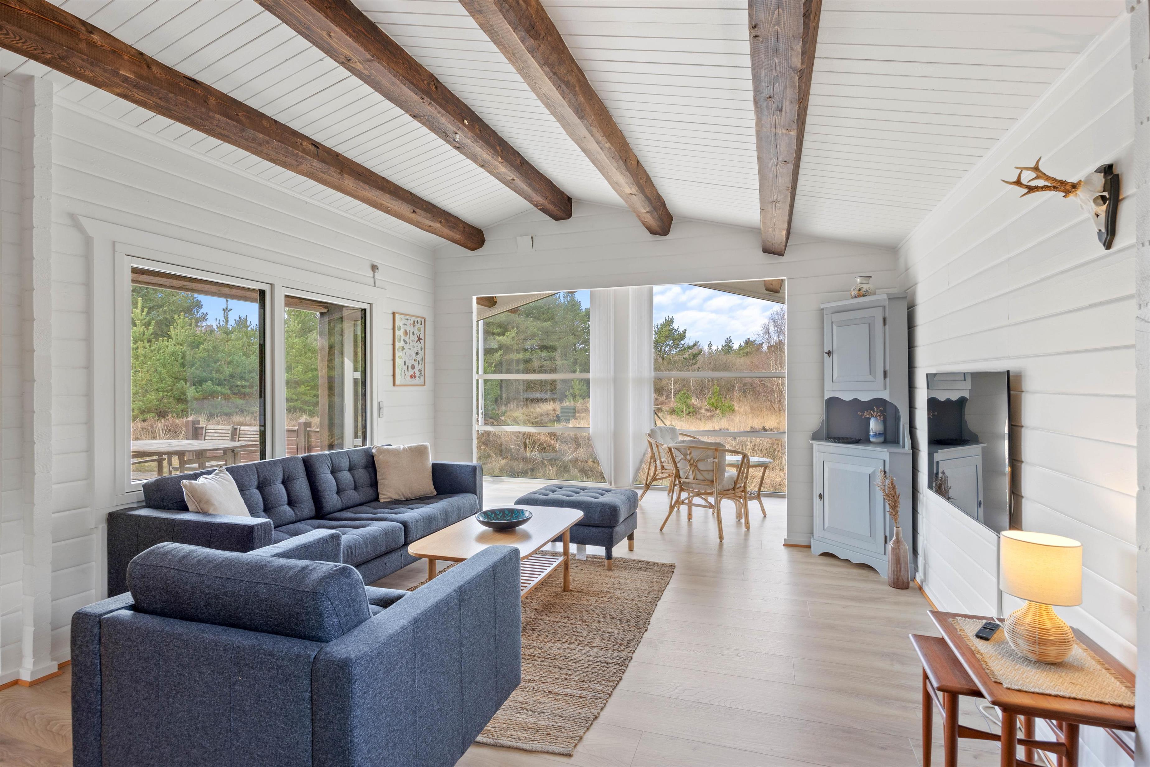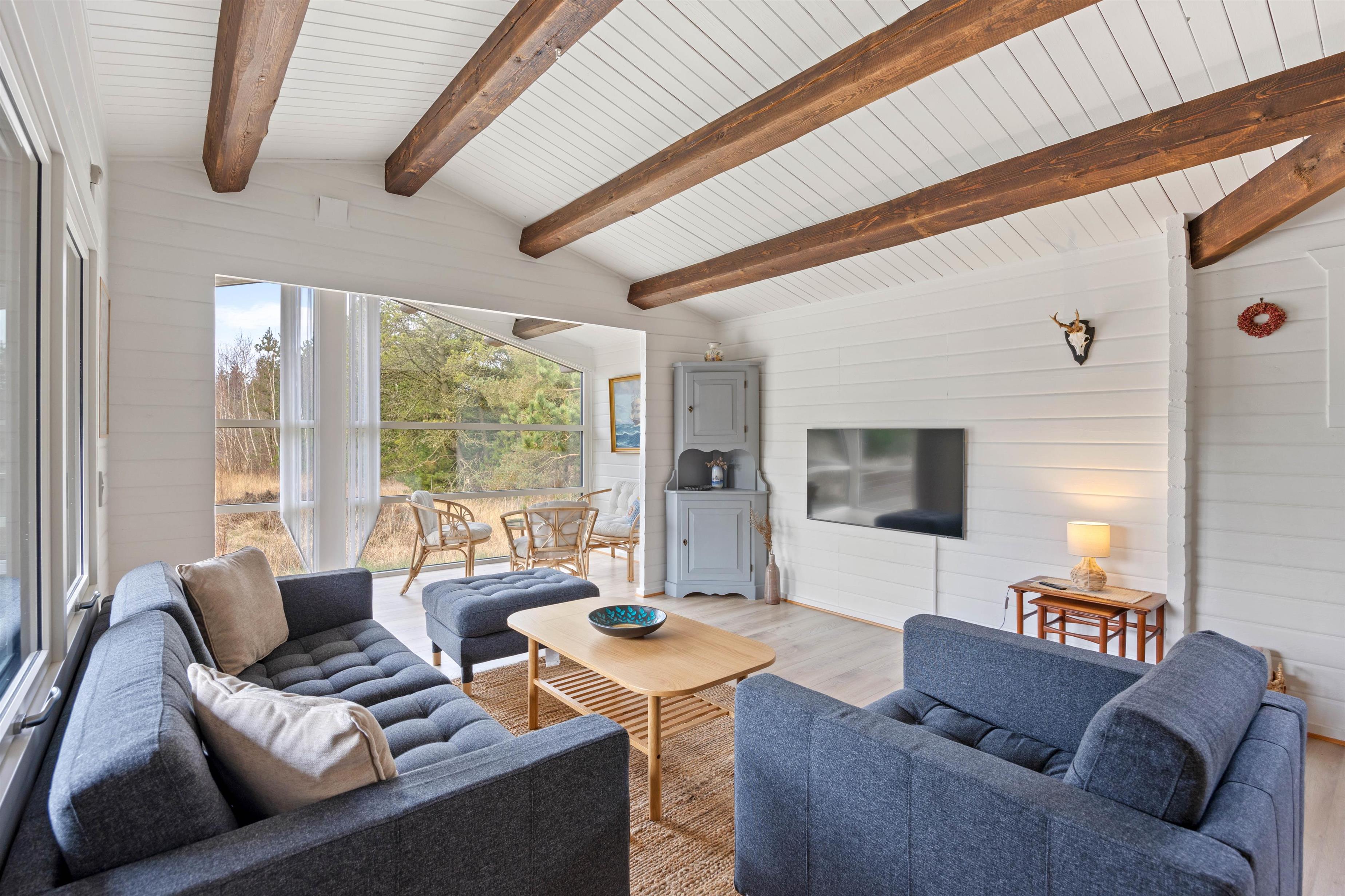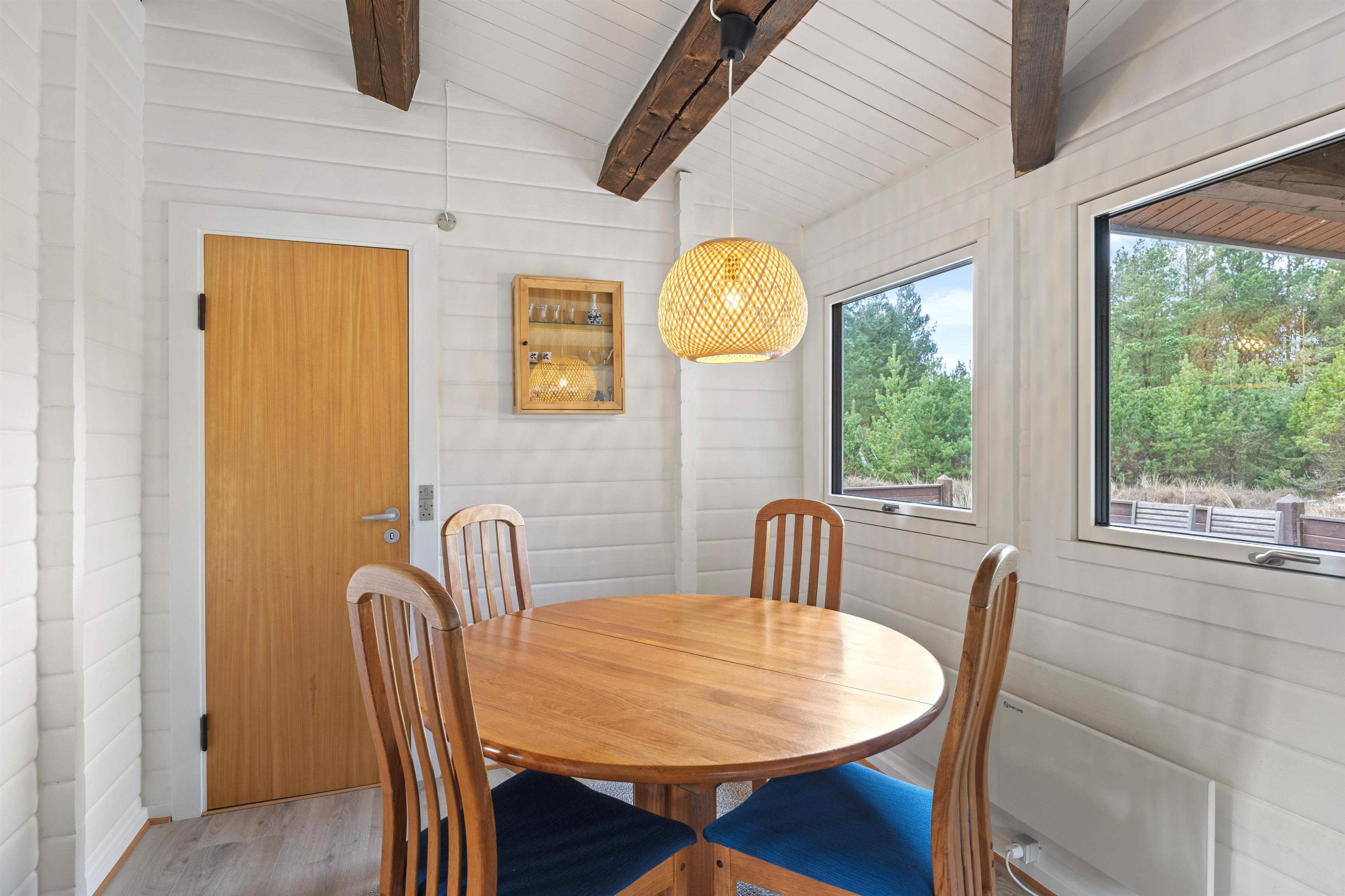 Velkommen indenfor på Trinnesvej 1! Et hyggeligt sommerhus, der emmer af sommerhusstemning med træbeklædte vægge, smukke loftbjælker og en knitrende brændeovn. Brændeovnen bidrager til en varm og indbydende atmosfære, perfekt til de køligere aftner. I stuen kan hele familien samles til mange gode stunder med brætspil, ferielæsning og meget mere!