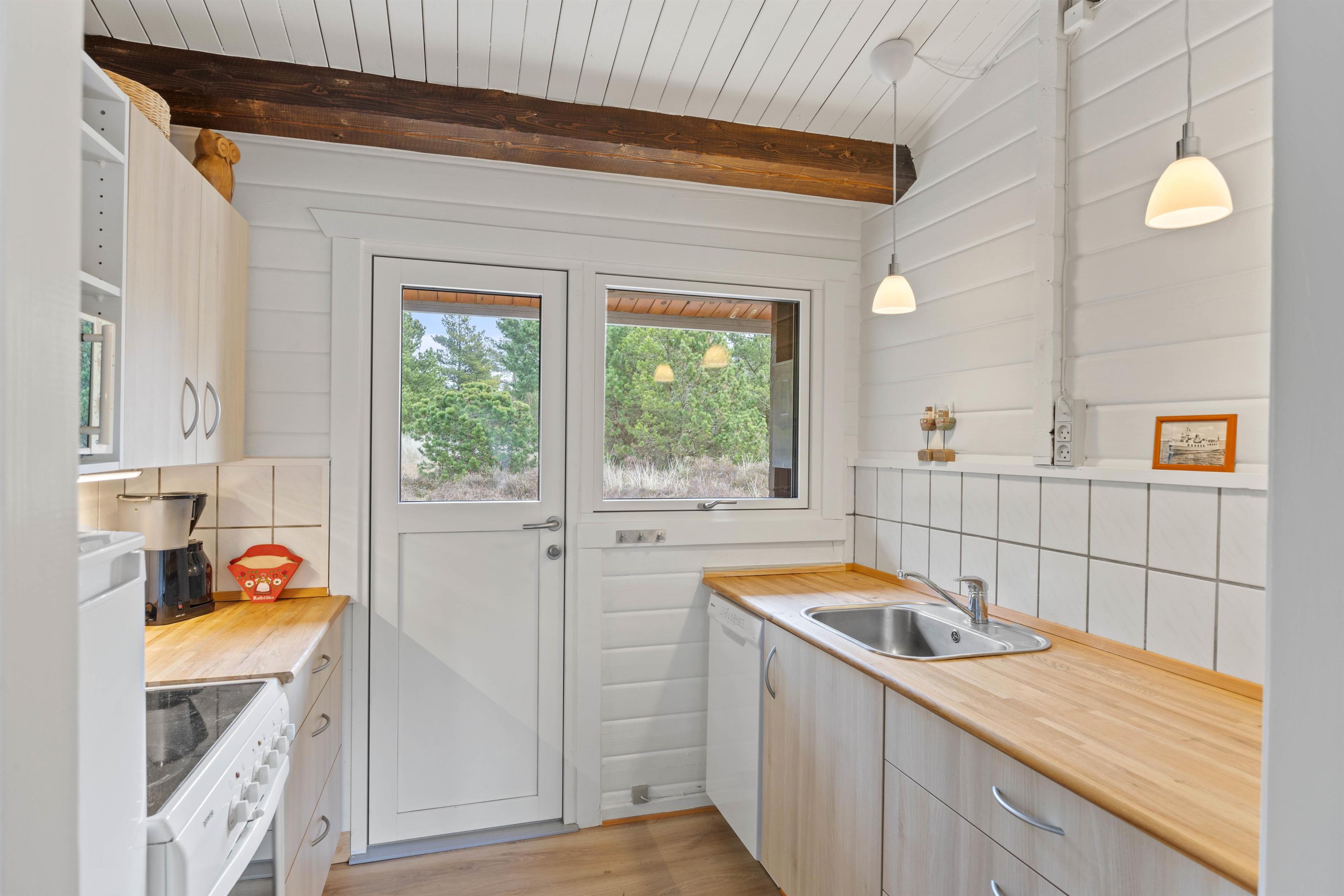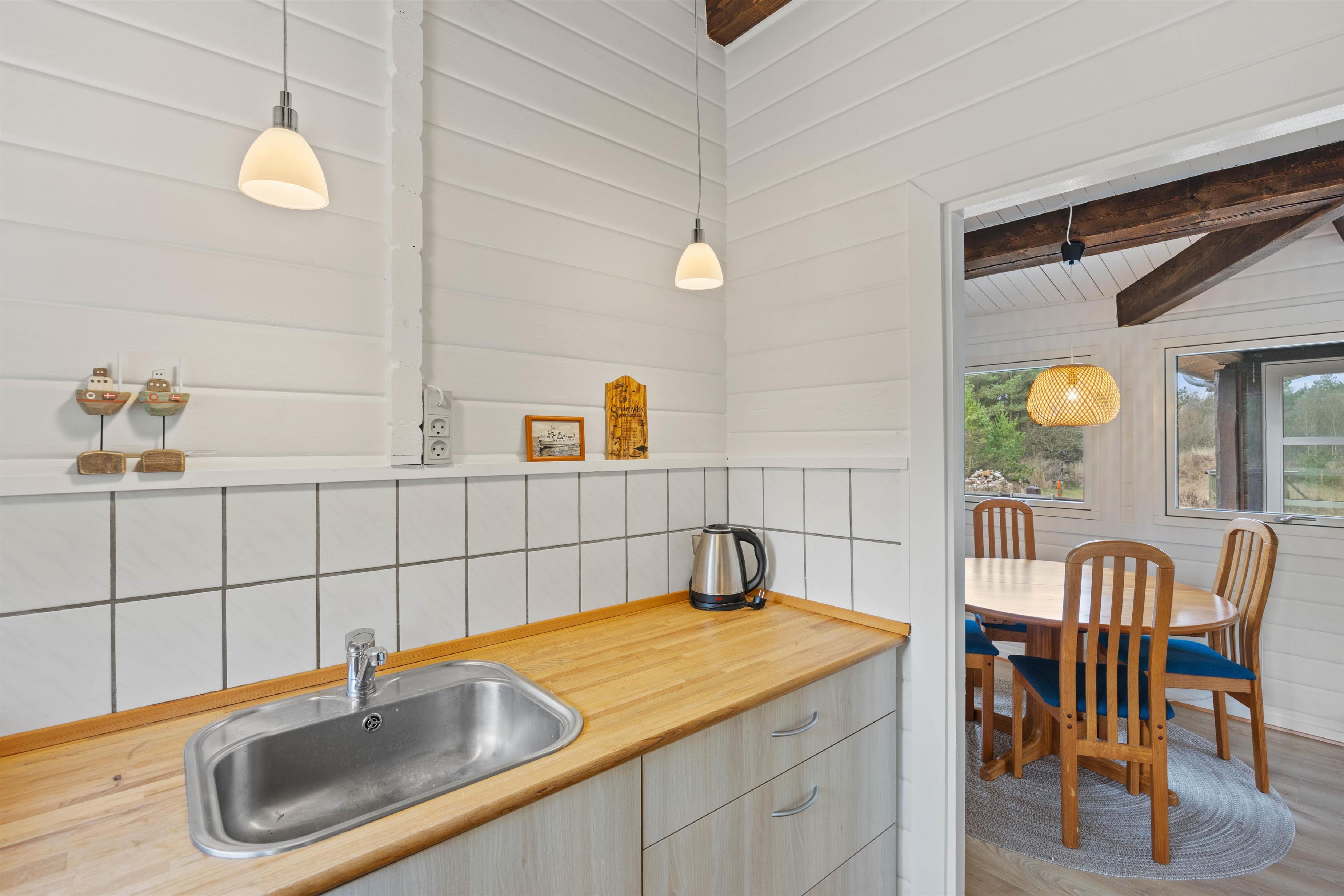 Her er lille fint køkken med tilhørende spiseplads. Her kan I nyde lækre egnsretter eller drikke varm kakao på en kølig efterårsdag. Her er 3 fine soverum samt badeværelse med gulvvarme.