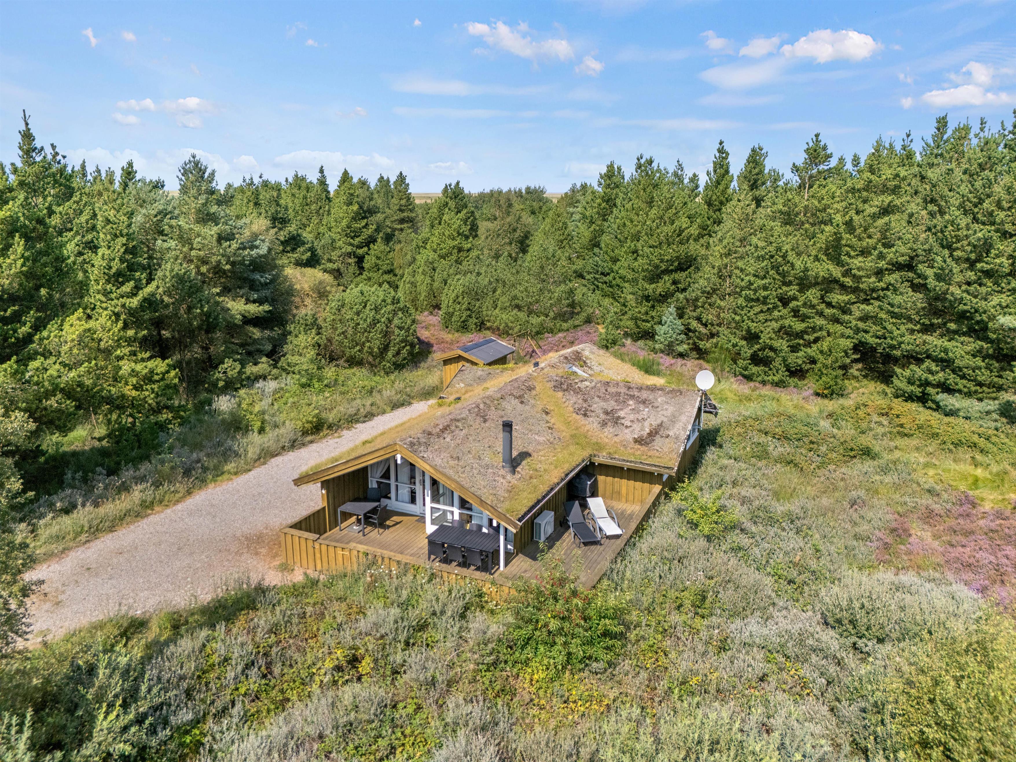 På den jyske hede mellem lyng, marehalm og fyrretræer ligger dette fine sommerhus godt afskærmet. Sommerhuset på Granvej 4 er komfortabelt indrettet til en ferie for hele familien. Indenfor har I brændeovn, spabad og sauna, mens den lukkede terrasse er perfekt til børnefamilien. Sidst, men ikke mindst, stiller husejer gratis brænde til rådighed, så I har mulighed for at tænde op i brændeovnen på de koldere dage og mærke en ægte sommerhusstemning.