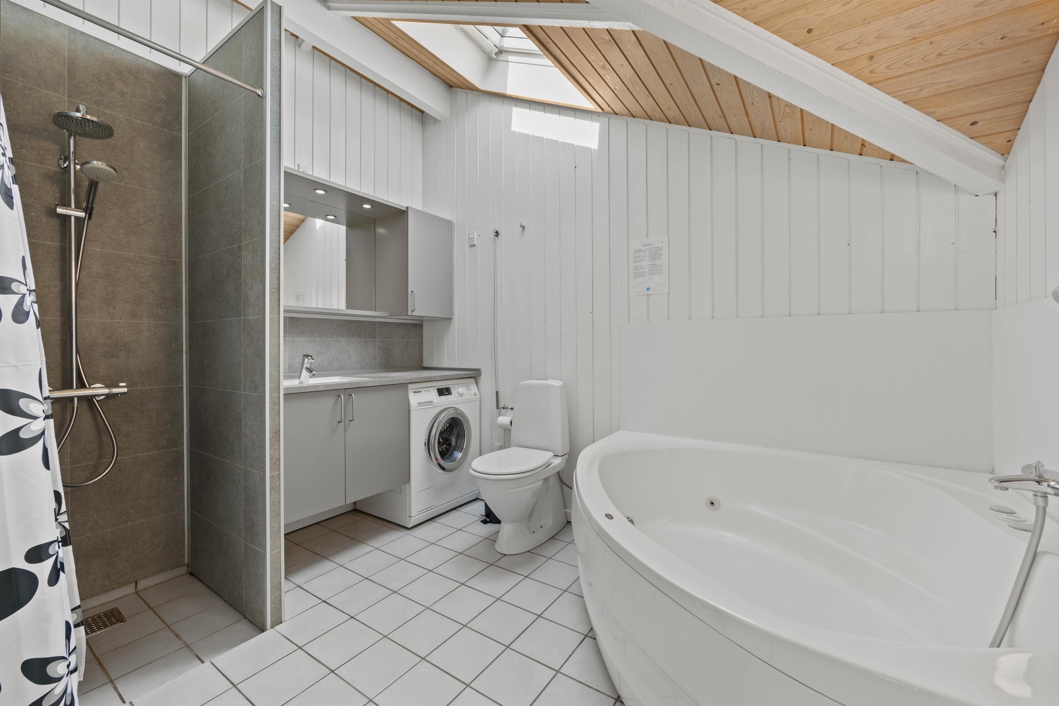 I sommerhuset finder I både et fint gæstetoilet samt et større badeværelse. På badeværelset kan I slappe af i boblebadet eller tage en ”svedetur” i saunaen – perfekt som et afbræk fra den travle hverdag. Sommerhuset byder på 4 fine soveværelser, alle med gulvtæppe, 3 med dobbeltseng og det sidste med 2 enkeltsenge. Til de små er der en højstol samt en barneseng.