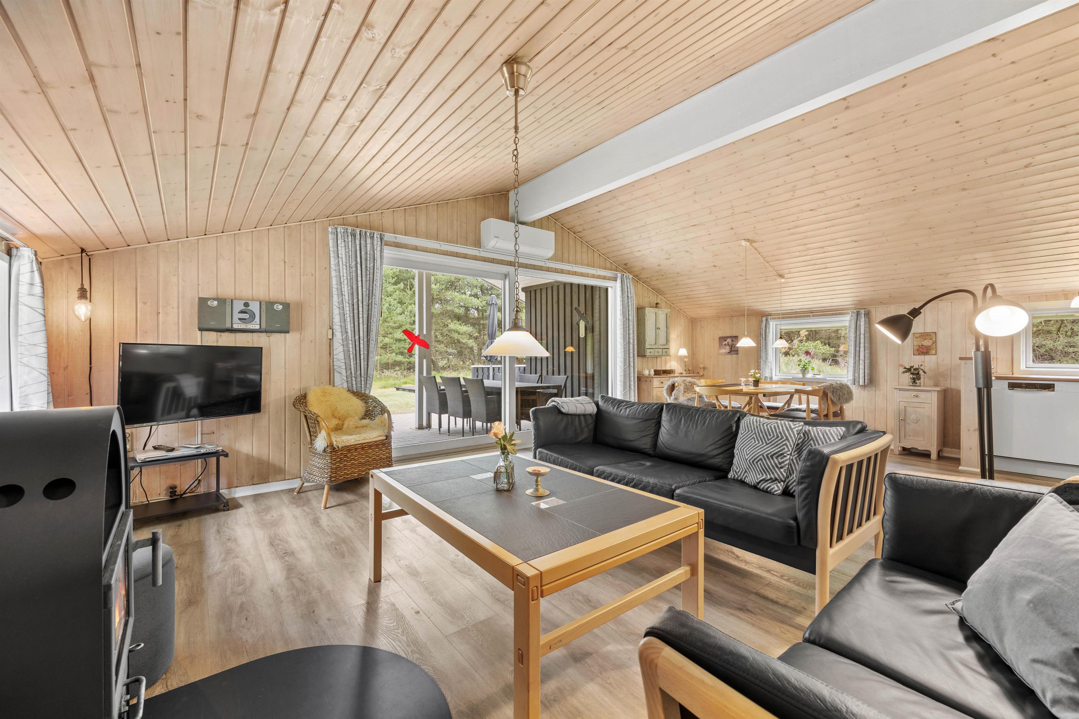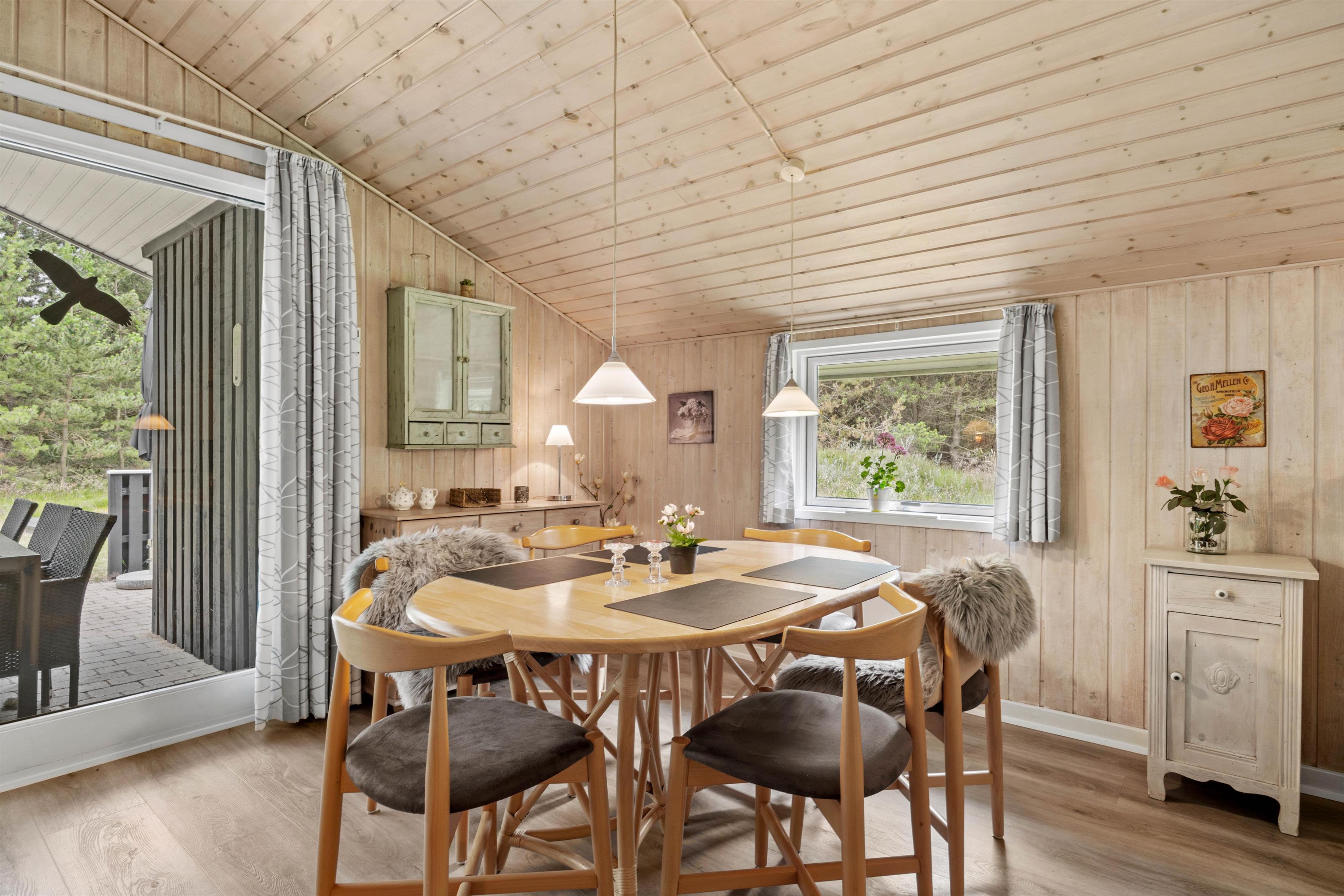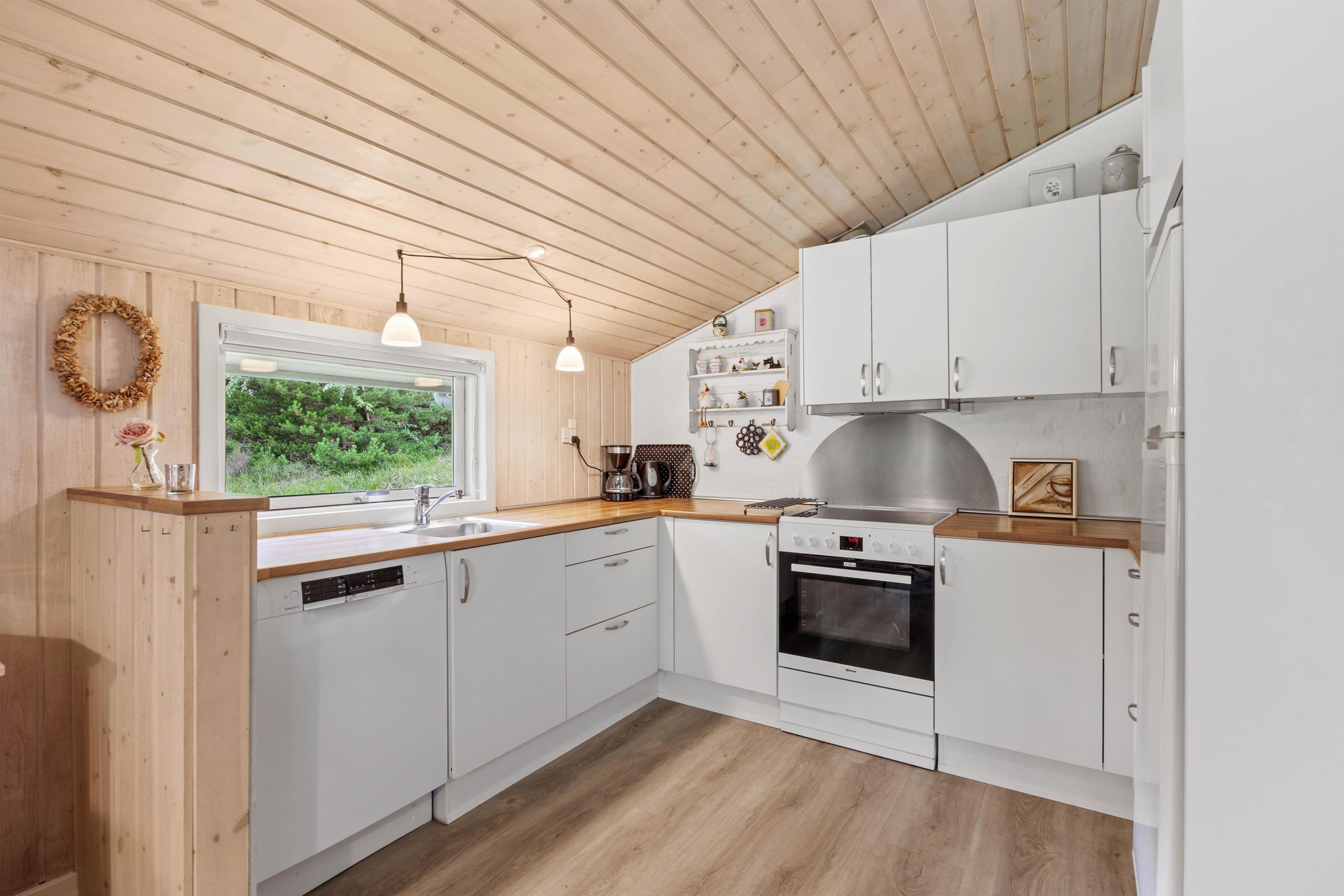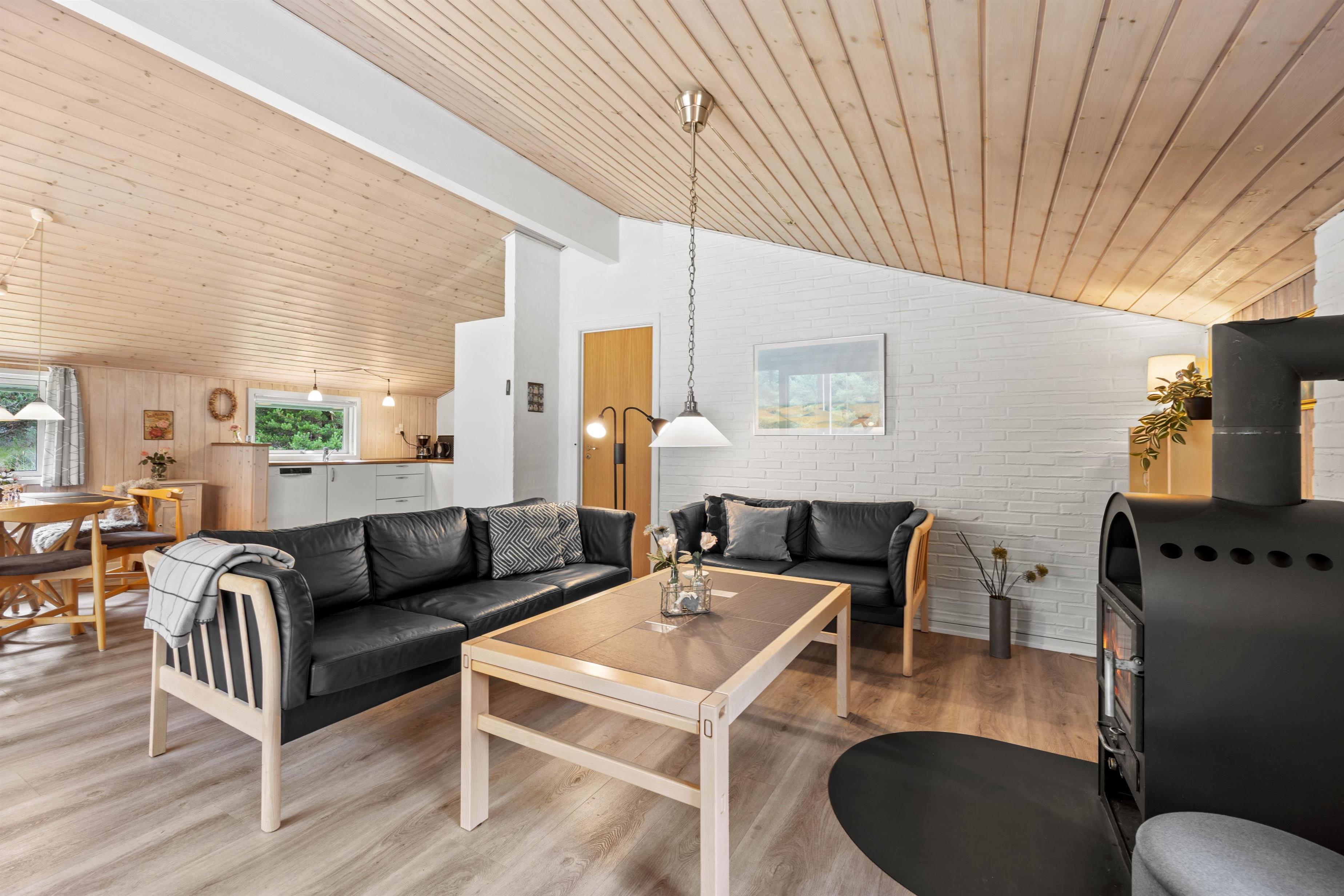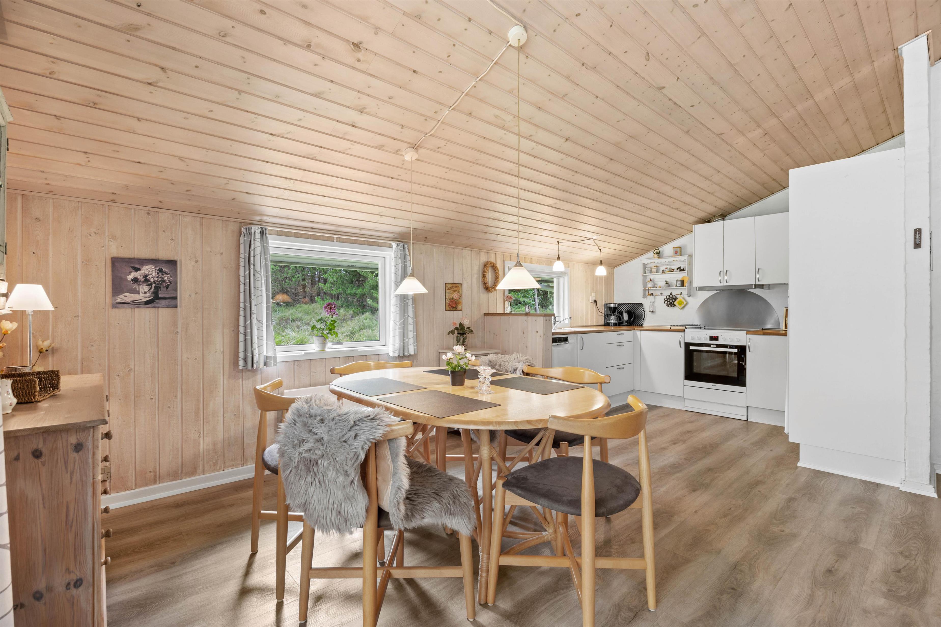 I føler jer hjemme, straks I træder ind ad døren på Fyrvej 11 på Rømø. De lyse farver fra de rengøringsvenlige trælaminatgulve, de træbeklædte- og nogle steder hvidpudsede vægge og loft op i kip giver straks en dejlig stemning. I sofagruppen kan I slappe af sammen eller trække jer tilbage med en god bog. Ved spisebordet kan I spille et brætspil og naturligvis indtage dagens måltider. Der er udgang til terrassen fra stuen, så vil I hellere spise på terrassen, er det ikke noget problem. Det åbne køkken i forbindelse med stuen indeholder alt, hvad I behøver for at tilberede lækre hjemmelavede måltider til hinanden.