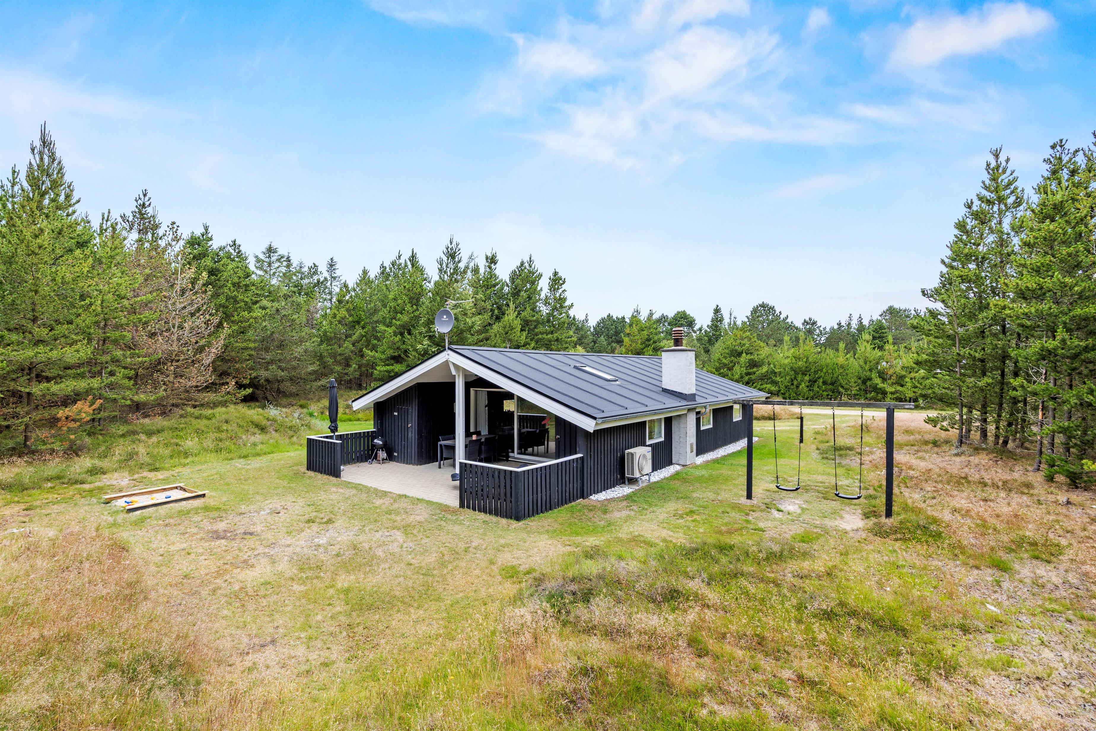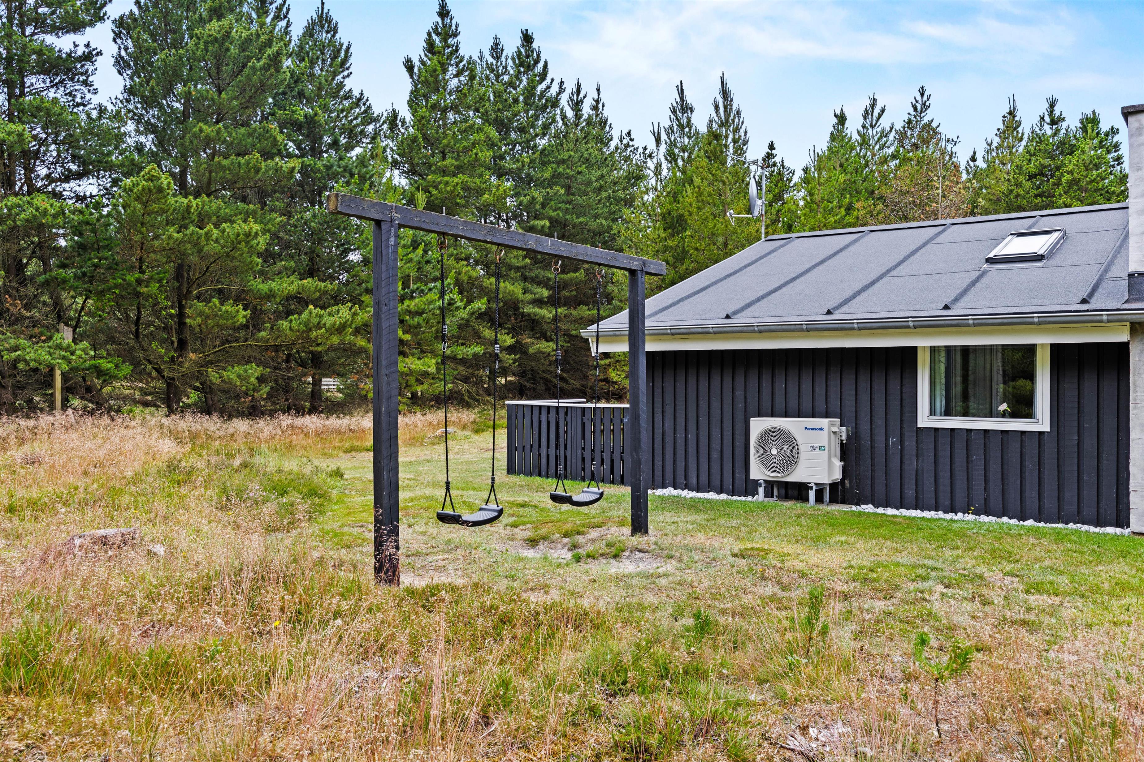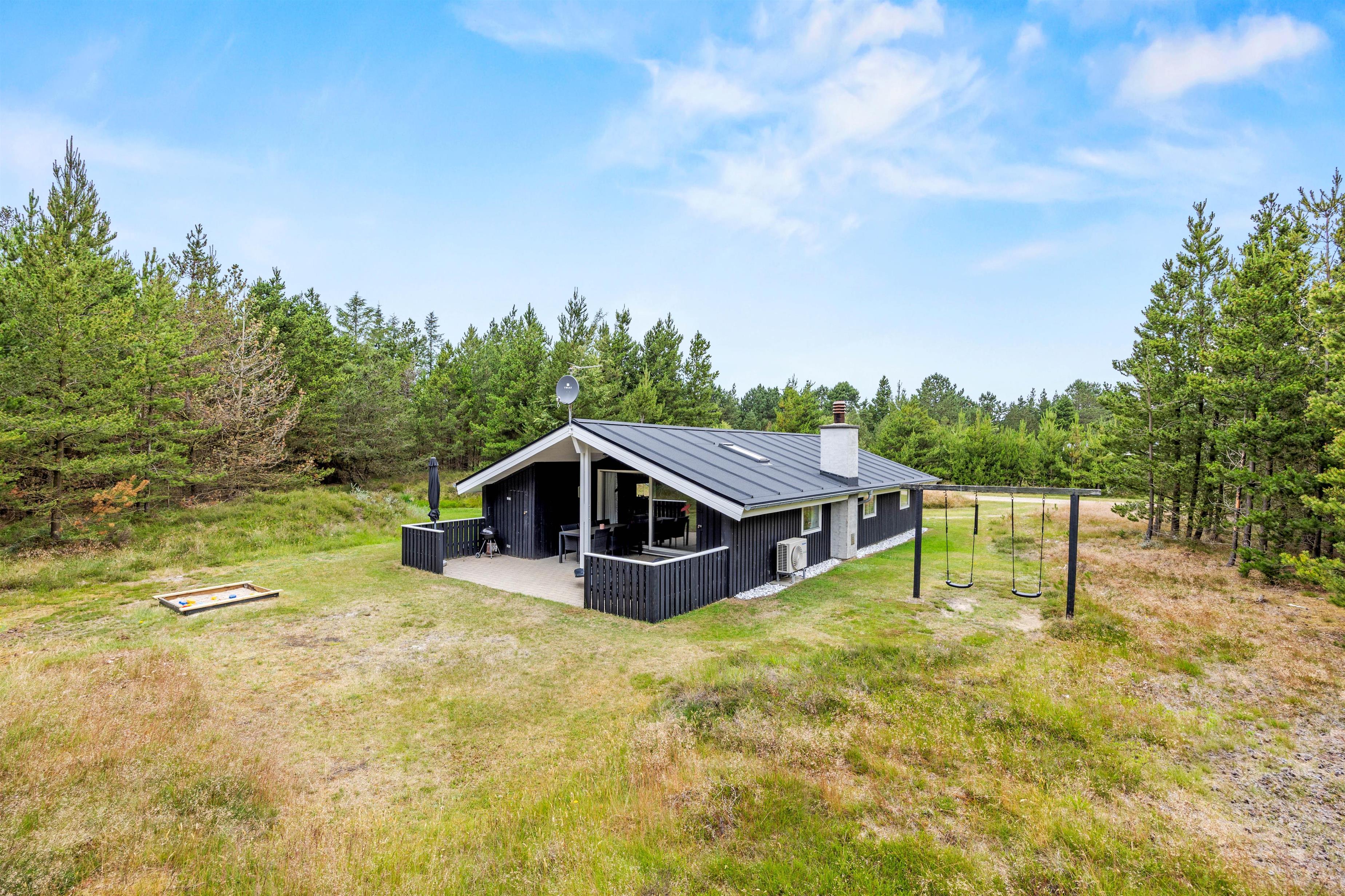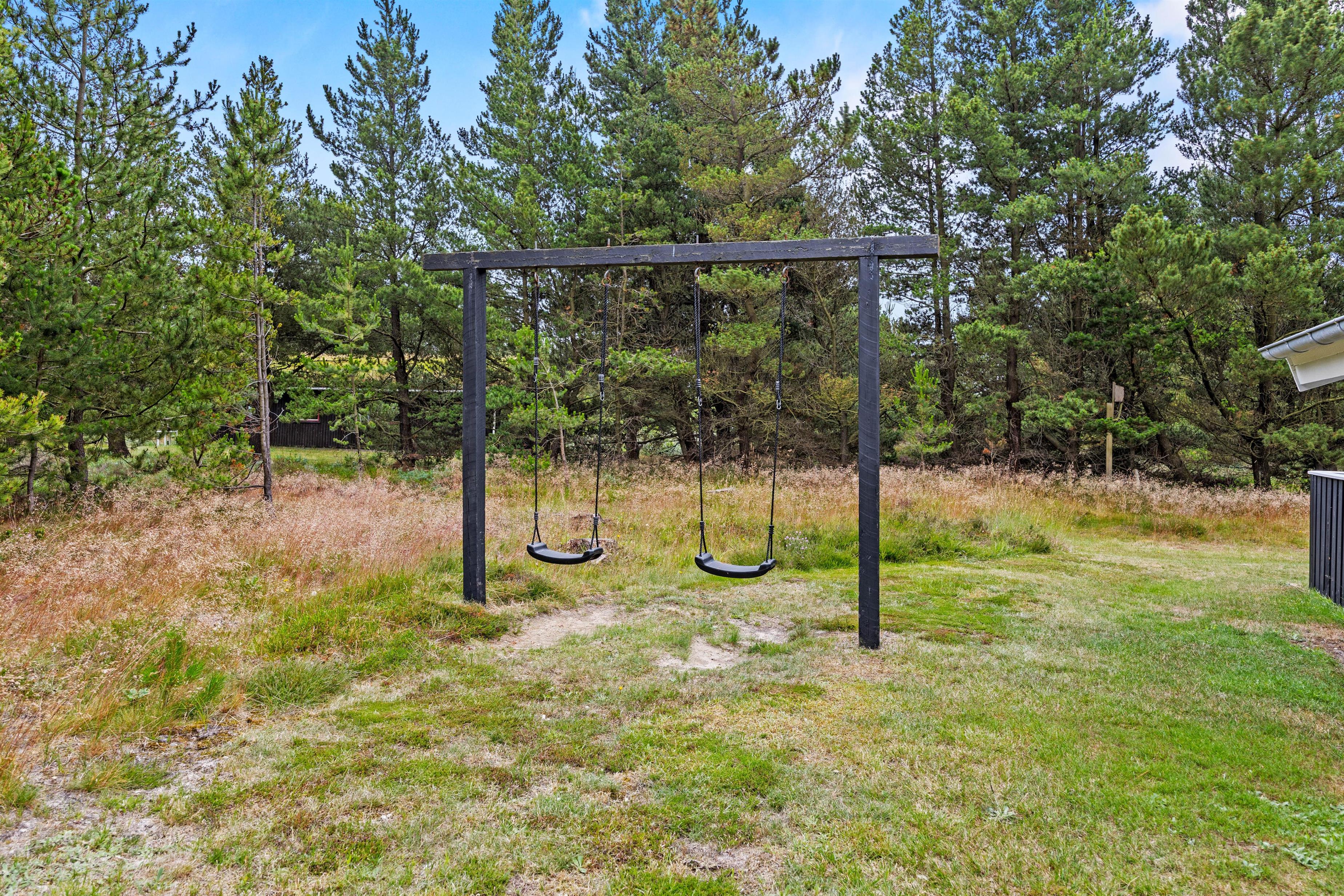 Omkring den 2.500 kvadratmeter store naturgrund er opvoksede gran- og fyrretræer, så I kan opholde jer helt ugenert i det fri. Tag solbad i de komfortable liggestole eller slap af i havemøblerne. Imens kan børnene gynge eller gå på opdagelse på naturgrunden. Tænd op i grillen til aften og nyd et lækkert grillmåltid sammen, imens skyggerne bliver lange.