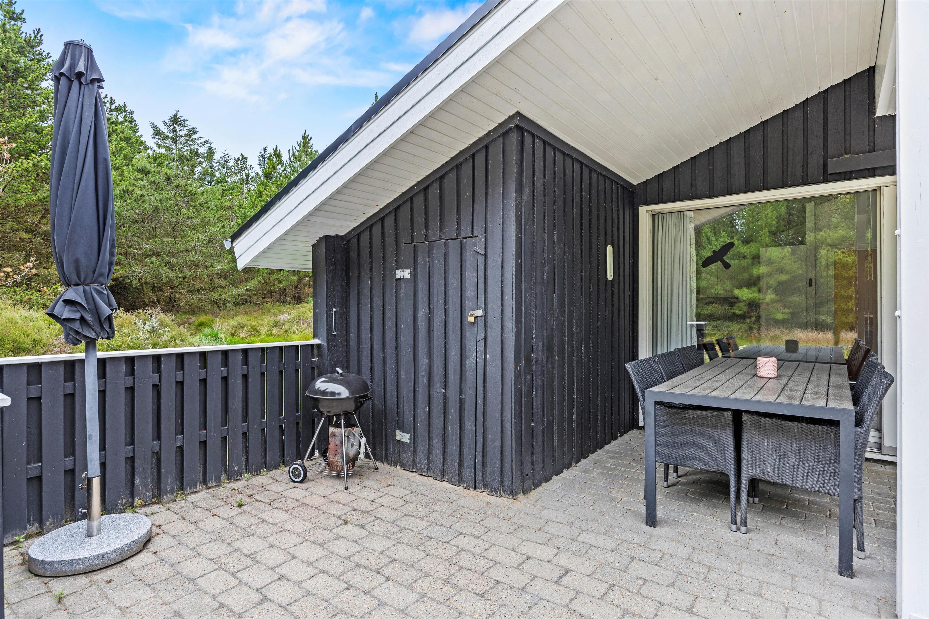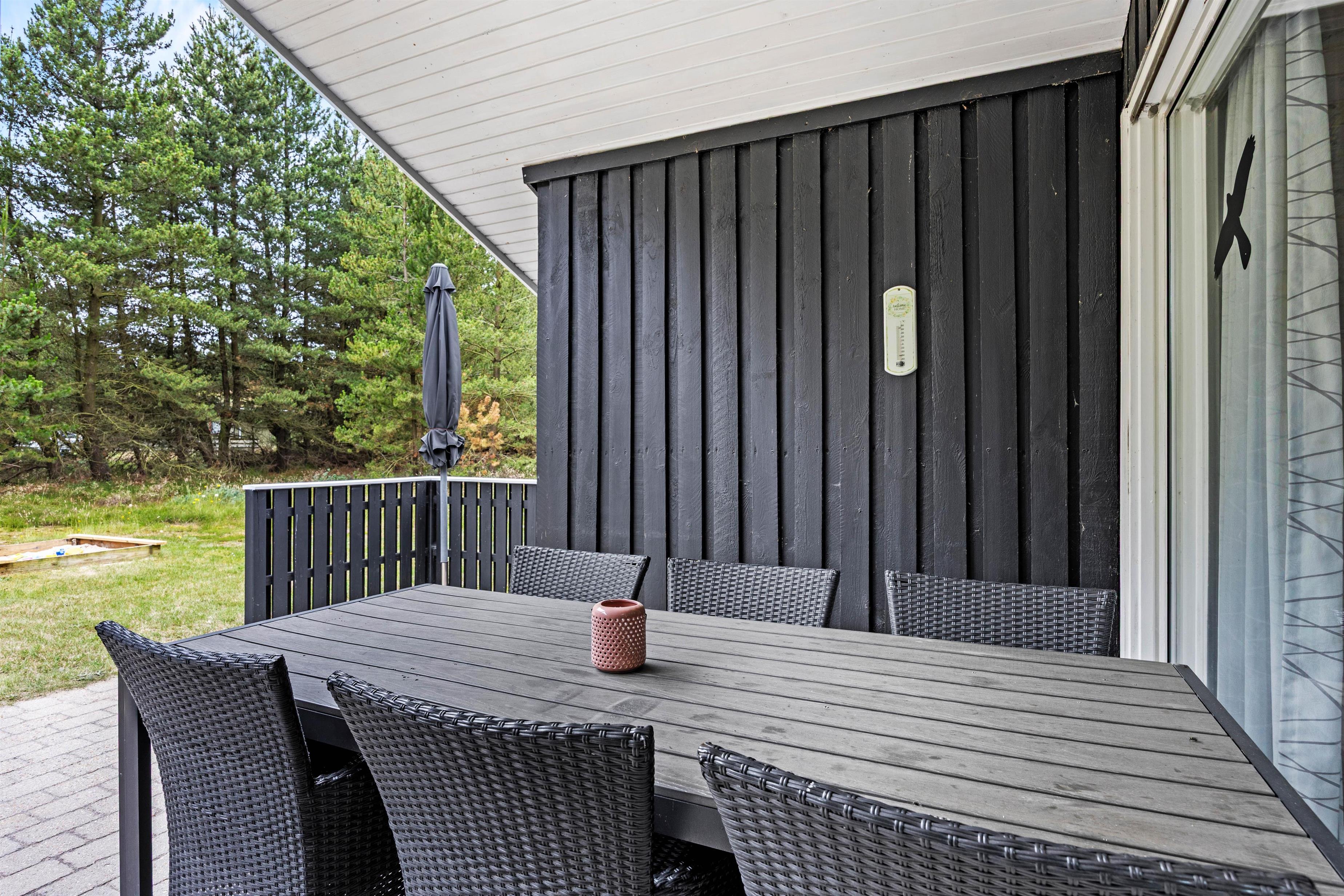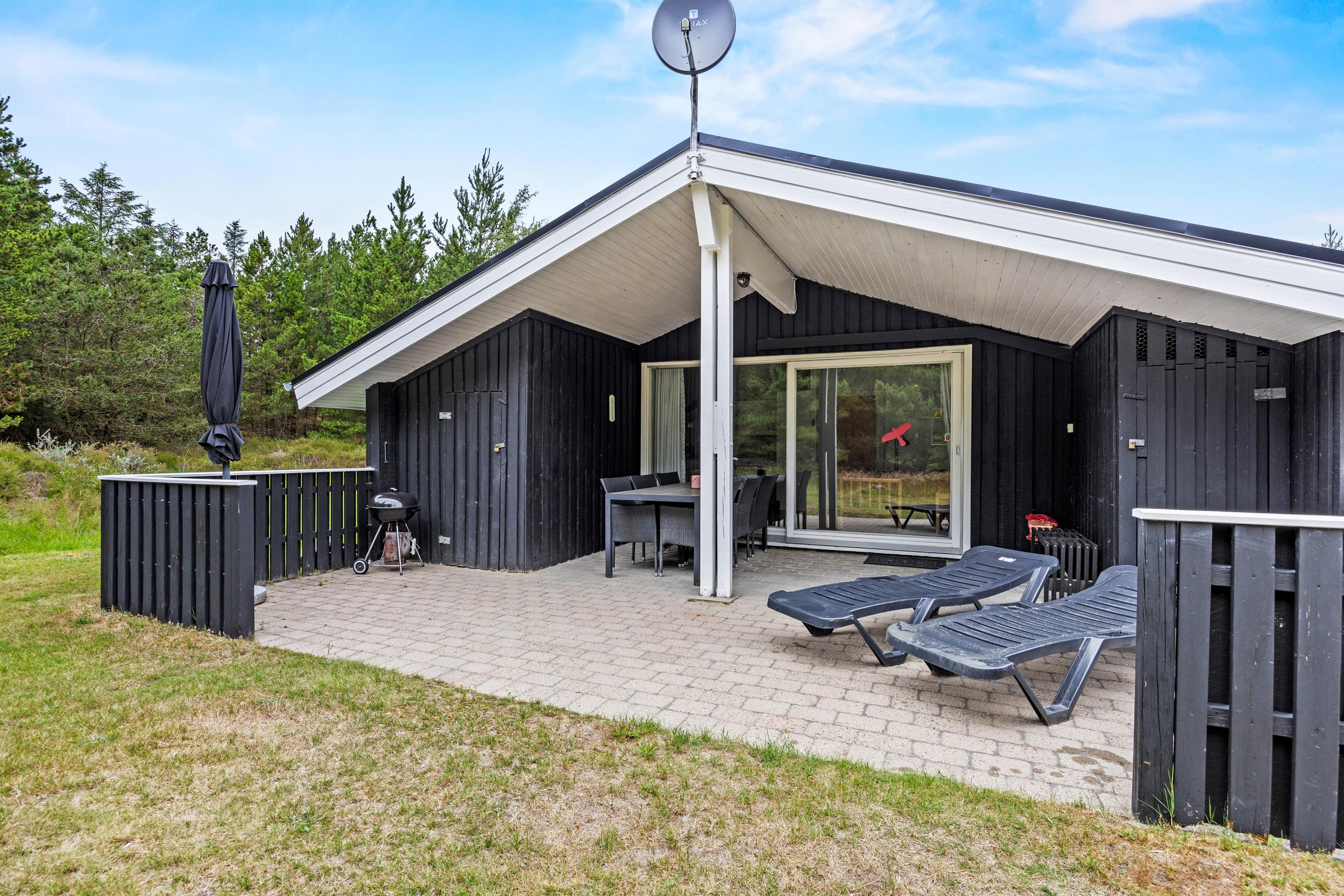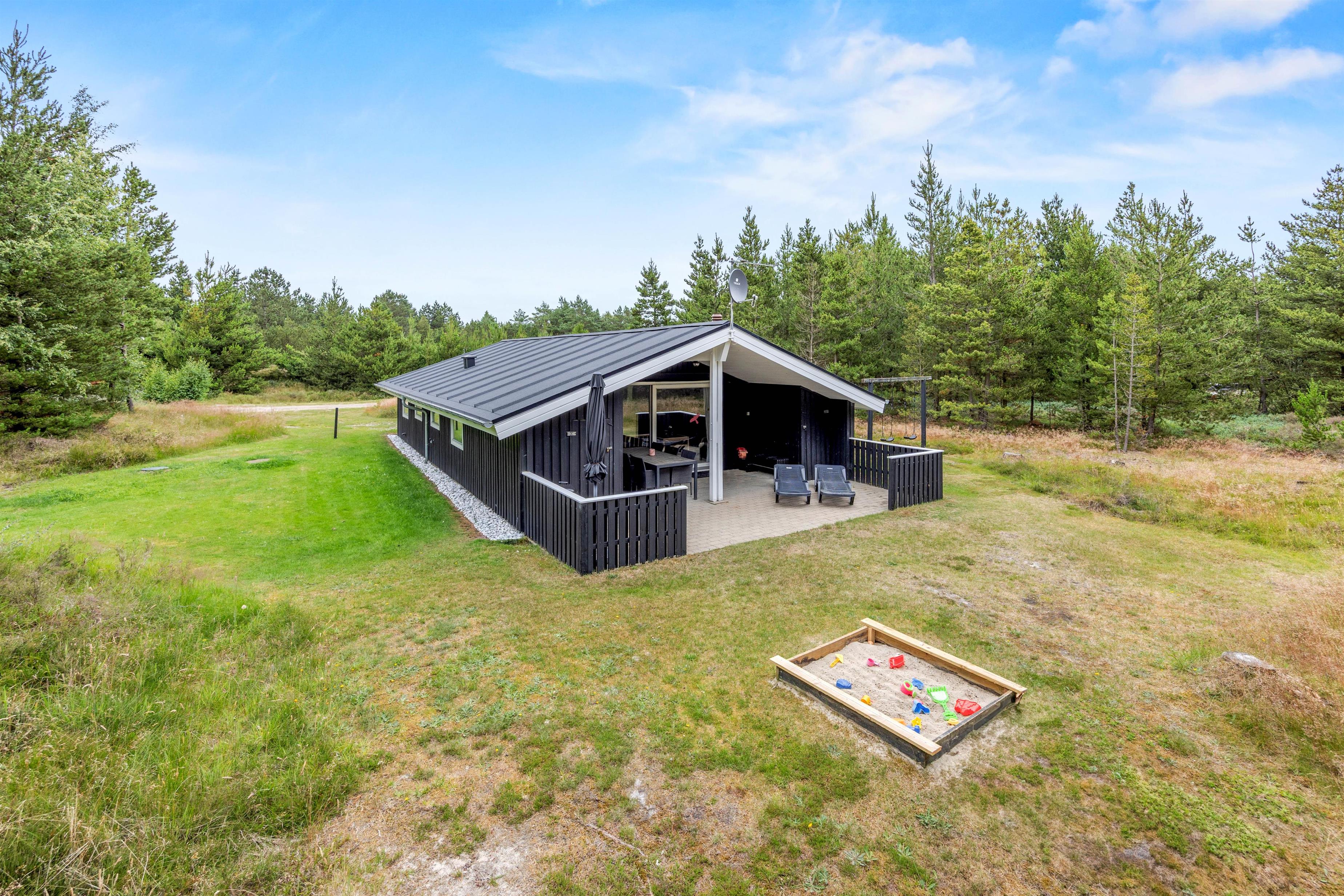 Omkring den 2.500 kvadratmeter store naturgrund er opvoksede gran- og fyrretræer, så I kan opholde jer helt ugenert i det fri. Tag solbad i de komfortable liggestole eller slap af i havemøblerne. Imens kan børnene gynge eller gå på opdagelse på naturgrunden. Tænd op i grillen til aften og nyd et lækkert grillmåltid sammen, imens skyggerne bliver lange.