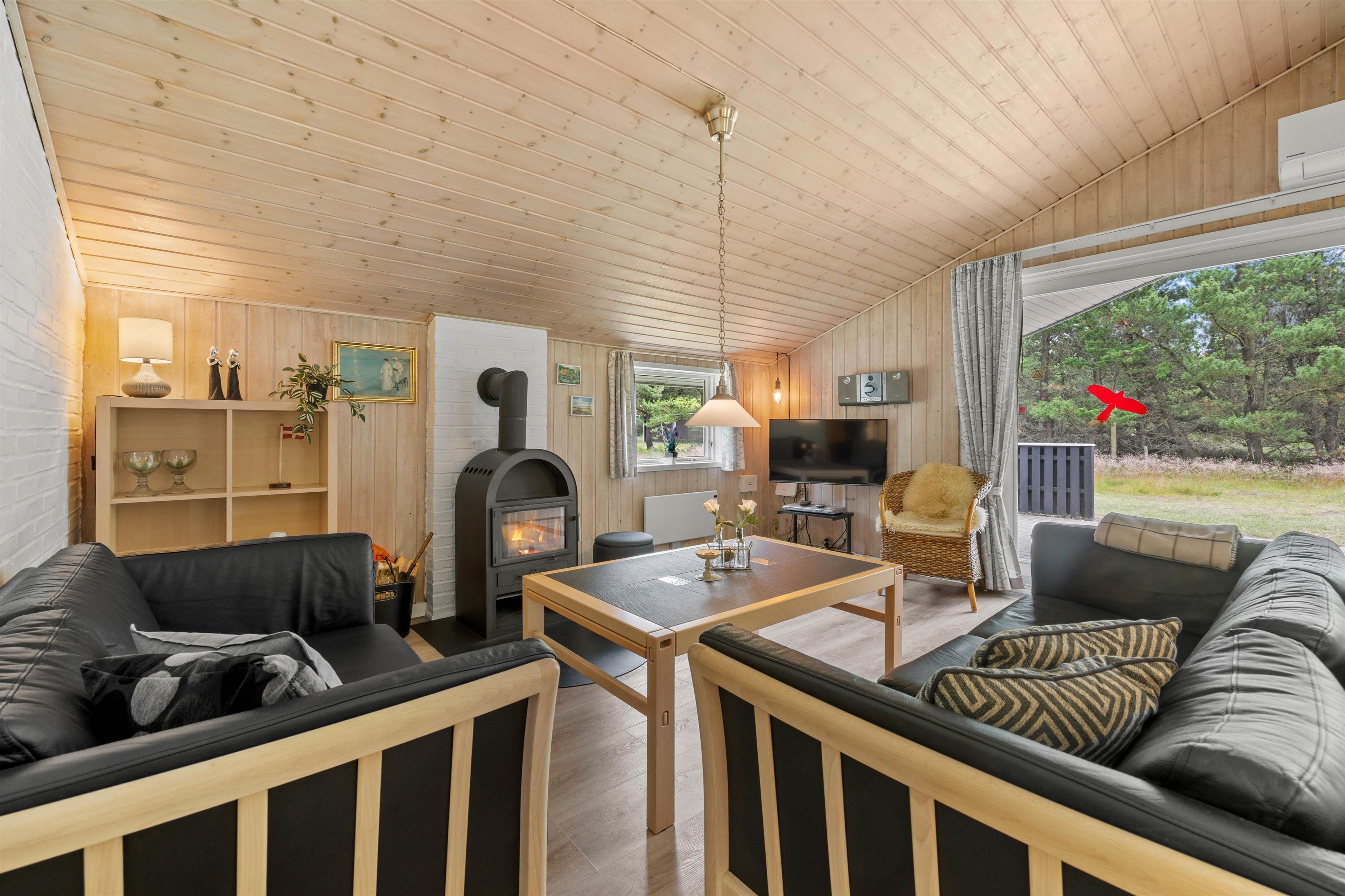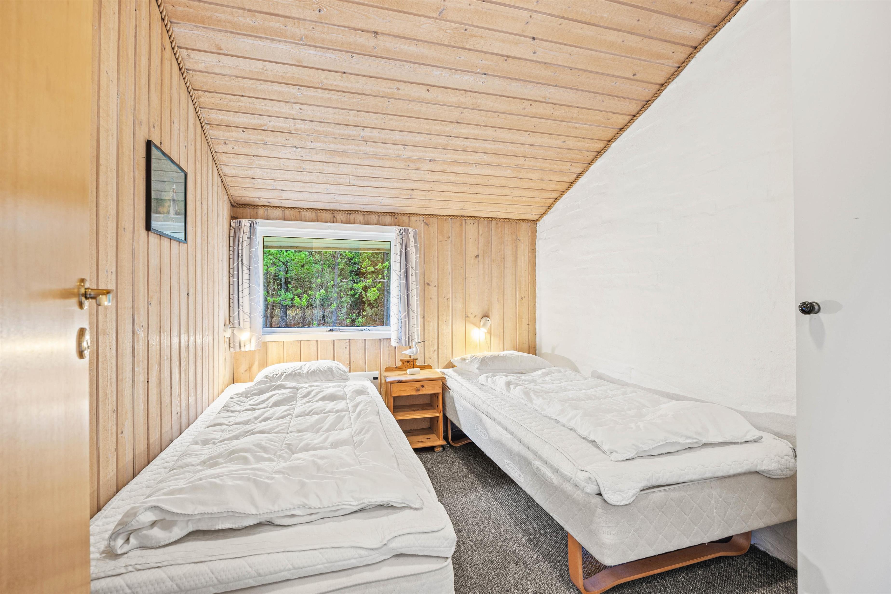 Der er 6 komfortable enkeltsenge i de 3 soveværelser. I 2 soveværelser er de skubbet sammen til dobbeltsenge, så I kan arrangere jer, som det passer jer bedst. Til de små er der højstol og barneseng. Der er en energibesparende varmepumpe til rådighed for jer på ferien.