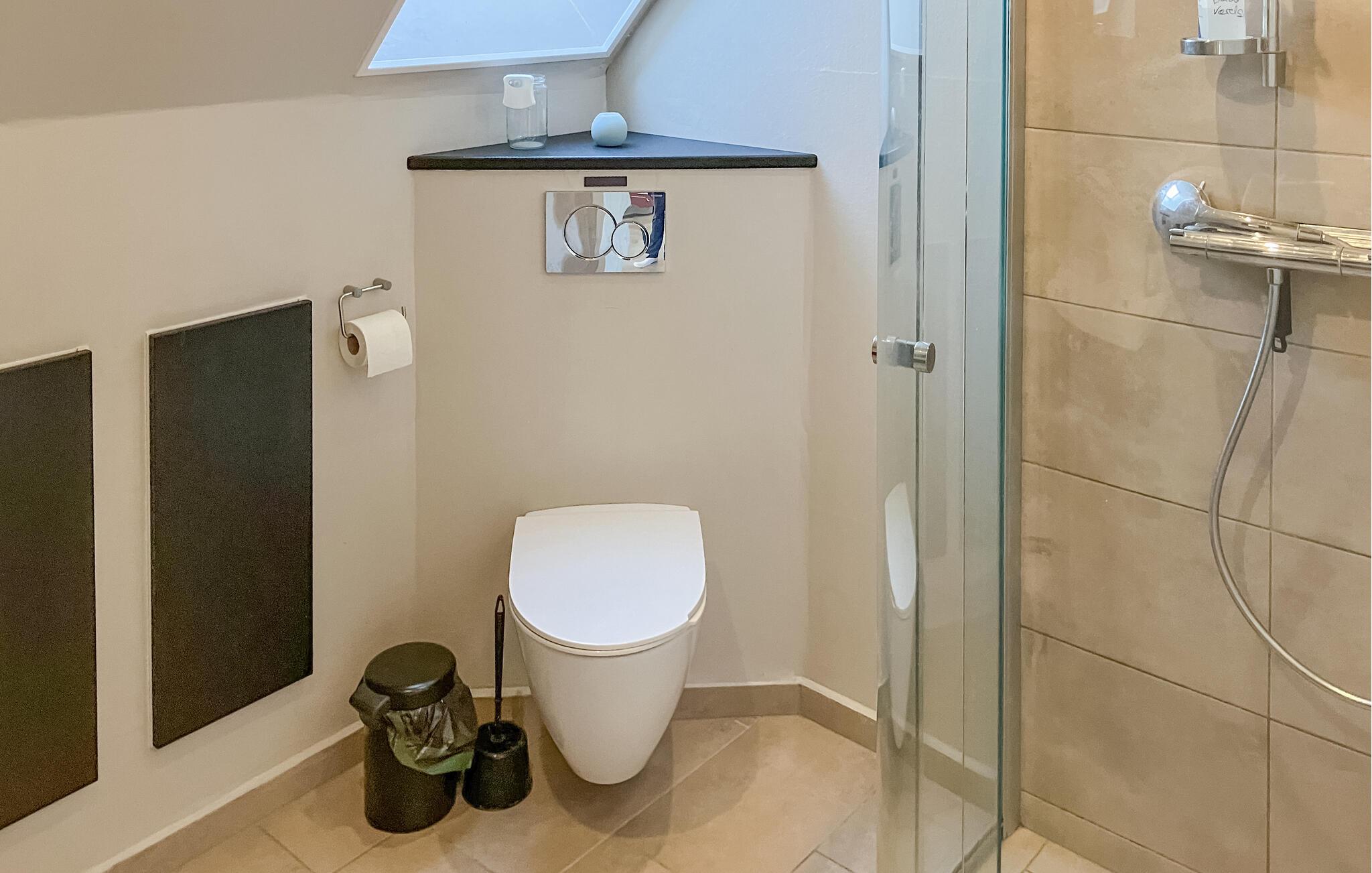 Badeværelse (nr. 1) - WC. Varmt og koldt vand. Bruser