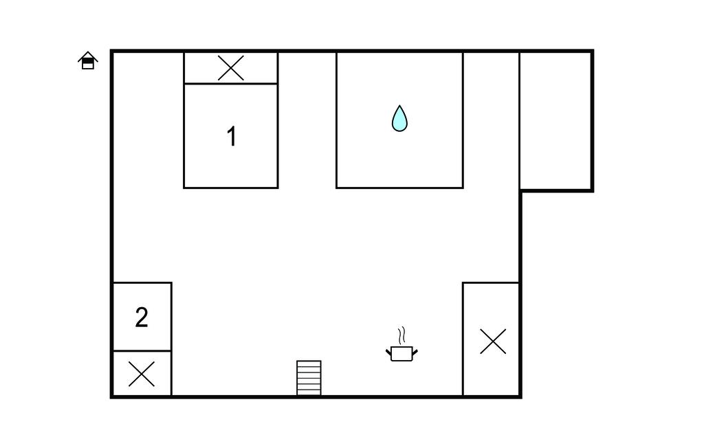 Opholdsstue/køkken - 2 Sovepladser. (Enkeltseng(e)).