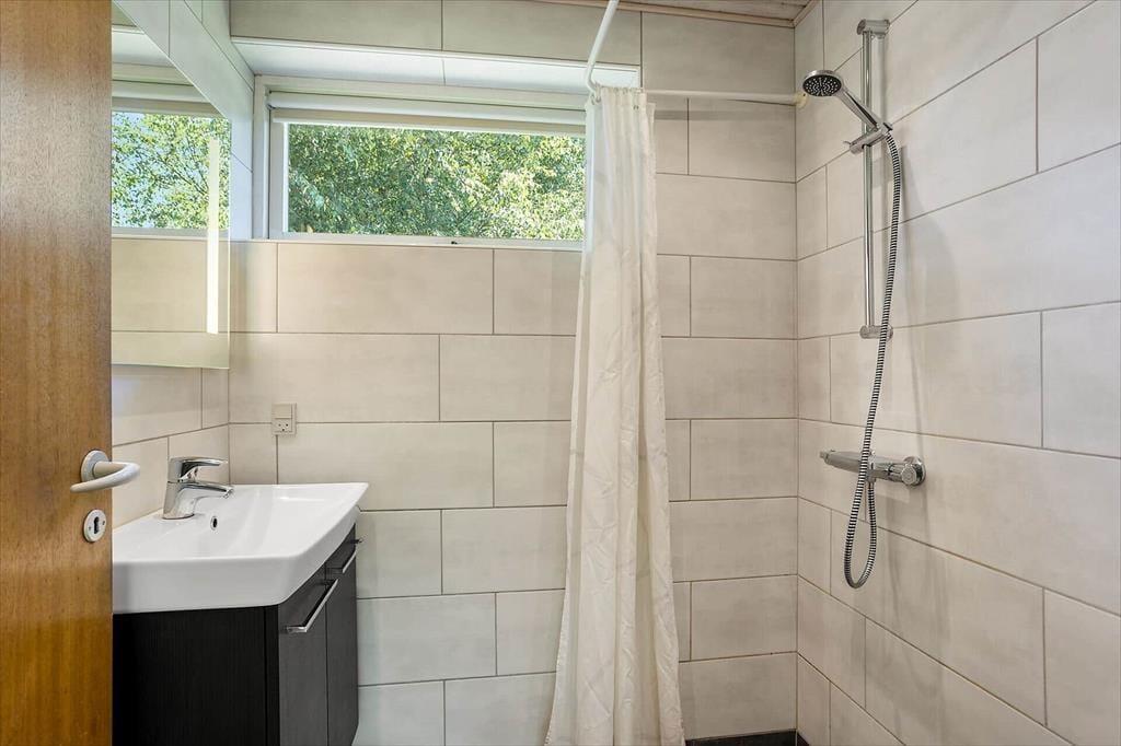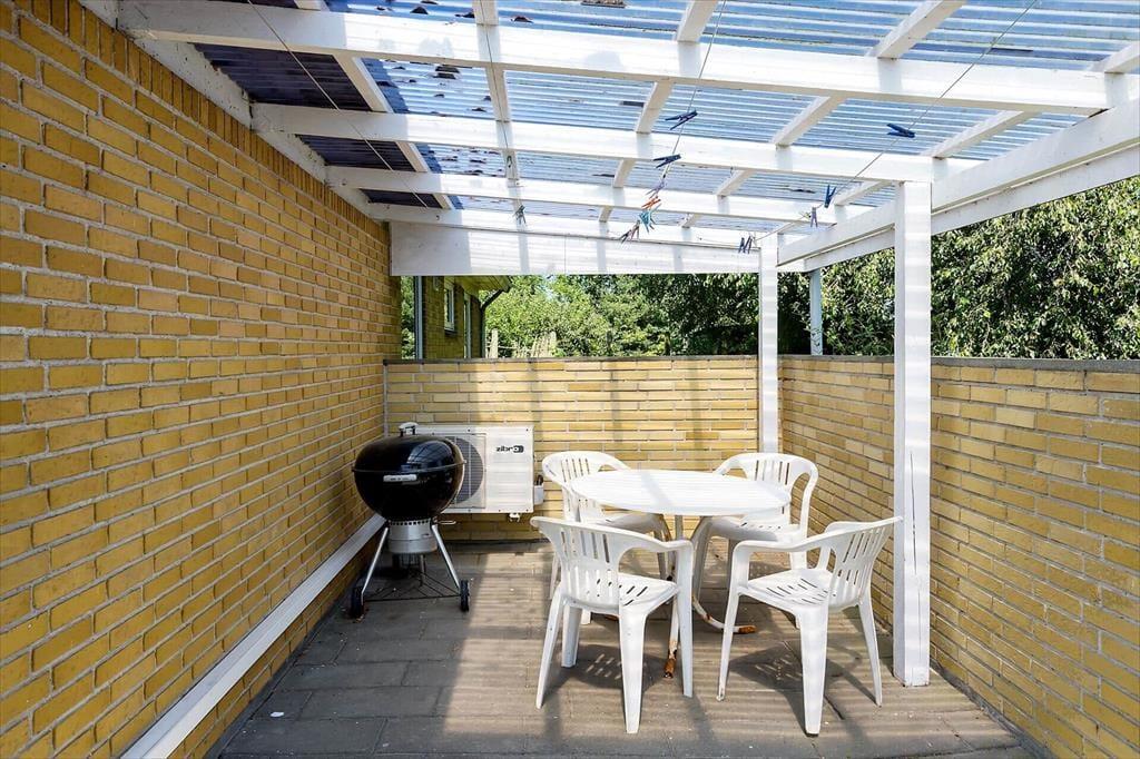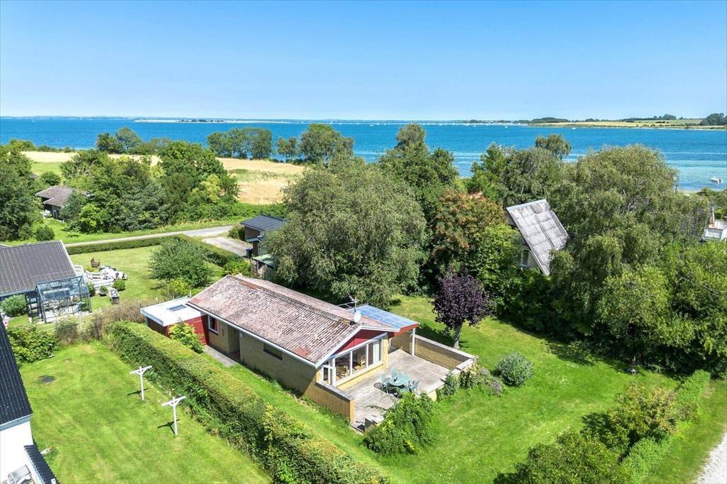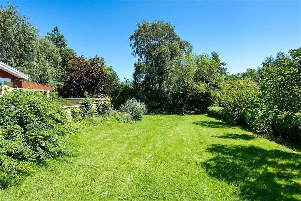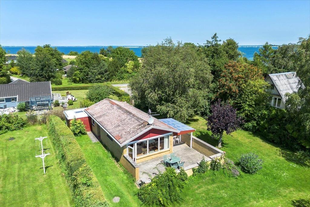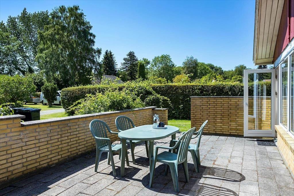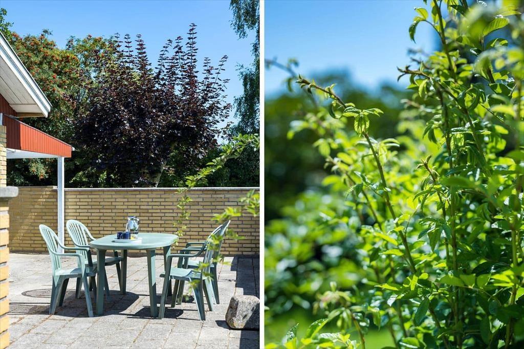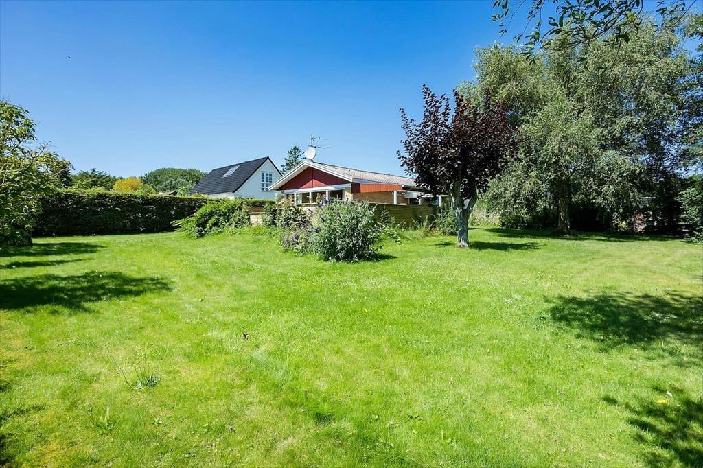 Udendørs venter en flisebelagt terrasse med overdækket spiseplads, hvor du kan nyde måltider under åben himmel uanset vejret. Den grønne græsplæne indbyder til leg og afslapning, og et praktisk fiskerensebord gør det let at forberede dagens fangst til aftensmaden. Eftermiddagssolen og den friske havluft er til stede hele dagen, og stranden med badebro ligger inden for kort gåafstand, så du kan nemt tage en forfriskende dukkert eller slappe af med fødderne i vandkanten.