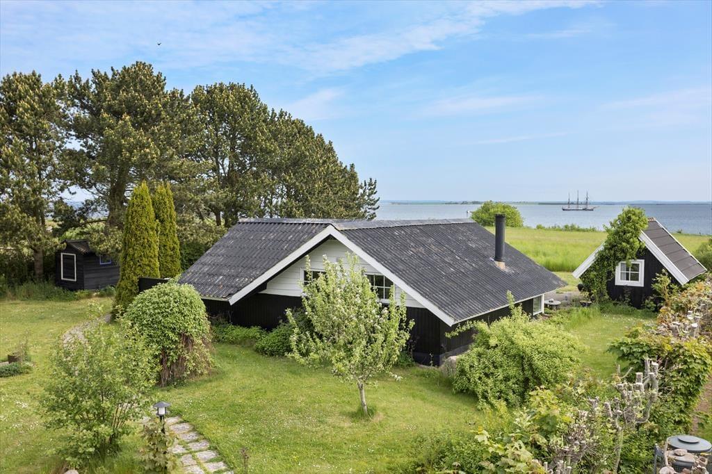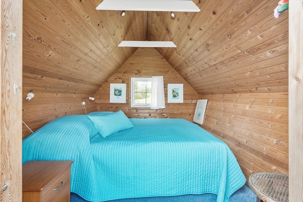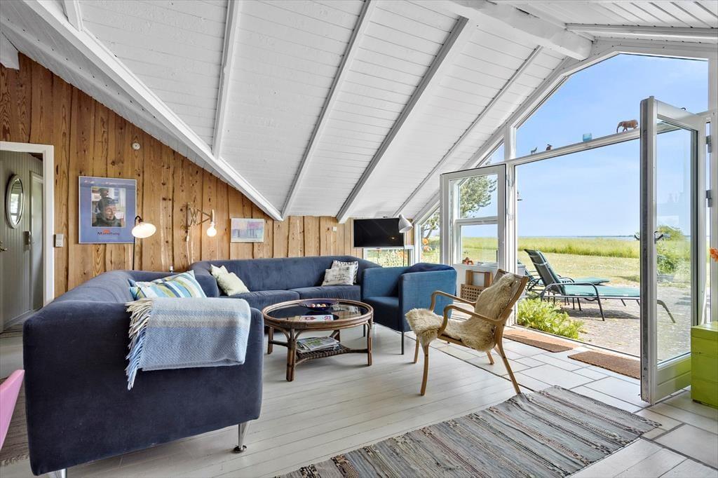 Når du træder ind i sommerhuset, bliver du mødt af en lys og indbydende atmosfære. Huset har et åbent køkken, som er veludstyret med blandt andet en opvaskemaskine, så du nemt kan lave lækre måltider til familien. Køkkenet er i direkte forbindelse med stuen, hvor en brændeovn skaber hygge og varme på kølige aftener. Det store glasparti i stuen giver en imponerende udsigt over havet og lader naturligt lys strømme ind, hvilket gør rummet lyst og indbydende. Fra stuen har du også udgang til terrassen, hvor du kan nyde den storslåede udsigt og solens stråler.