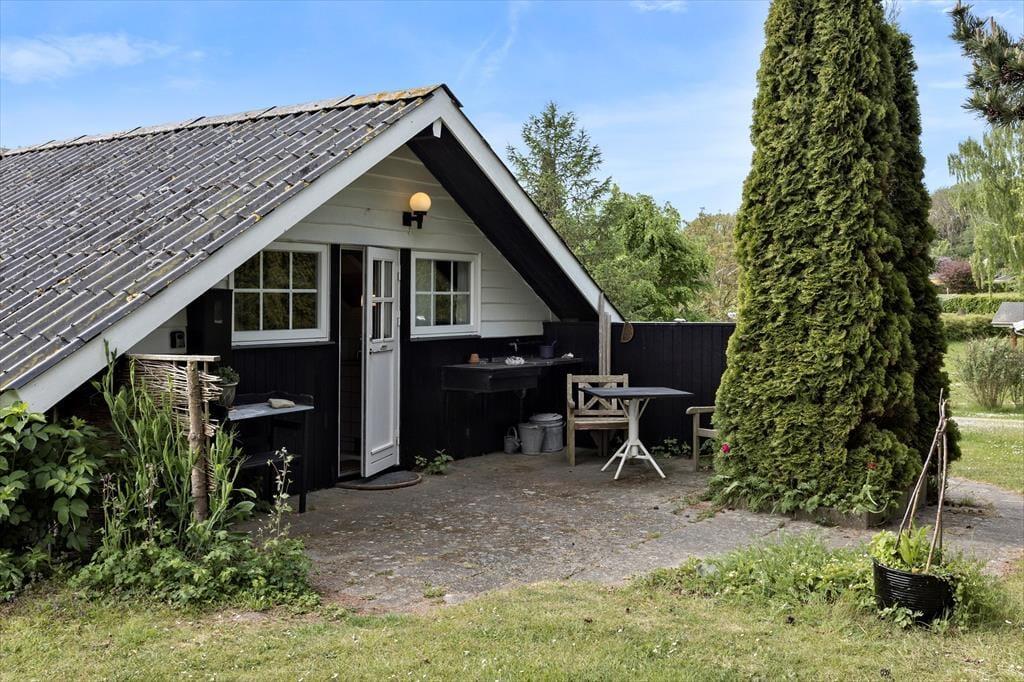 Terrassen og haven er perfekte til afslapning og udendørs aktiviteter. Den rummelige terrasse er ideel til at nyde morgenkaffen, grille aftensmaden eller bare slappe af med en god bog. Haven, med sin velplejede græsplæne, indbyder til leg og spil for både børn og voksne. Der er også et praktisk fiskerensebord, så du nemt kan rense din fangst, hvis du har været ude at fiske. Med blot 100 meter til den nærliggende badestrand, er det let at tage en dukkert i det klare vand eller nyde en fredelig gåtur langs kysten. Her kan du høre bølgernes beroligende brusen og mærke sandet mellem tæerne.