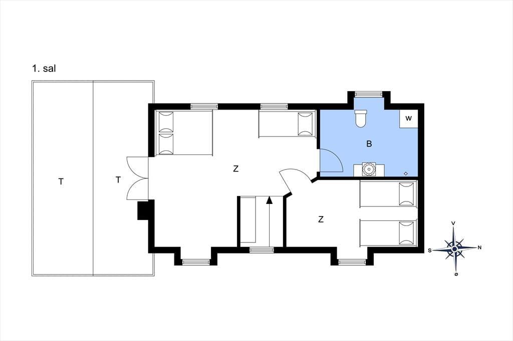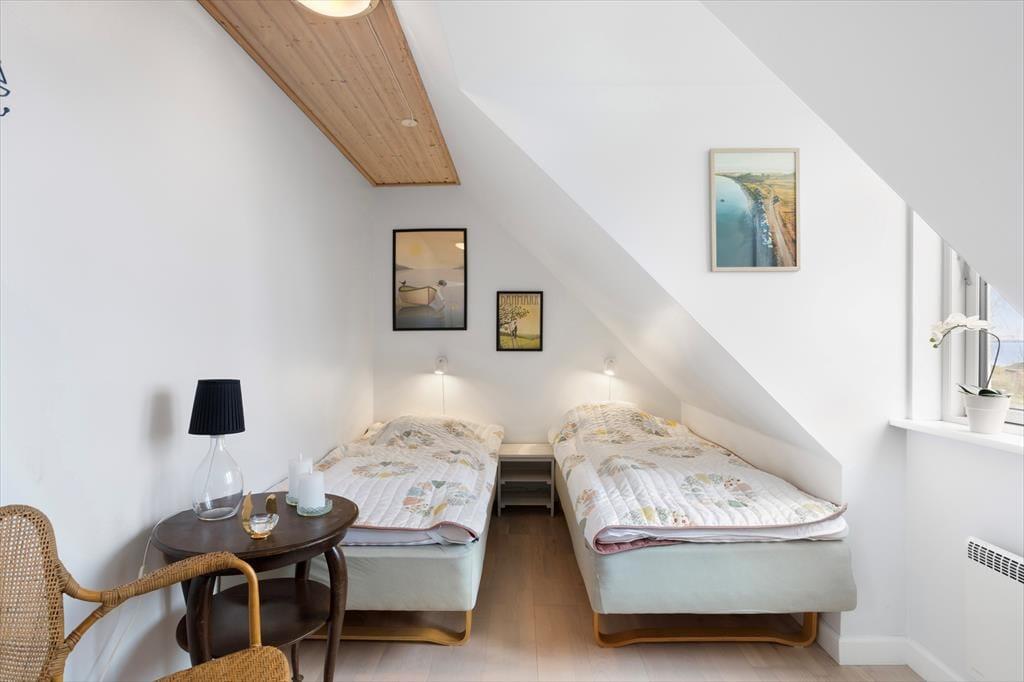 I sommerhuset er der to soveværelser, et med dobbeltseng og og et med to enkelt senge og en enkelt seng på reposet og der er god opbevaringsplads. Her kan du sove fredeligt og vågne op til den smukke udsigt og frisk havluft. Der er et super skønt badeværelse.