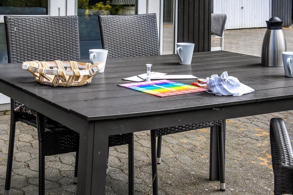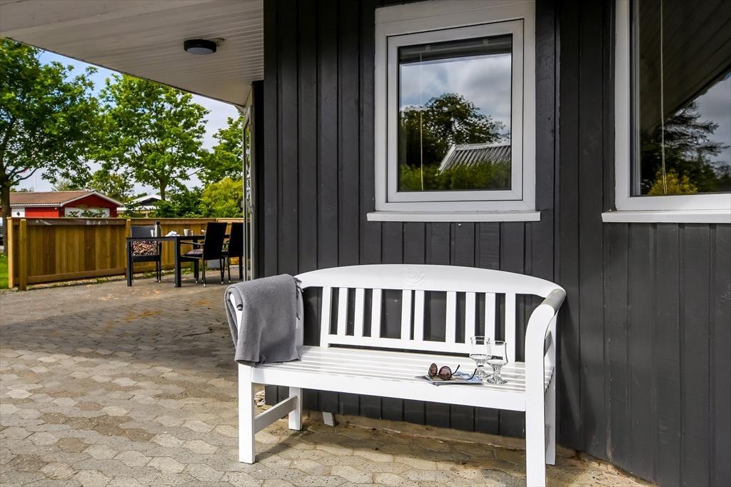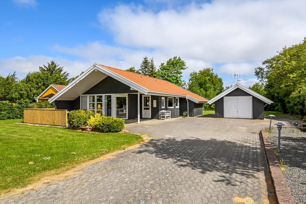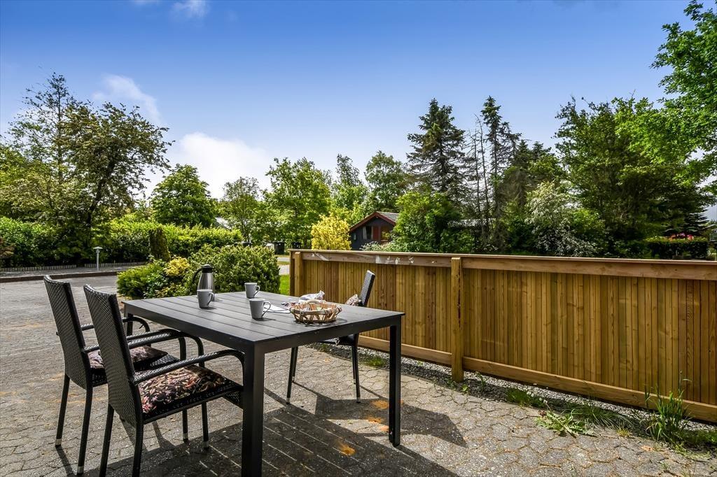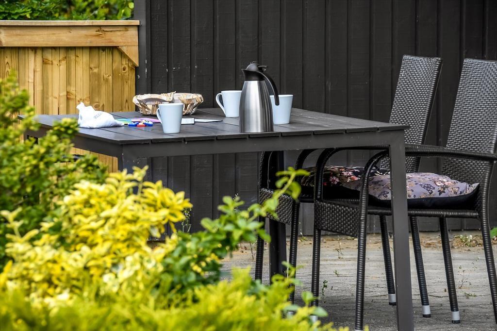 På lune sommerdage er det oplagt at tilbringe en stor del af solskinstimerne ude i det fri. I den forbindelse er den flisebelagte, delvist overdækkede terrasse perfekt – og her er der selvfølgelig havemøbler til rådighed, så I kan nyde driverlivet på bedste vis. Bilen kan I parkere enten i garagen eller i indkørslen, mens græsplænen kan danne ramme om havespil og leg for de yngste feriegæster.