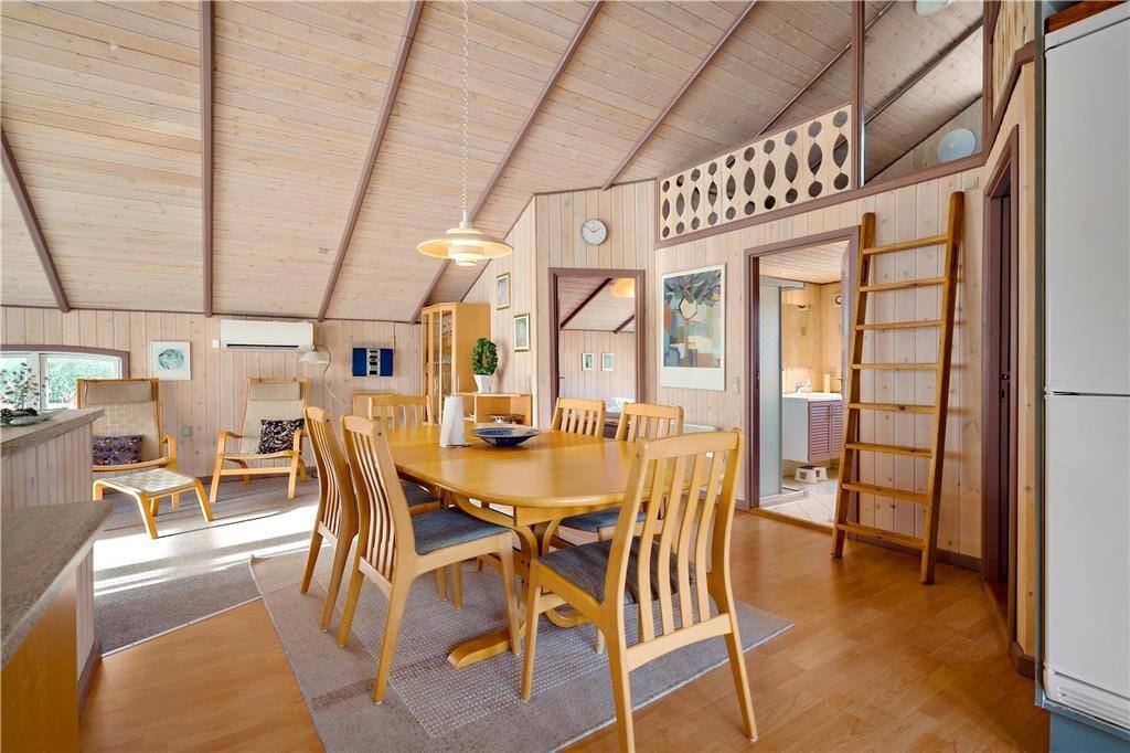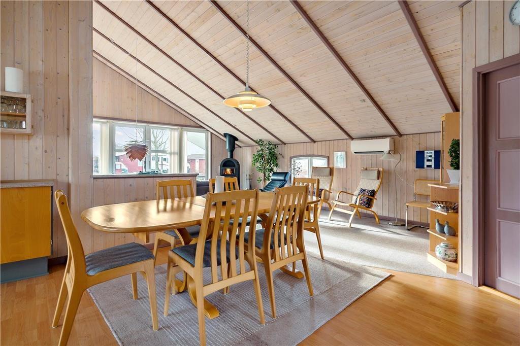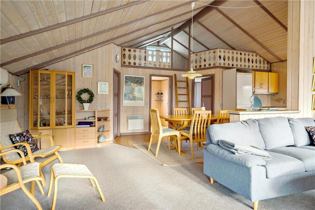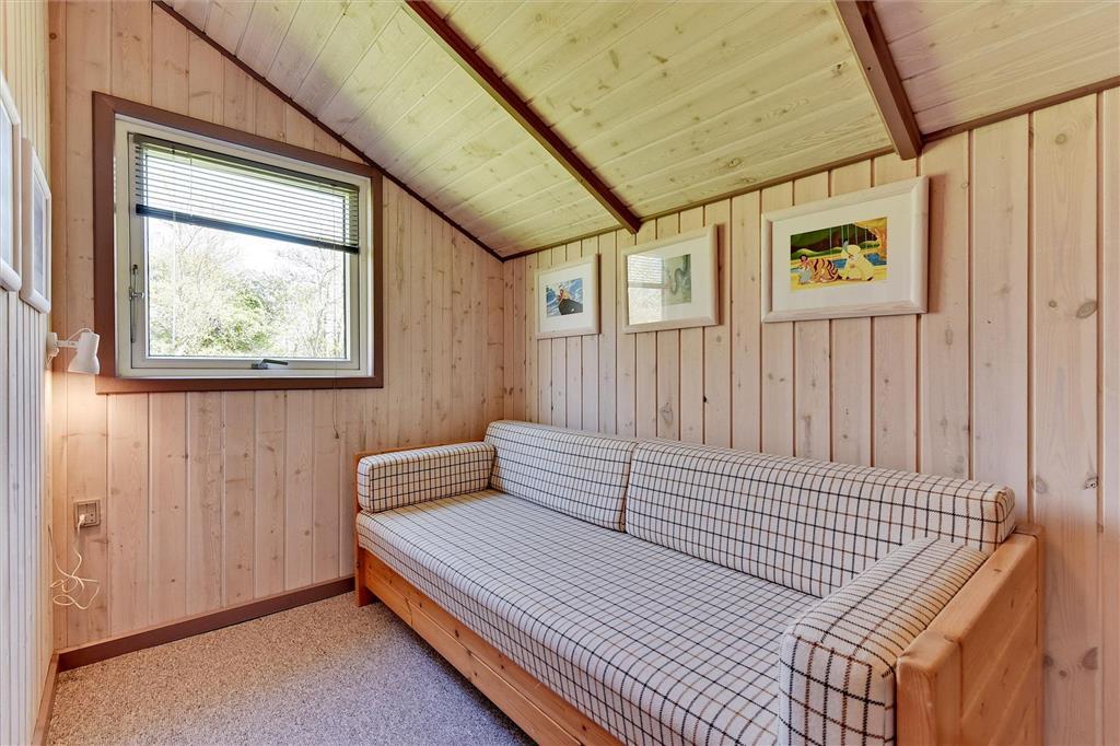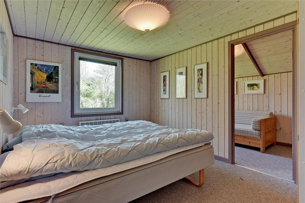 Atmosfæren er rar og indbydende i det 87 m2 store sommerhus, for inden døre er der lyse trælister på væggene, loft til kip og store vinduespartier i sydvestvendt retning. I opholdsrummet er en brændeovn med til at skrue op for hyggestemningen, og de komfortable sofaer og spisebordet fungerer som gode samlingspunkter, når I vil tilbringe tiden sammen. I den åbne køkkenafdeling er der ligeledes godt med plads, så madlavningen kan oplagt blive til et fælles hyggeprojekt. Sommerhusets velfungerende planløsning byder desuden på et bryggers med vaskemaskine og et badeværelse med gulvvarme foruden tre gode soveværelser. Her skal det nævnes, at to af soveværelserne ligger i forlængelse af hinanden – og derudover byder huset på en hems med ekstra sovepladser, som også kan benyttes.