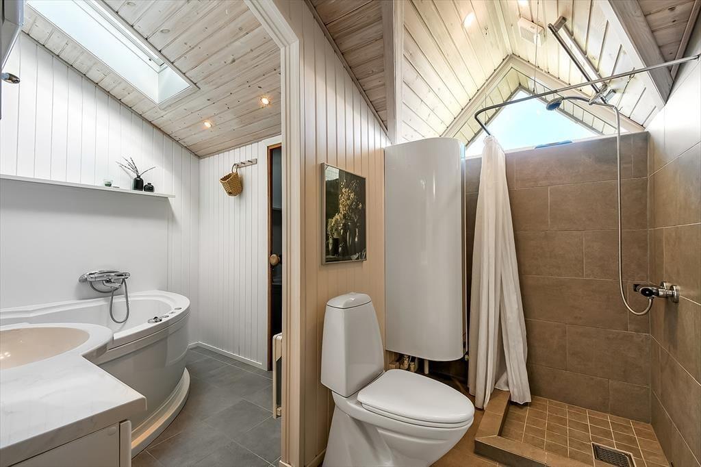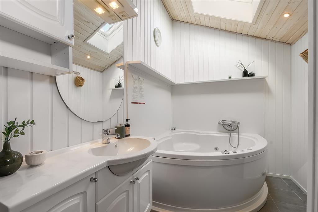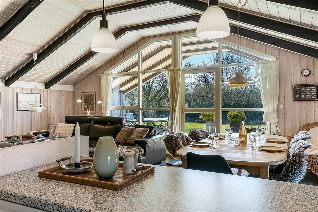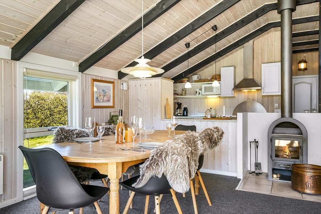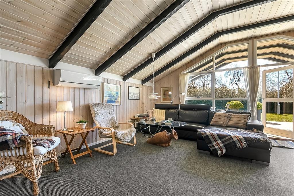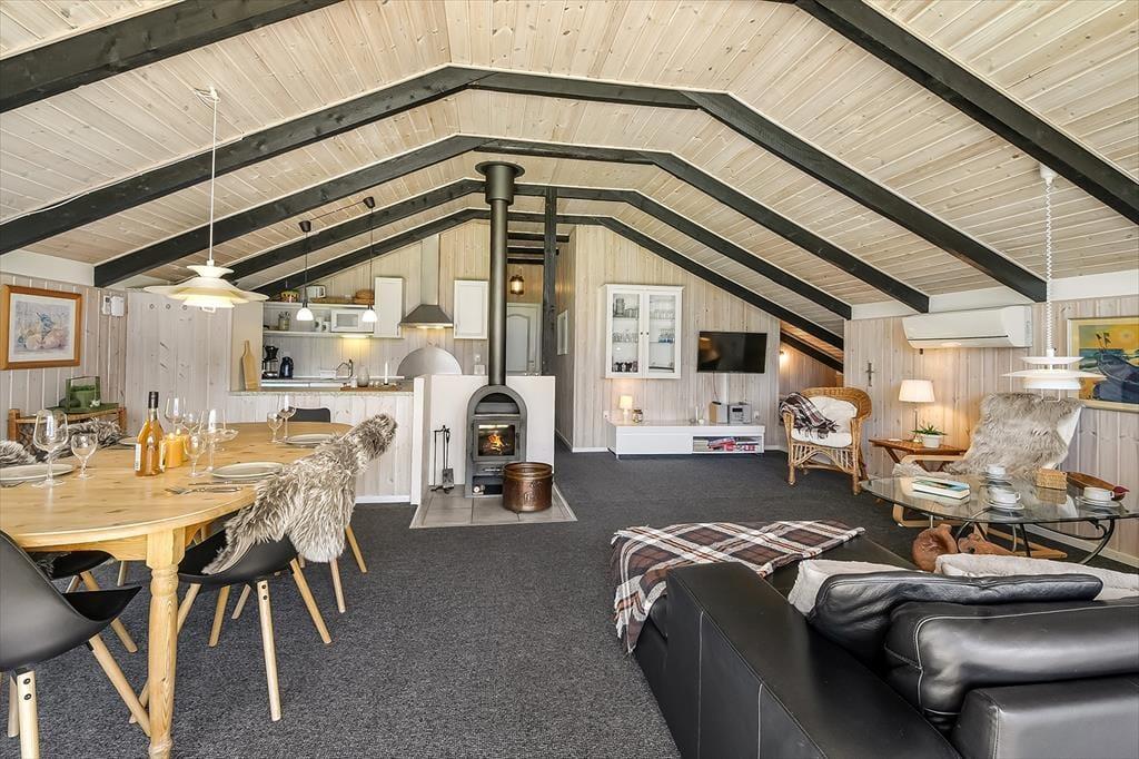Sommerhusets velholdte rum sørger for, at I får en hyggelig ramme om ferielivet, og så er det selvfølgelig helt op til jer, hvordan det skal foregå: I det store opholdsrum kan I slænge jer i de komfortable siddemøbler, se TV eller tage en velfortjent middagslur i alkoven, og når maven knurrer, kan I fremtrylle lækkerier i det åbne og veludstyrede køkken. Er I til tilbagelænet wellness, kan I også forkæle jer selv med et spabad og en tur i saunaen på badeværelset, der for øvrigt er udstyret med gulvvarme, vaskemaskine og bruser. Sommerhusets seks sengepladser er ligeligt fordelt i de tre soverum, som også byder på godt med skabsplads, hvis I vil pakke feriegarderoben ud.