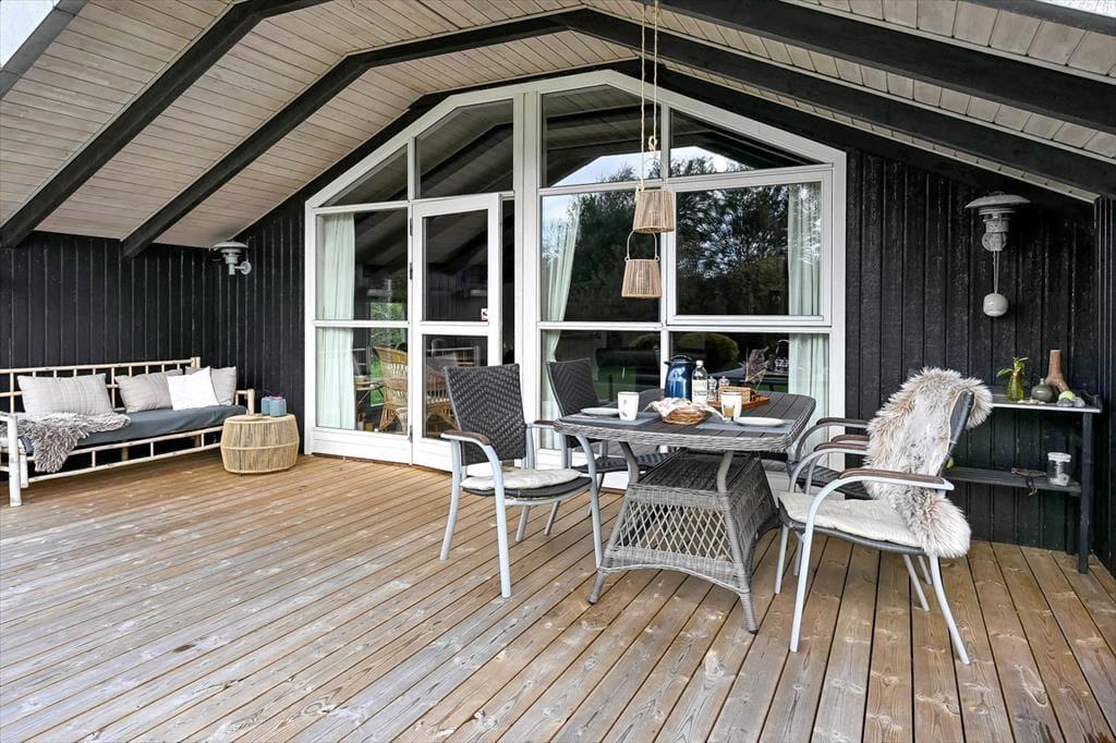 På græsplænen på den 900 m² store grund kan legebørn i alle aldre hygge sig med vikingespil, kroket eller andre havespil, som I selv medbringer. Trænger I mere til at slappe af, er den store, delvist overdækkede terrasse perfekt til formålet, og den er ovenikøbet sydvendt, så I kan nyde solen en stor del af dagen.