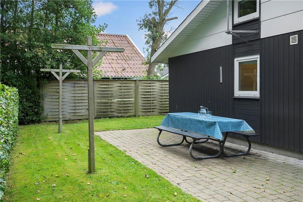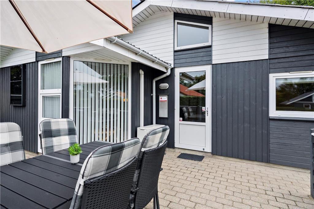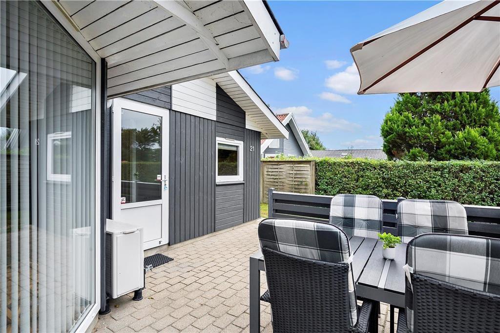 Både foran og bagved sommerhuset kan I nyde livet på de velanlagte terrasser. Er der børn med på ferie, kan de gynge, lege i sandkasse eller spille bold på græsplænen, mens de voksne læner sig tilbage i havestolene og mærker feriefreden sænke sig.
