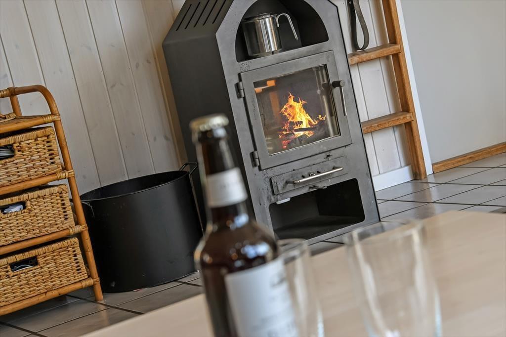 Op til seks feriegæster kan nemt og bekvemt finde sig til rette her i sommerhuset – og så er der endda mulighed for at medbringe to husdyr, hvis I gerne vil have hunden med på ferie. Alle kan samles i opholdsrummet, hvor stuen og køkkenet er forenet på velfungerende vis. Den åbne forbindelse betyder, at I stadig kan deltage i hyggesnakken, selvom I skal se til lasagnen i ovnen eller skære salat til aftensmaden, og i hele rummet får I glæde af varmen og skæret fra ilden i den effektive brændeovn. Det funktionelle badeværelse byder blandt andet på en vaskemaskine og en muret bruseniche, mens de to soveværelser er udstyret med henholdsvis en dobbeltseng og en dobbelt sovesofa. Kravler I op på hemsen, finder I yderligere to sengepladser i form af to madrasser.