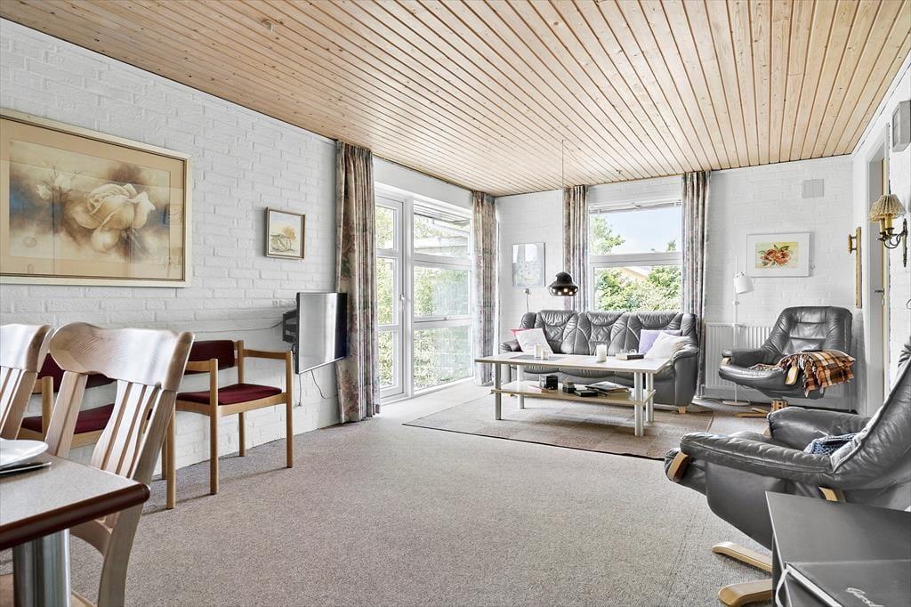 Huset er velindrettet med b.la. et stort køkken med alt, hvad der skal bruges, og et dejligt stort spisebord. Køkkenet ligger i åben forbindelse med stuen, der har både sofa, lænestole og fjernsyn. De 7 sovepladser er fordelt på 4 soveværelser, med hhv. en dobbeltseng, en enkeltseng, to enkeltsenge og en køjeseng. Herudover et rummeligt badeværelse. I huset er der også både vaskemaskine og tørretumbler. Alt i alt et dejligt feriehus med charme og sjæl.