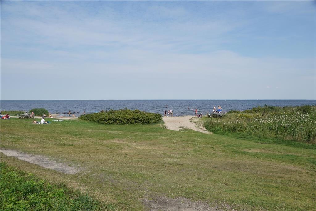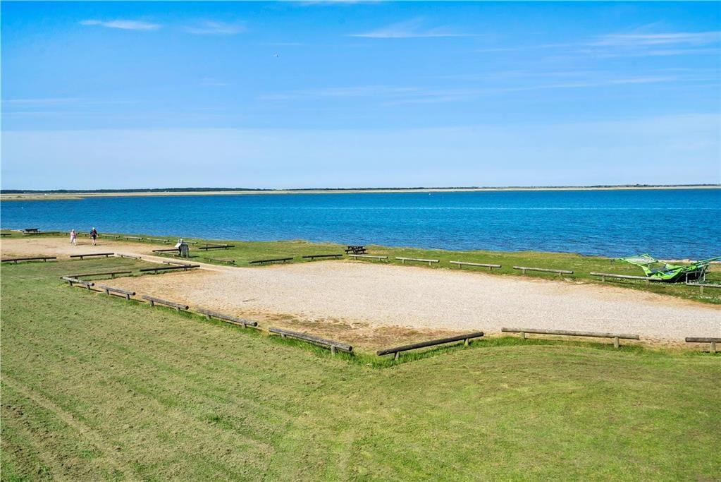 Fra førstesalens nye smukke glasaltan på 12 kvadratmeter, kan I sidde og følge med i, hvordan wind- og kitesurfere boltrer sig ude på fjorden – og måske får I selv lyst til at trække i våddragten og smutte ned med surfbrættet. Har I mere lyst til en tilbagelænet stund i en havestol, kan I blive siddende på altanen eller alternativt flytte ned på den vestvendte terrasse, der ligger lige ud til en grøn græsplæne.