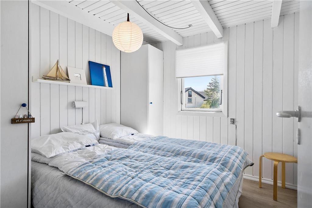Ferien bliver bogstaveligt talt tilbragt lige ved Ringkøbing Fjord, når valget falder på dette enkle og hyggelige træsommerhus. Det ligger nemlig i første parket og blot 50 meter fra surfstranden i Bork Havn, og når I sidder på altanen, kan I nyde udsigten over fjorden og de smukke kystomgivelser.