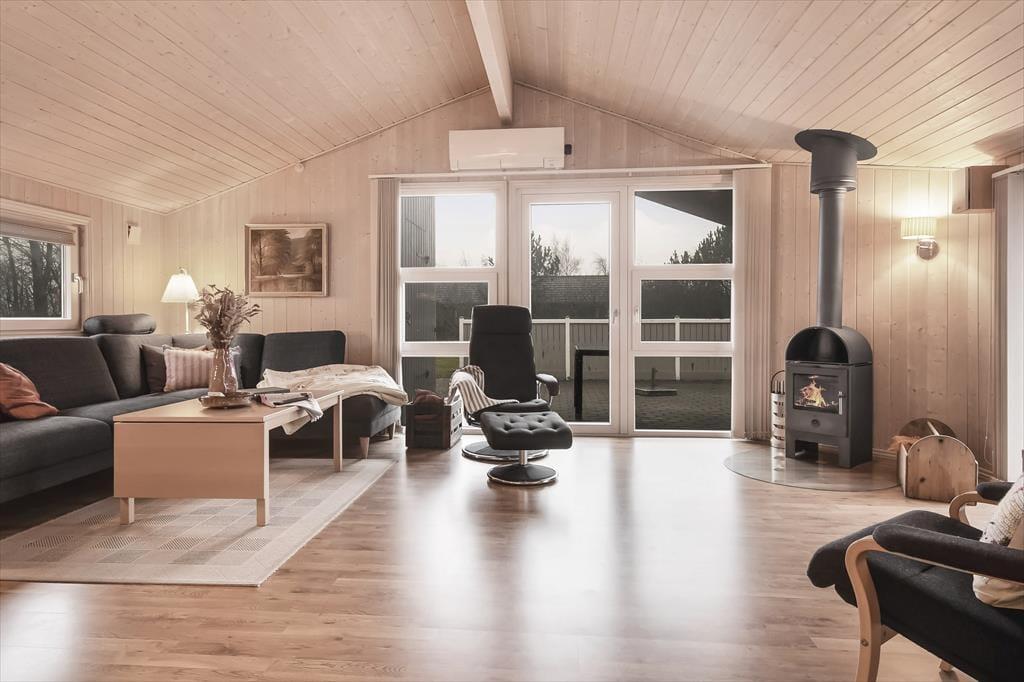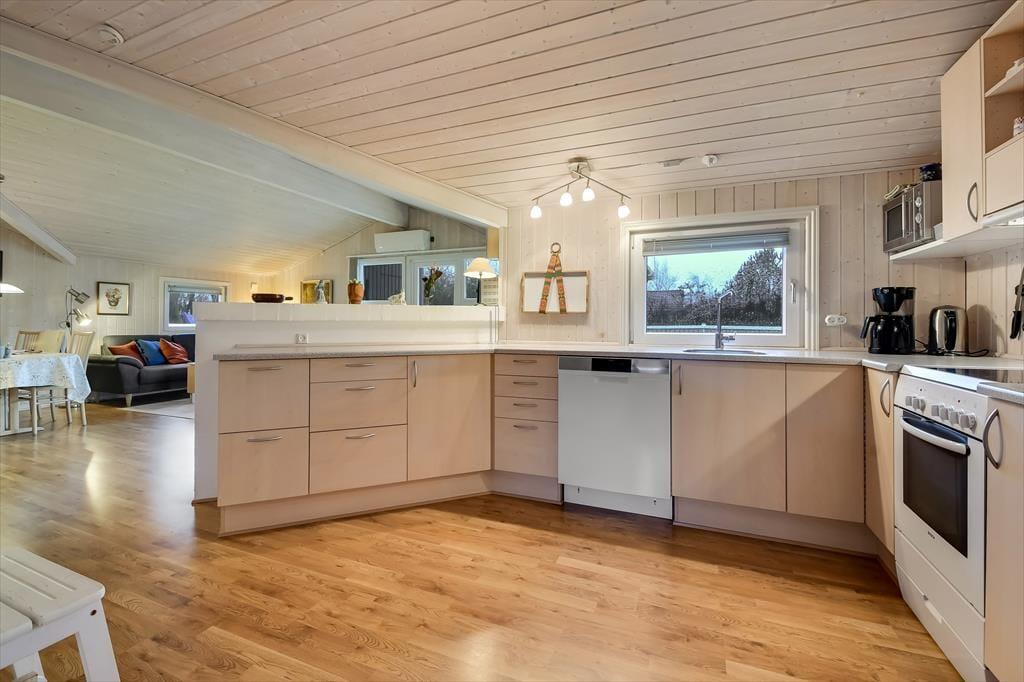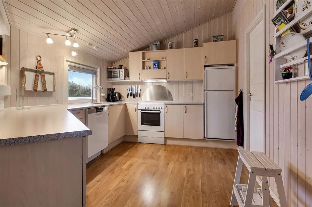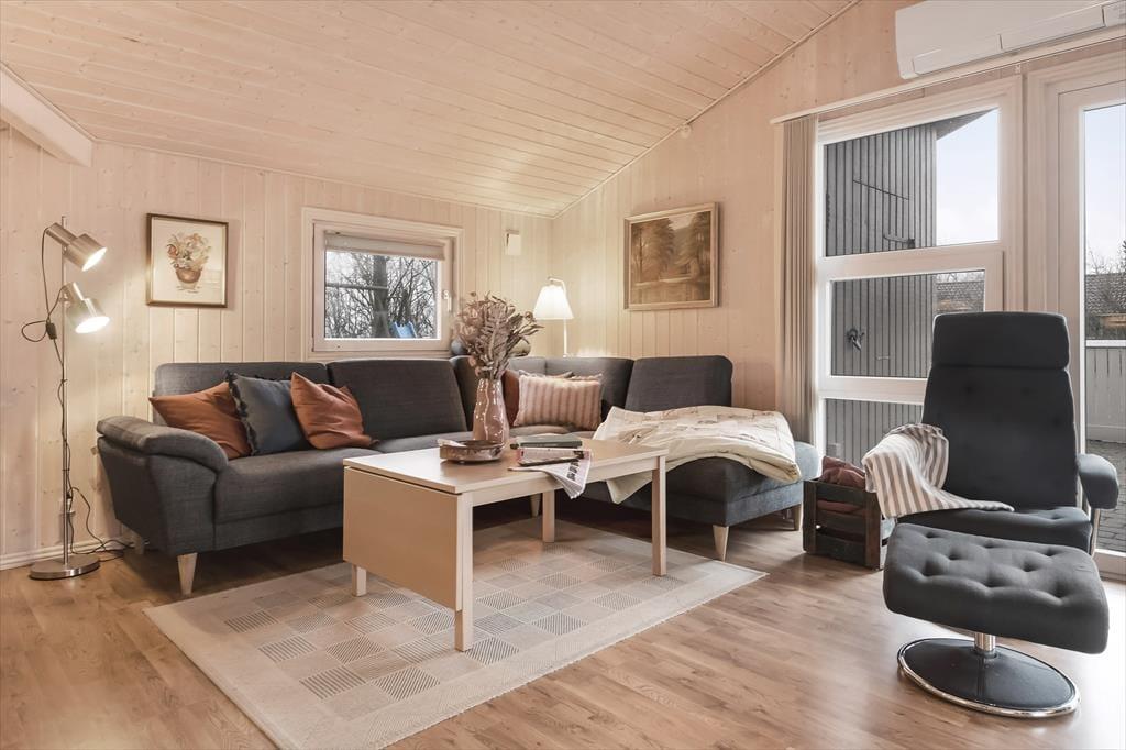 Takket være den gennemtænkte planløsning får hele familien en skøn ramme om ferietilværelsen her i huset. Her er 90 m2 at brede sig på, som blandt andet er fordelt på tre soveværelser og et bryggers med både vaskemaskine og tørretumbler. Et gæstetoilet og et badeværelse finder I også, og særligt det sidste er værd at fremhæve, for her kan I nemlig nyde livet i spabadet og i saunaen, når I trænger til total afslapning. Hyggeligt er der også i opholdsrummet, hvor et veludstyret køkken er integreret med stuen. Alt i alt er det et lyst og indbydende rum med store vinduespartier, loft til kip, pænt interiør og endda brændeovn til de kølige aftner.