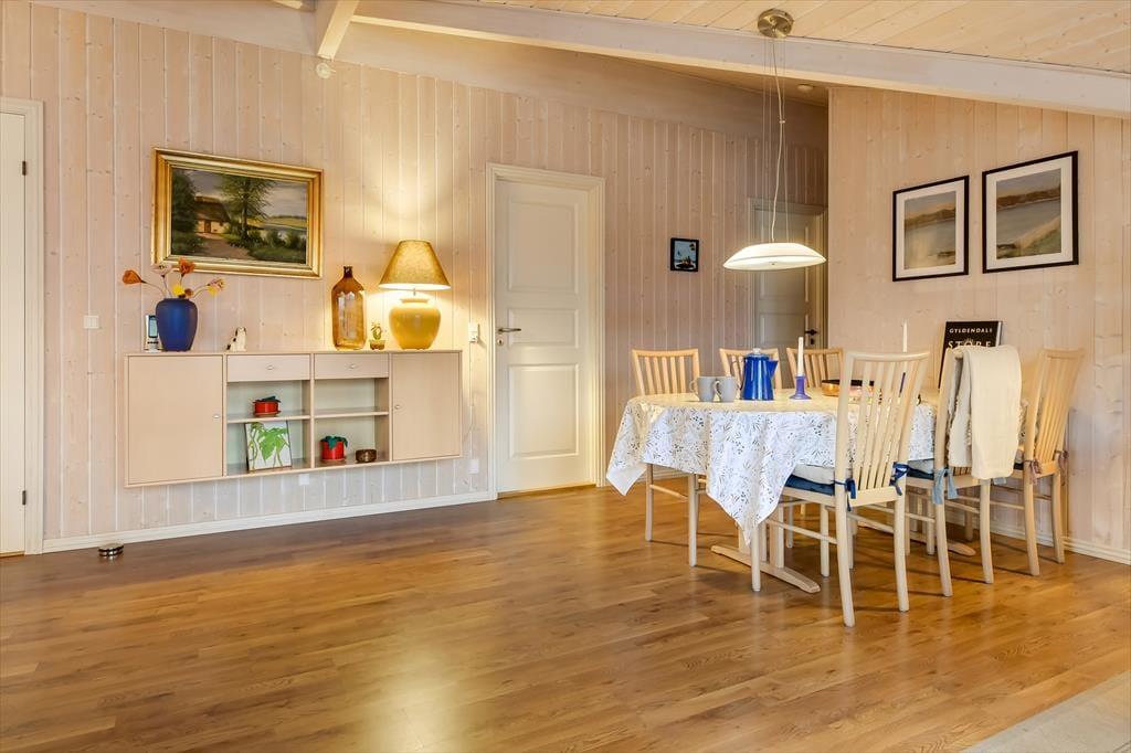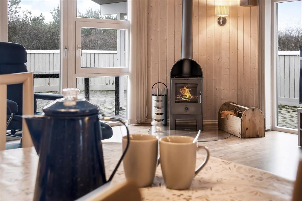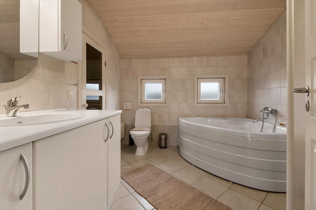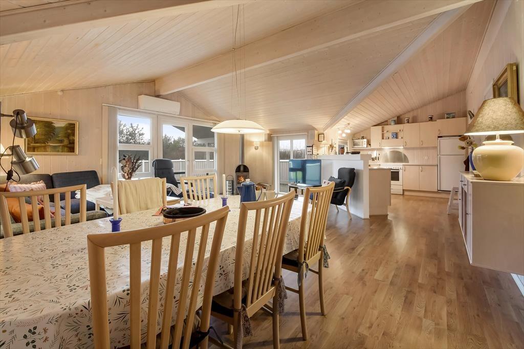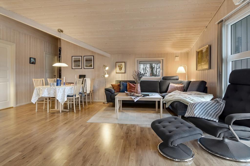 Takket være den gennemtænkte planløsning får hele familien en skøn ramme om ferietilværelsen her i huset. Her er 90 m2 at brede sig på, som blandt andet er fordelt på tre soveværelser og et bryggers med både vaskemaskine og tørretumbler. Et gæstetoilet og et badeværelse finder I også, og særligt det sidste er værd at fremhæve, for her kan I nemlig nyde livet i spabadet og i saunaen, når I trænger til total afslapning. Hyggeligt er der også i opholdsrummet, hvor et veludstyret køkken er integreret med stuen. Alt i alt er det et lyst og indbydende rum med store vinduespartier, loft til kip, pænt interiør og endda brændeovn til de kølige aftner.