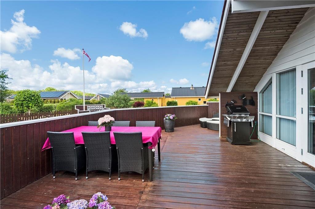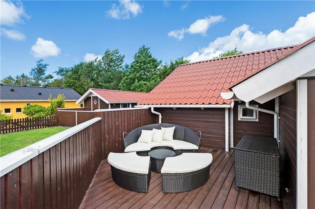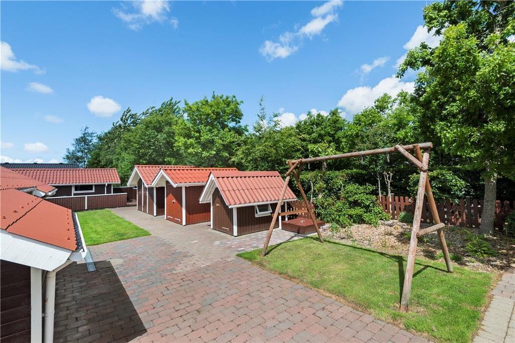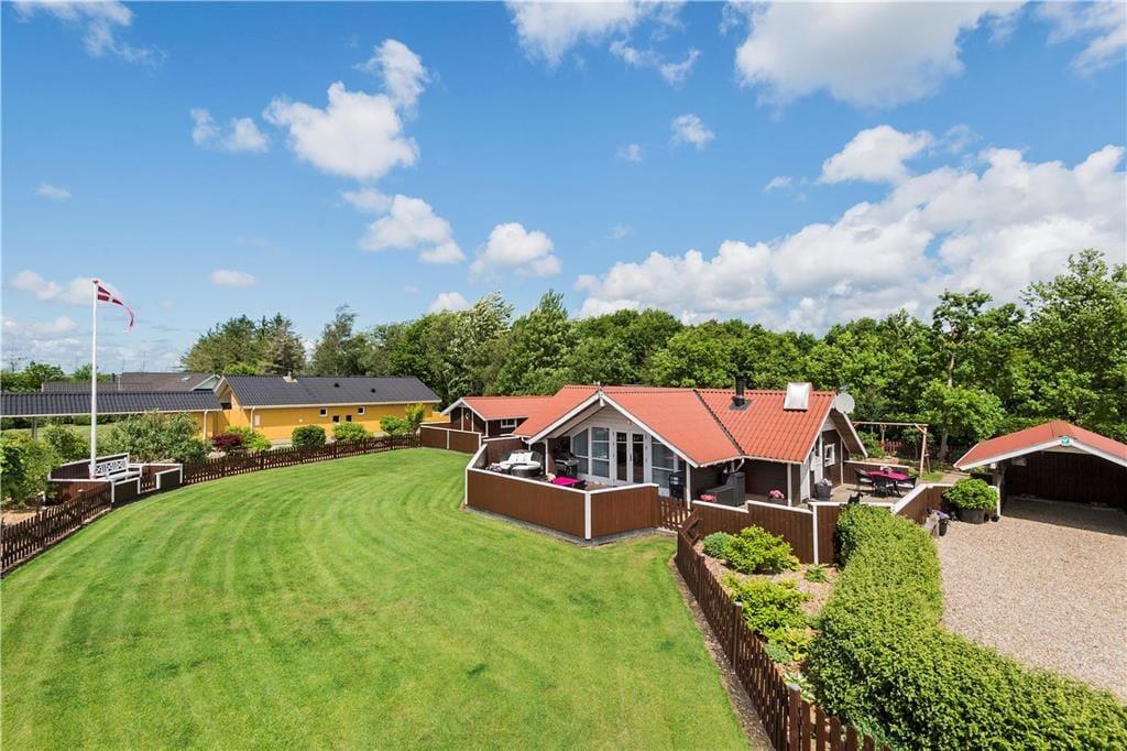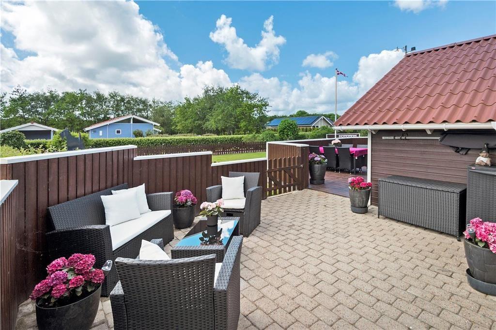 I kan roligt se frem til feriens solrige dage – ikke kun på grund af det gode vejr, men også på grund af husets velplejede udearealer. Her kan I nemlig nyde driverlivet på den lukkede og delvist overdækkede terrasse, som er udstyret med både liggestole og gode havemøbler. Til de yngste børn er der både legehus, sandkasse og gynger på grunden, som derudover byder på flotte bede, en dejlig græsplæne og en carport til bilen.