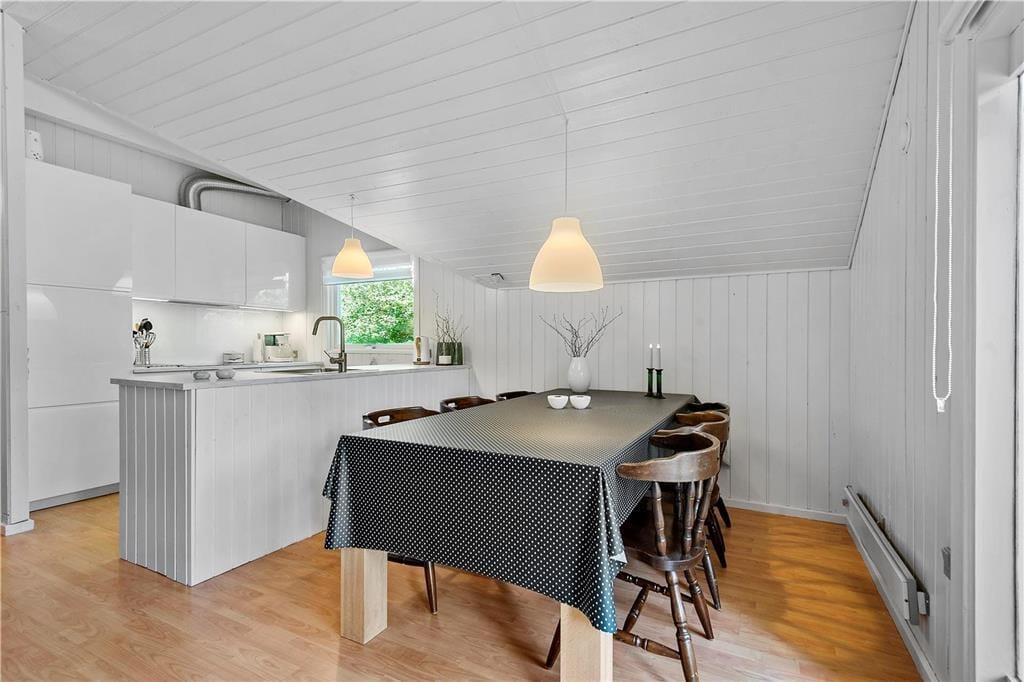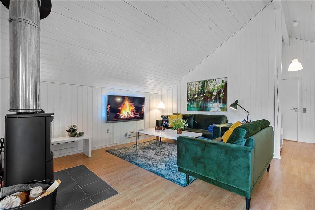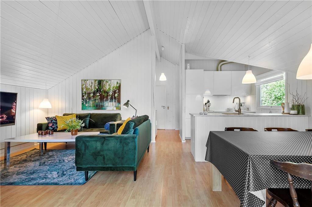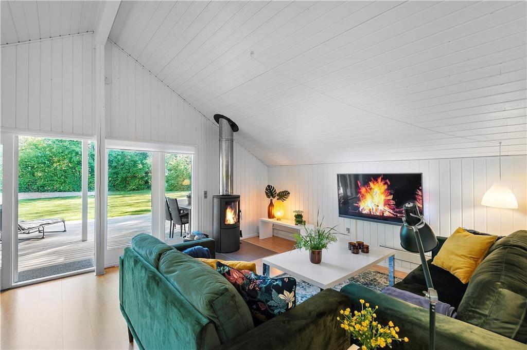 Lægger vejret op til indendørs feriehygge, kan I glæde jer til at tilbringe tiden i lyse og stilrene omgivelser. Den grundige modernisering af sommerhuset blev afsluttet i 2020, og resultatet er en dejlig feriebolig med et lækkert badeværelse, et veludstyret åbent køkken og komfortabelt møblement i stuen. En brændeovn hører til et af de mere klassiske charmetræk, mens TV’et med Chromecast gør det let at finde frem til en god film, når I trænger til at slappe af i sofaafdelingen. Som en af de betænksomme detaljer er der mørklægningsgardiner på alle tre soveværelser, og der er også både højstol og barneseng til rådighed for børnefamilier. Et andet børnevenligt træk er sommerhusets anneks, som er blevet omdannet til et dejligt legerum, så de yngste har deres helt private hyggekrog.