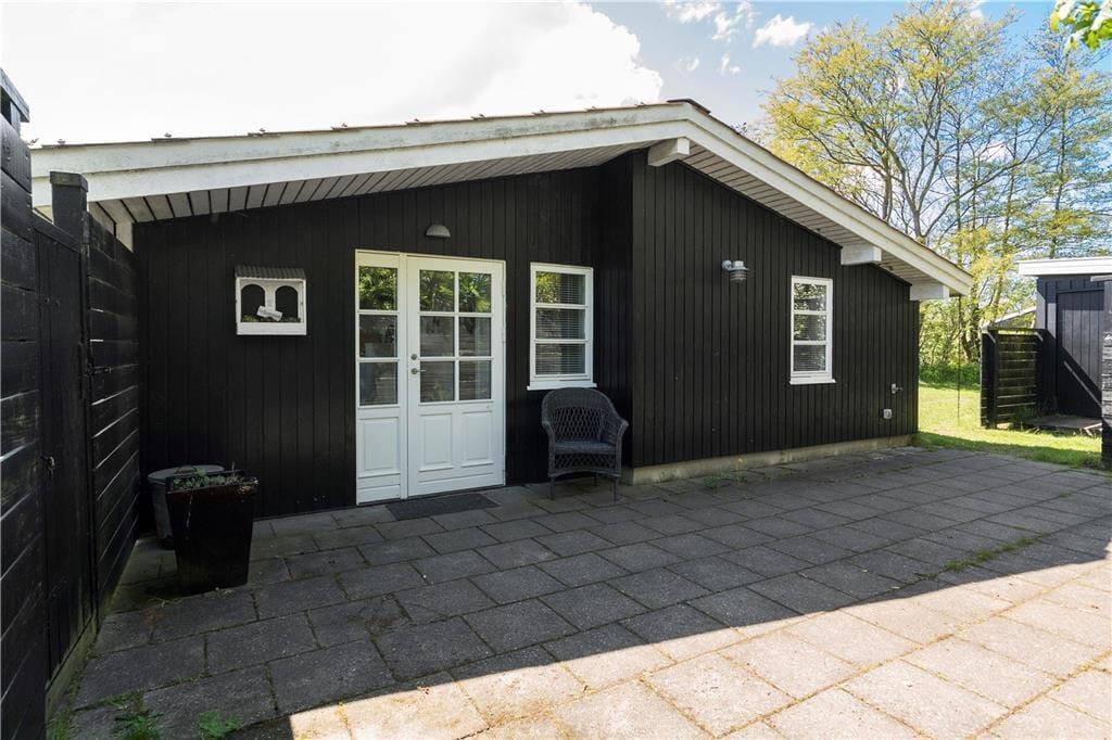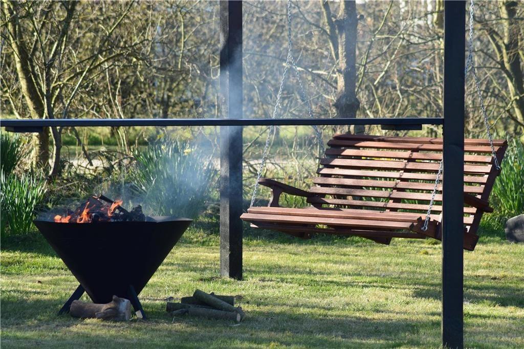 Terrassemiljøet er stort og delvist overdækket, og det breder sig om flere sider af feriehuset, så der er flere gode solkroge at vælge imellem. Mod øst kan I skue ud over det åbne marklandskab, der breder sig på den anden side af hækken – og det er en dejlig udsigt, uanset om I slapper af i havestolene eller leger på græsplænen. Desuden er der et flot gyngemiljø med bålplads.