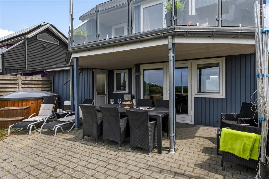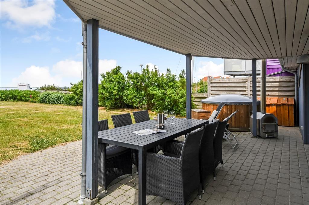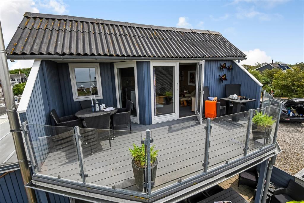 Udsigten over Ringkøbing Fjord er allermest imponerende fra førstesalens altan, for her kan I skue ud over surfstranden og det åbne vand – og mod nord kan I kigge over mod de røde bygninger, der ligger ved byens havn få hundrede meter væk. Vil I nyde solskinnet først på dagen, kan I rykke driverlivet om på sommerhusets østside, og senere på dagen er det skønt at sidde på den delvist overdækkede terrasse i den vestvendte have.