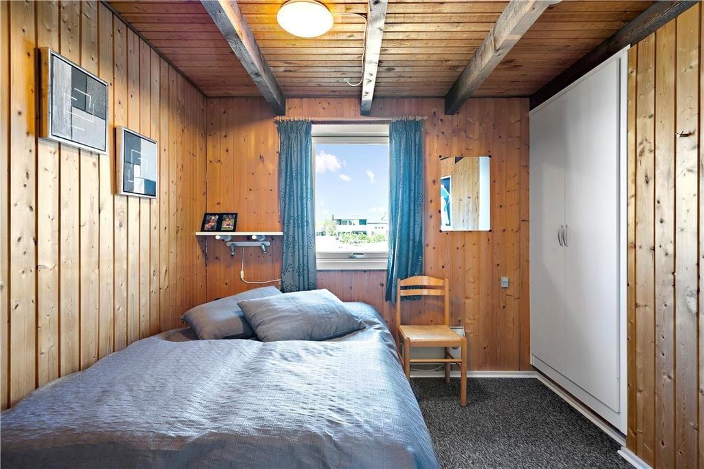Feriehuset har ligget på denne attraktive adresse siden 1978, hvor det blev opført som en funktionel feriebolig i to plan. Siden er der sket en del inden døre, for huset er nemlig renoveret i 2012 og opdateret med moderne bekvemmeligheder –inklusiv wi-fi, vaskemaskine og varmepumpe med køl. Førstesalens altan er desuden blevet udstyret med glasafskærmning, så når I sidder inden døre i stuen, er der intet, der forstyrrer den fine fjordudsigt. I stuen er den ene af de to alkover indrettet som et legehjørne til børnene, mens den anden alkove fungerer som sengeplads til to personer, og i stueplan er der derudover plads til fire feriegæster i dobbeltsengene på to soveværelser. Et pænt badeværelse og et rummeligt spisekøkken med brændeovn ligger også her, og fra entréen har I direkte adgang til en lille, østvendt havestue.