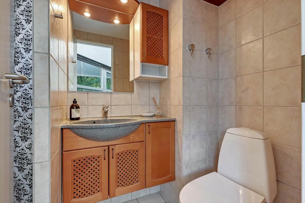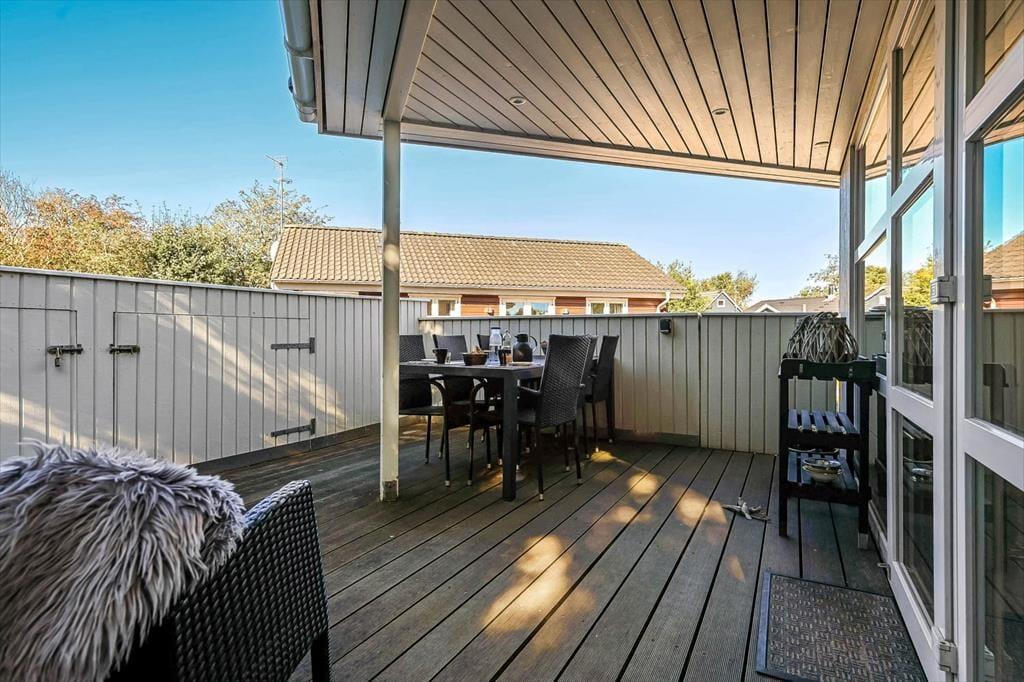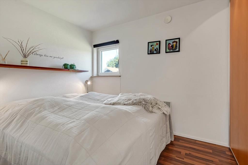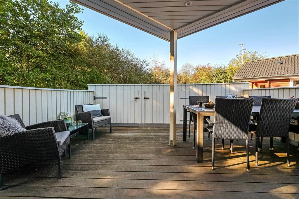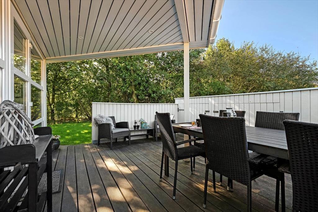 Kvadratmeterne er ligeledes godt udnyttede ude i det fri på lille, men velanlagte grund. Bilen kan parkeres foran huset, hvor der også er et mindre græsareal med en træbænk. Baghaven er mere ugeneret og derudover helt indhegnet, så her og på den delvist overdækkede terrasse er der godt at være for hele familien, inklusiv eventuelle husdyr.