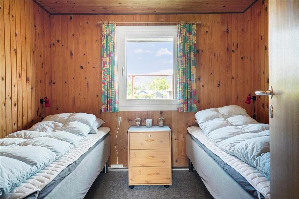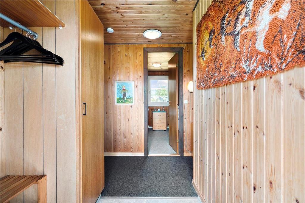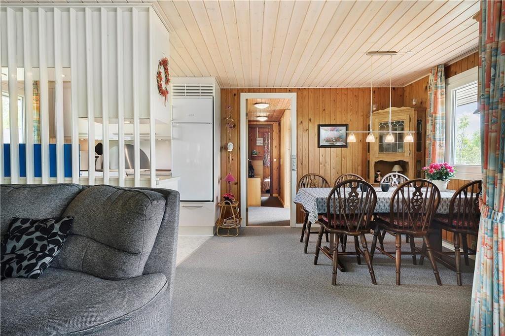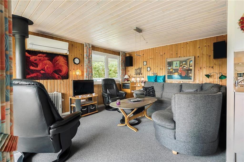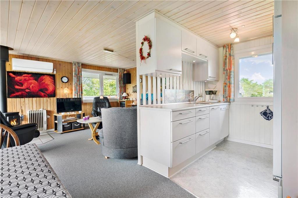 Der er tale om et klassisk træsommerhus fra 1975, som gennem årene er pænt vedligeholdt og opdateret – blandt andet med opvaskemaskine, trådløst internet, varmepumpe med køl og andre moderne bekvemmeligheder. Huset måler 60 m2, som blandt består af tre soveværelser med i alt fem sengepladser: På det ene sovegemak finder I en dobbeltseng og på de to andre henholdsvis en og to enkeltsenge. Et badeværelse hører også med til planløsningen, og i den ene ende af sommerhuset ligger køkken og stue i åben forbindelse. Det er et hyggeligt sted at tilbringe tiden sammen, og når ferieprogrammet for eksempel står på sofahygge med en god film på fladskærmen og ild i brændeovnen, føles hverdagen hurtigt meget langt væk.