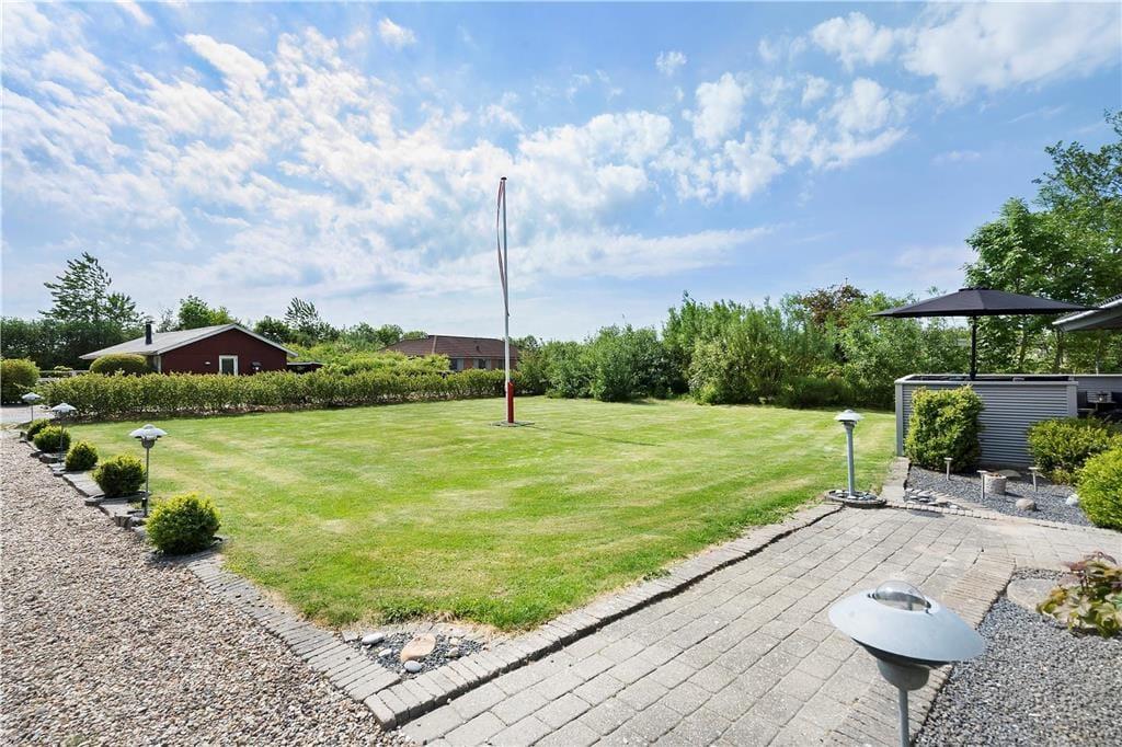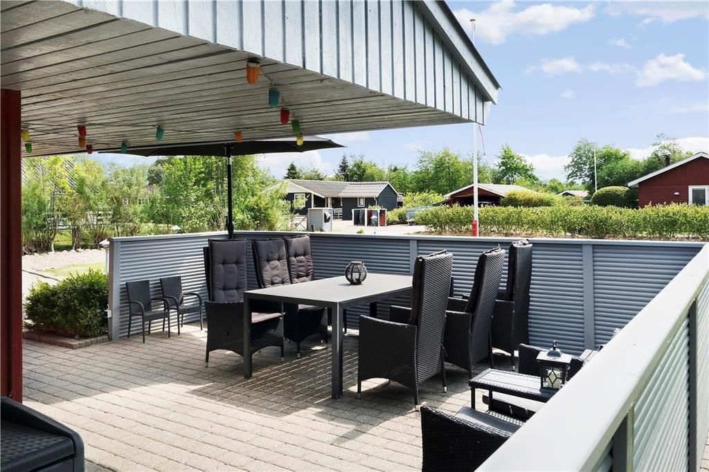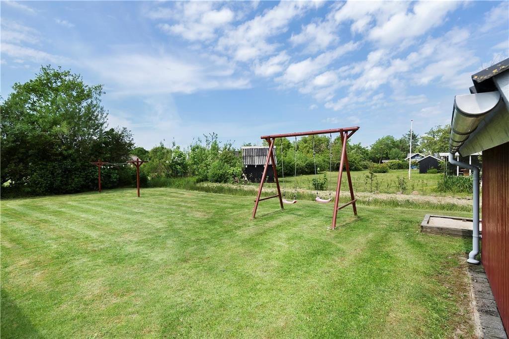 Sommerhusets terrasse er den helt rette opholdsplads, når I har lyst til en tilbagelænet stund i en god havestol. Et hegn rundt om terrassen understreger fornemmelsen af privatliv og kan også give lidt læ, hvis det skulle være nødvendigt. På græsplænen er der desuden godt med plads til at spille bold og boltre sig, og der er endda både gynger og sandkasse til de alleryngste legebørn.