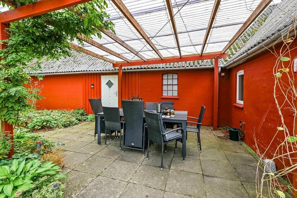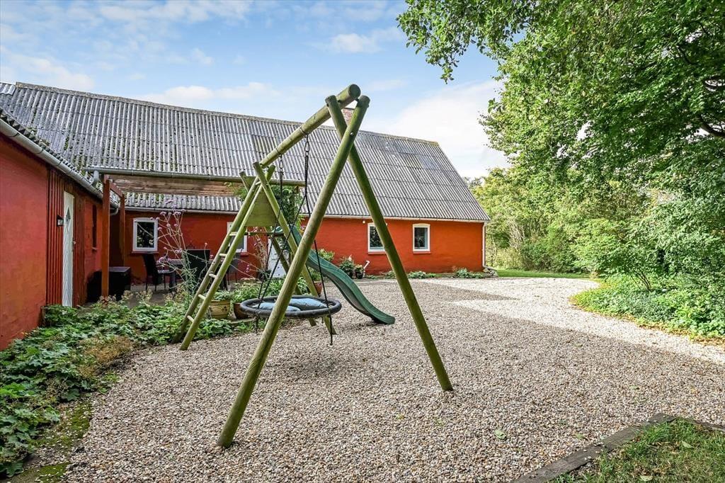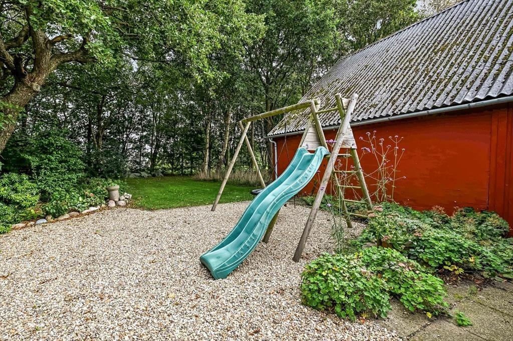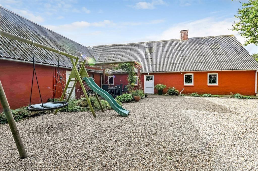 Grunden er med sine 5500 m2 imponerende stor, så der er masser af plads til at løbe, spille bold og lege. Husets vidtstrakte græsplæne ligger ud til åbne marker, så omgivelserne er virkelig landlige og fredelige. Vil I hellere sidde mere ugeneret, kan I flytte driverlivet om på gårdspladsen, hvor I kan slappe af på terrasserne og nyde synet af den grønne beplantning.