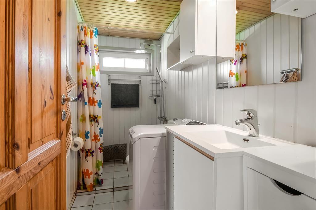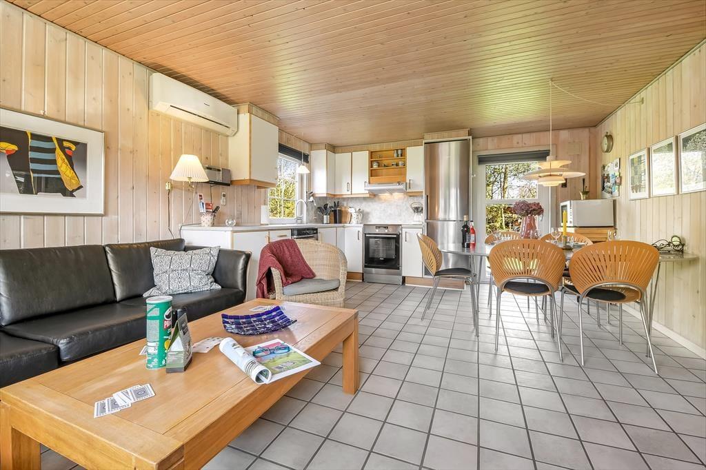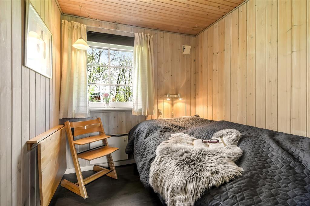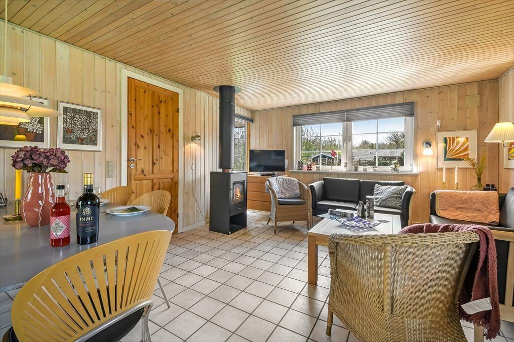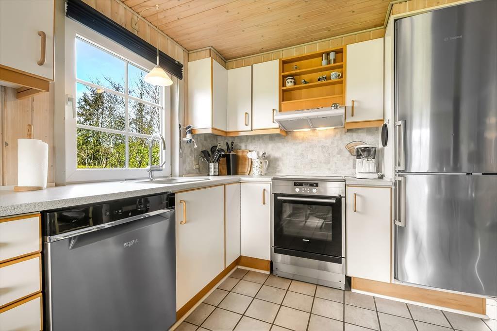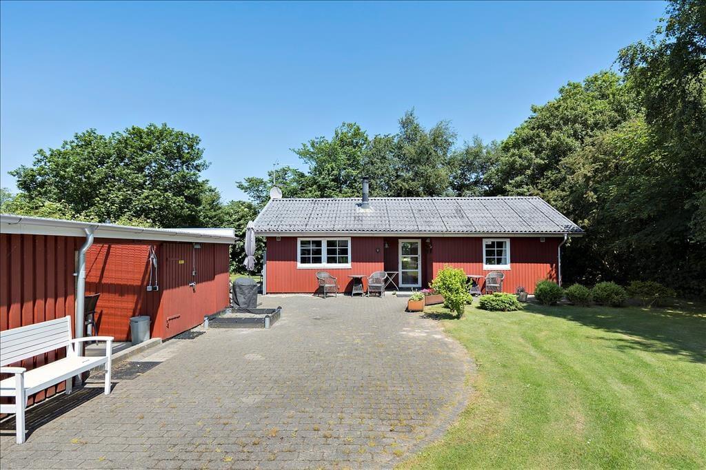 Sommerhuset præsenterer sig på køn og klassisk vis med rød træfacade og hvide vinduesrammer midt i den grønne have. Når I træder indenfor, kan I se og mærke, at huset er blevet ordentligt vedligeholdt, og takket være den den hyggelige indretning kan I hurtigt føle jer hjemme. Efter et renoveringsprojekt i 2014 er der moderne interiør og bekvemmeligheder i de lyse og indbydende rum – inklusiv varmepumpe med køl og en god køkkenafdeling i opholdsrummet. En brændeovn er her også, så I kan hygge jer med at tænde op, mens aftensmaden bliver forberedt, og der er god musik på musikanlægget. To dobbeltsenge og to enkeltsenge er fornuftigt fordelt på husets tre soveværelser, og også badeværelset er godt indrettet med blandt andet bruser og vaskemaskine.