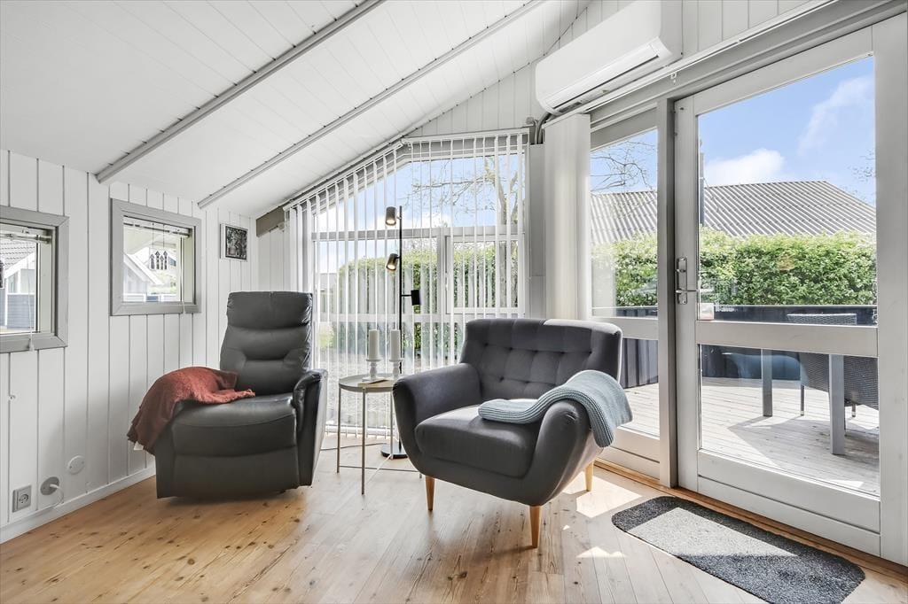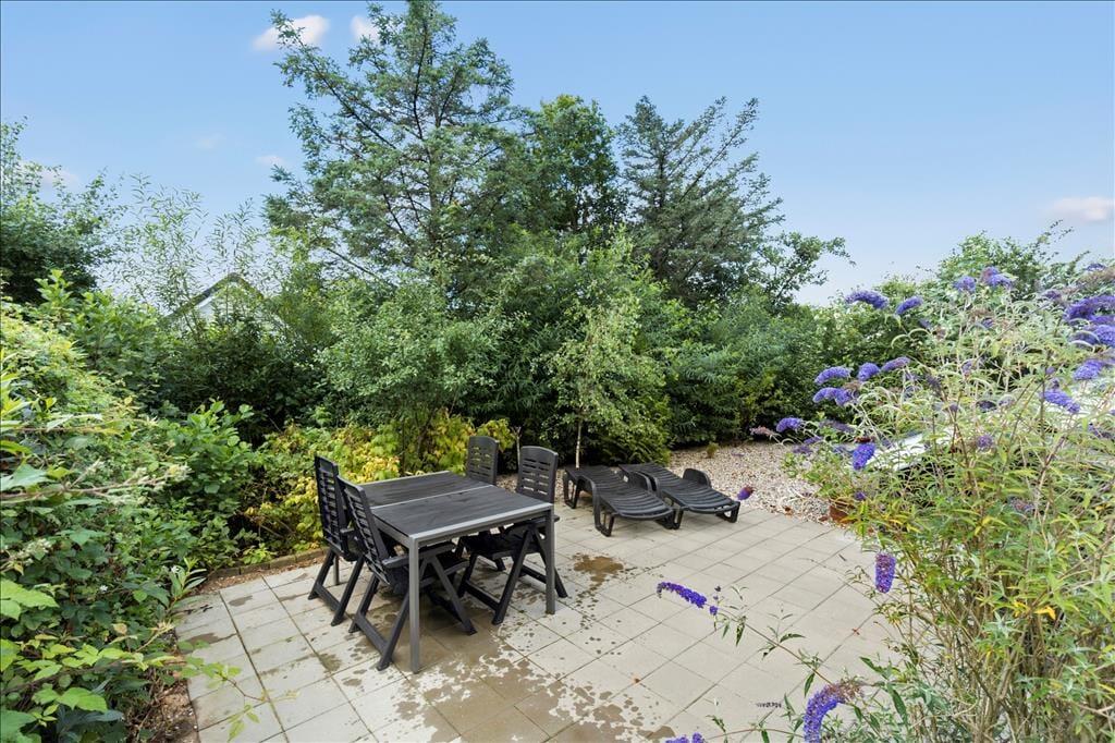 Sommerhusliv rimer på udendørsliv – og i dette hus kan det nydes i fulde drag. Mod syd er der en skøn, afskærmet træterrasse med masser af sol. Og på den anden side af huset er der endnu et terrasseareal med havemøbler. Perfekte rammer, hvis I vil dække op til en hyggelig frokost i det grønne eller bare dase i en liggestol med en god krimi.