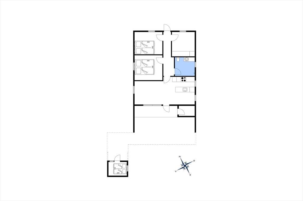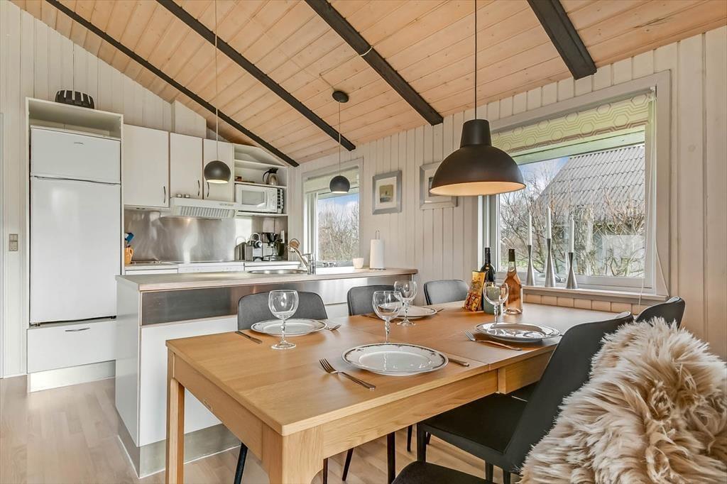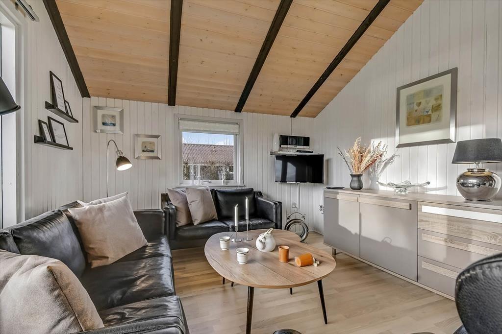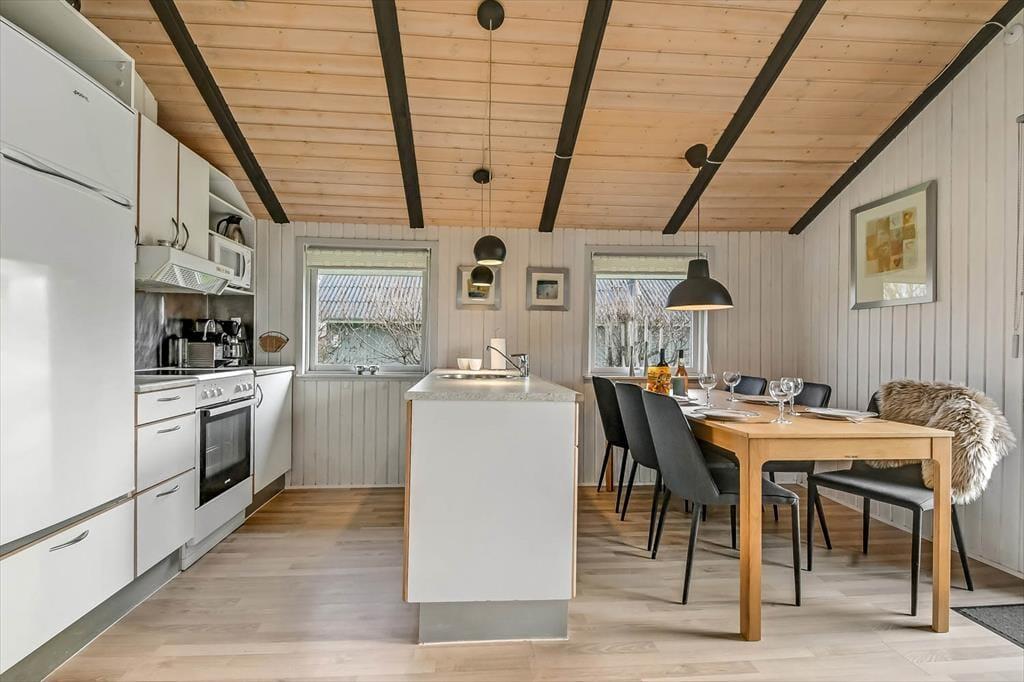 Alle rum i sommerhuset er hyggeligt indrettet, og også annekset er fuld af charme. Alligevel er det sandsynligvis i sommerhusets stue, at I vil samles, for det er nemlig et dejligt opholdsrum med spisebord, TV og en komfortabel sofaafdeling. En velindrettet køkkenafdeling er også del af rummet, så selv når I står med aftensmaden, kan I tage del i feriehyggen. Fra sommerhusets gang har I direkte adgang til et bryggers med vaskemaskine og tørretumbler, et badeværelse og to soveværelser med i alt fire sengepladser. Dertil kommer anneksets dobbeltseng, så det betyder, at i alt seks personer kan samles her i ferieoasen.