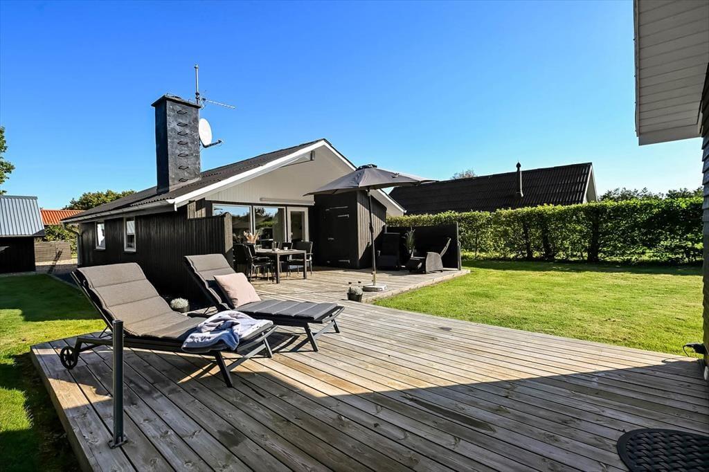 På grunden er der god plads til at parkere på grusbelægningen foran huset, mens baghaven er dedikeret til leg og afslapning. På græsplænen kan både børn og voksne spille bold og havespil, mens gyngestativet og sandkassen formentlig mest er til de yngste feriemedlemmer. Står der afslapning på programmet, er den sydvendte, delvist overdækkede terrasse et herligt sted at nyde solen det meste af dagen.
