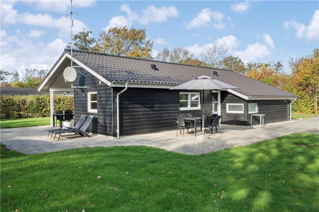 I kan se frem til en skøn ferie i dette dejlige træsommerhus, der ligger på en stor grund i Bork Havn.