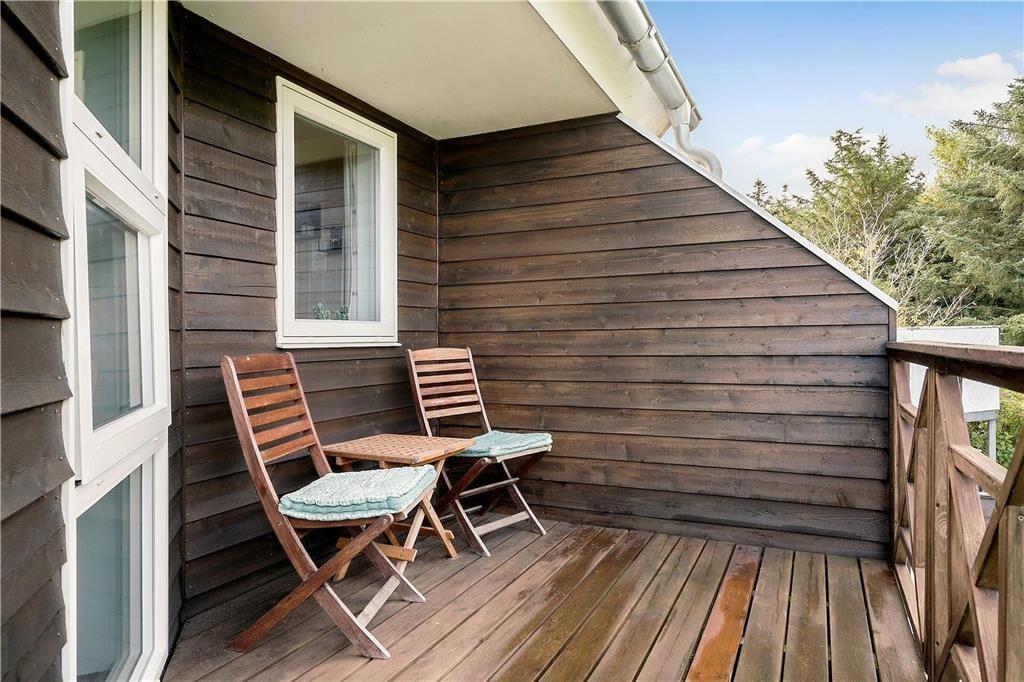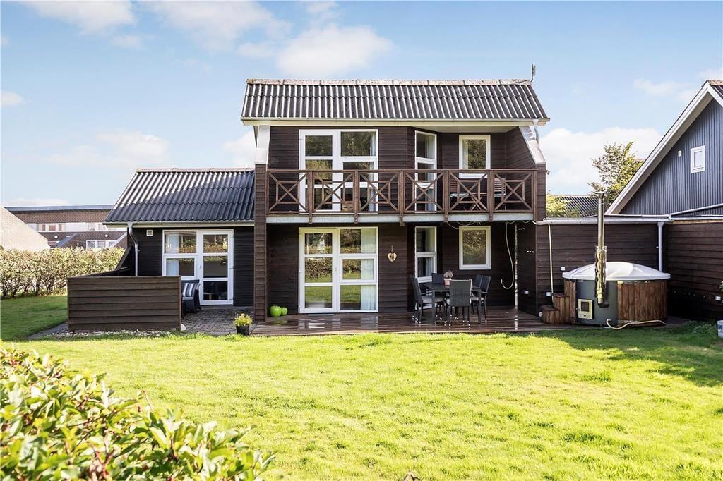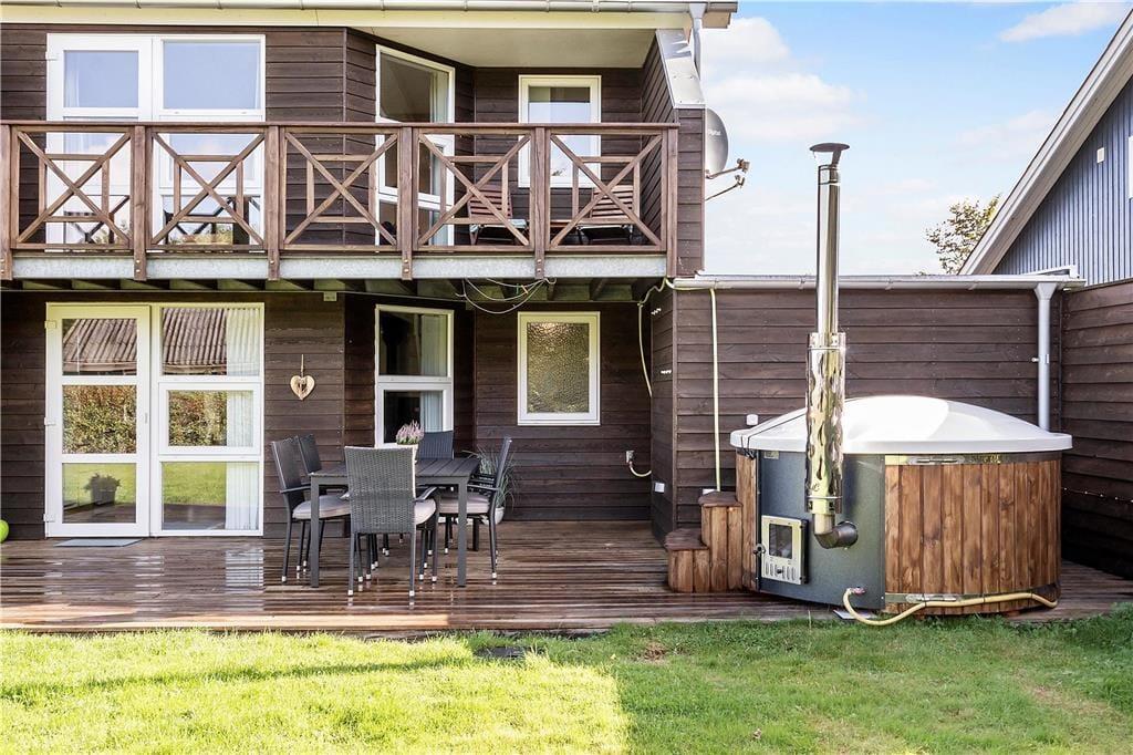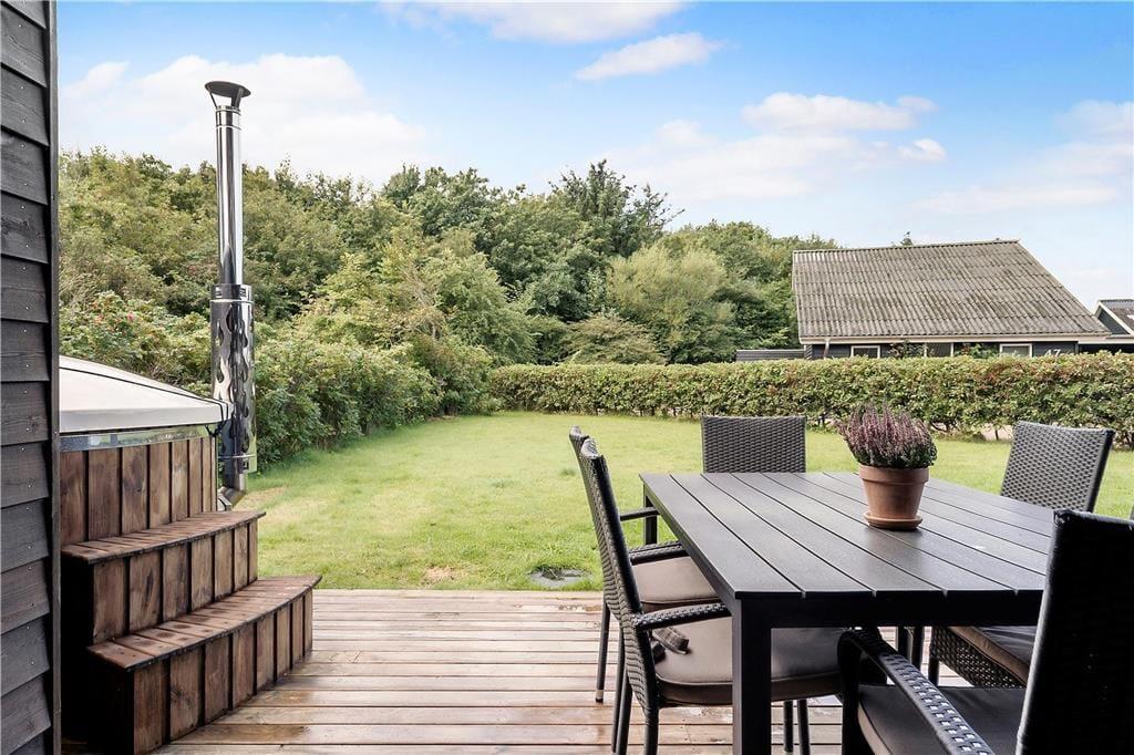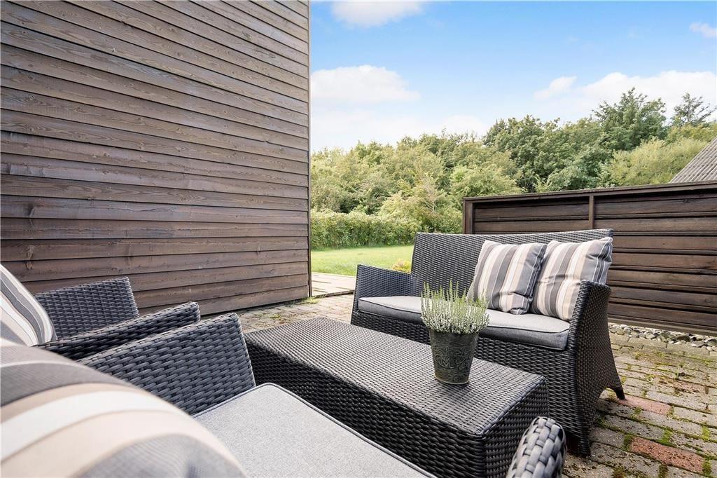 Både oppe og nede kan I træde lige ud i det fri, når vejret indbyder til udendørs driverliv. Ikke bare førstesalens altan, men også havens store terrasse er orienteret mod sydvest, så der er gode solforhold en stor del af dagen. Græsplænen indbyder til leg og havespil, og trænger I virkelig til at slappe af, er det skønt at gøre klar til en tilbagelænet pause i det udendørs vildmarksbad til seks personer.