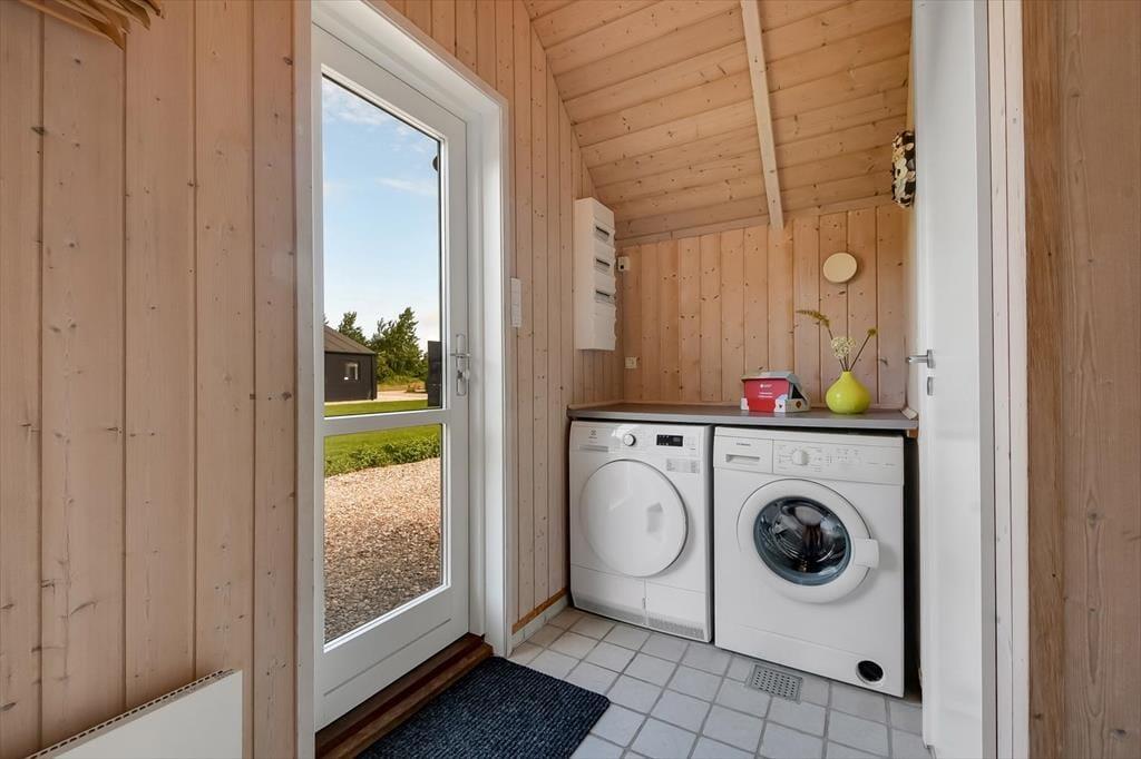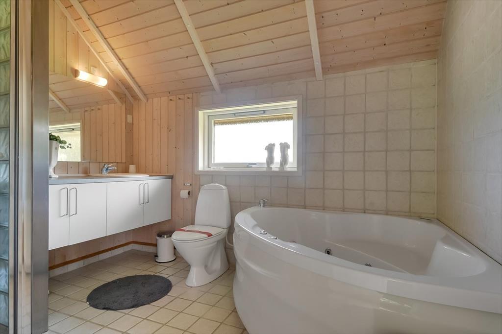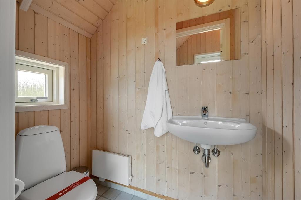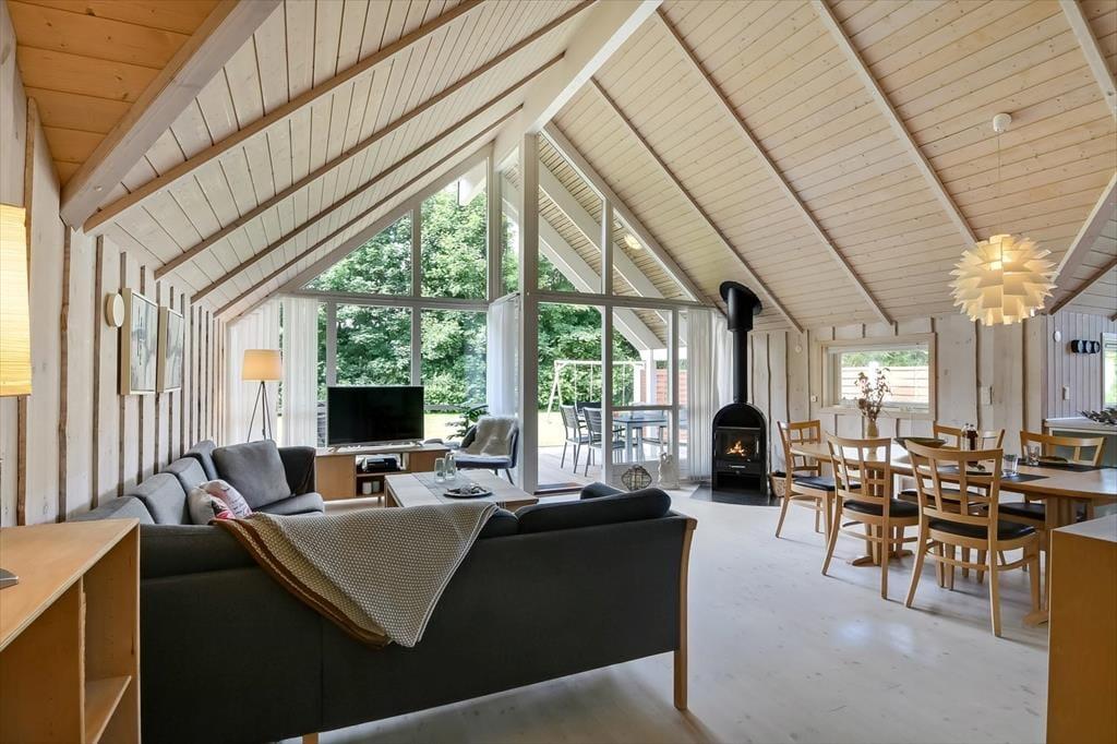Med tre gode soveværelser, et badeværelse, et gæstetoilet og en stor stue med åbent køkken kan seks personer nemt og bekvemt være i sommerhuset – så I kan overveje, om I skal invitere et par venner med på ferie. Uanset hvem og hvor mange I bliver, vil I garantere sætte pris på husets indbydende atmosfære og hyggelige indretning med komfortabelt møblement. Overalt er der lyse trælister på væggene og loft til kip i klassisk sommerhusstil, og særligt i stuen er lysindfaldet ekstra godt takket være det store vinduesparti, der går fra gulv til loft. En brændeovn står klar til de kølige aftner, og hvis I har brug for digital underholdning, gør stuens Smart-TV det nemt at se jeres yndlingsfilm og -serier. Trænger I til at slappe fuldstændigt af, kan I gøre klar til et varmt spabad og en tur i saunaen på det store livsnyderbadeværelse.