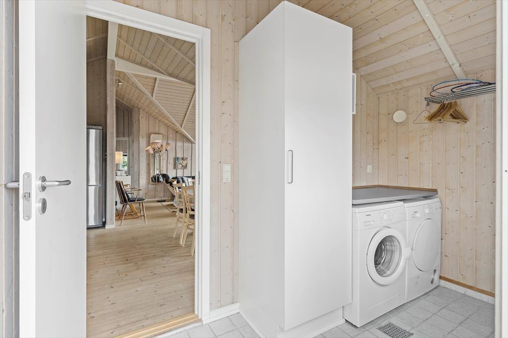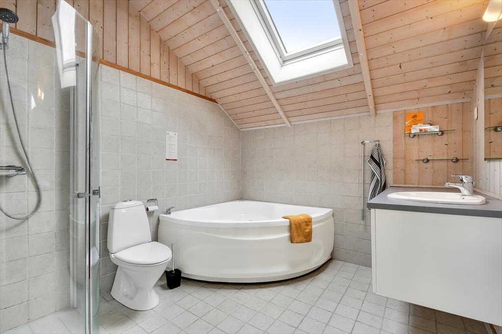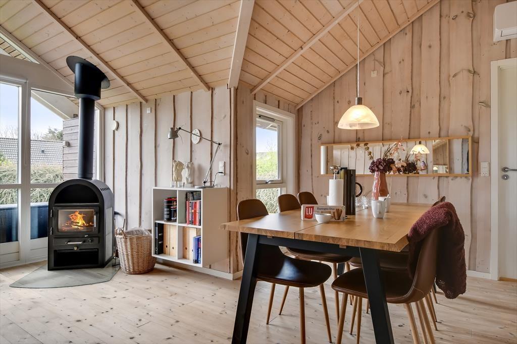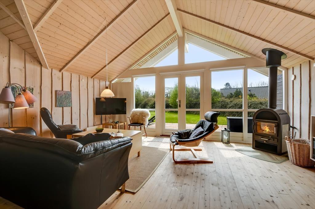 Inden døre giver sommerhusets trævægge og loft til kip rummene en klassisk fremtoning, og møblementet er nøje udvalgt, så det understreger hyggeatmosfæren. Stuens brændeovn er naturligvis også med til at skrue den gode stemning i vejret, når I tænder op og lader varmen sprede sig på en kølig eftermiddag eller aften, hvor den står på rendyrket afslapning i sofaafdeling eller omkring spisebordet. I det åbne køkken kan I tilberede dagens små og store feriemåltider, og får I brug for at vaske tøj, er der både vaskemaskine og tørretumbler i bryggerset. Tre gode soveværelser, et gæstetoilet og et stort badeværelse finder I også i sommerhuset – og sidstnævnte er værd at fremhæve, for her er både gulvvarme, spabad og sauna med til at forsøde livet.
