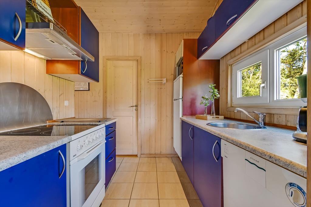 Det er virkelig værd at bemærke, hvor godt sommerhuset er indrettet. Det er ikke prangende i størrelsen, men alligevel er der fundet plads til tre gode soveværelser, et stort badeværelse, en entré med vaskemaskine samt en dejlig åben opholdsafdeling med stue og tilstødende køkken. Alle rum præsenterer sig på lys og indbydende vis – ikke mindst stuen, som er indrettet med brændeovn og komfortabelt møblement, der indbyder til hyggeligt familiesamvær med god tid til at snakke og slappe af. Ferielivet kan også nydes i stor stil på badeværelset, for det er udstyret med både spabad og sauna, som er helt perfekt til en kølig eftermiddag eller aften.