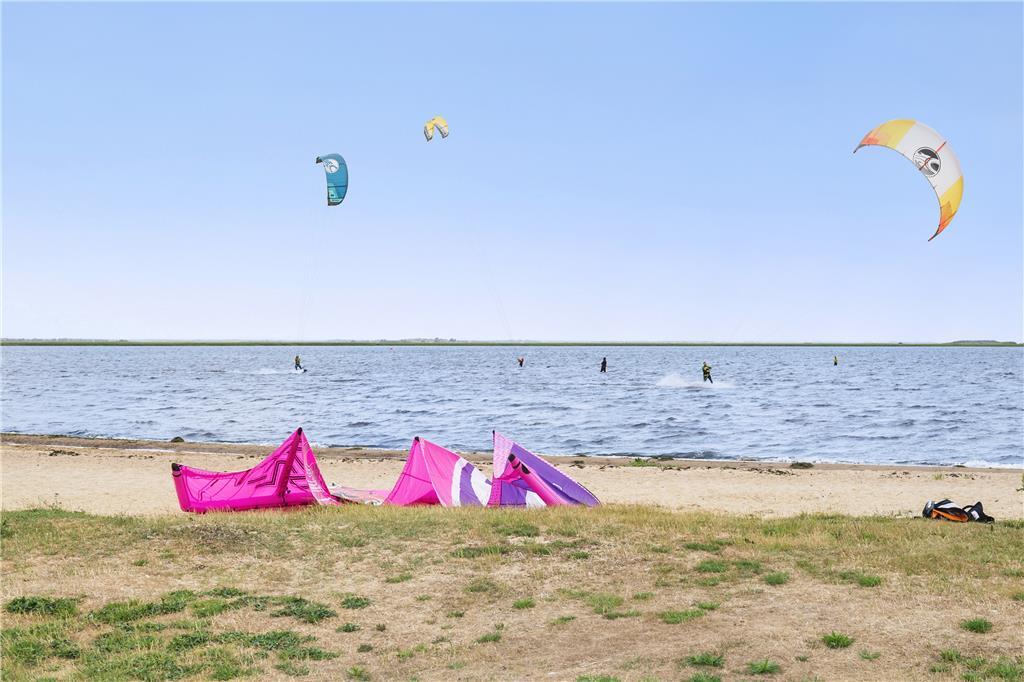 Hvis I drømmer om at komme helt ned i tempo på ferien, er det skønt at bo på Strandvænget, som er en lukket vej med en rar atmosfære. Bilen kan I sagtens lade stå i carporten, når I vil ud i lokalområdet, for til fods kan I nemt bevæge jer rundt til hyggelige familieaktiviteter i Bork Havn: Nærmeste legeplads ligger stort set lige på den anden side af vejen, og hvis I vil ud til vandet, leder kvarterets små stier jer på vej mod Ringkøbing Fjord 800 meter væk. Den nærmeste strand er en surfstrand, som tiltrækker både surfere, kajakroere og andre vandsportsudøvere, og hvis I hellere vil bade, kan I fortsætte hen til Bork Havns lille badestrand, der ligger på den anden side af byens hyggelige havnemiljø. Som lejere af sommerhuset har I desuden gratis adgang til seks lokale badelande og idrætscentre i lokalområdet, hvis det lokker mere med en indendørs badetur (www.svoem-leg.dk) samt fri bowling i Varde 1 time pr. dag.