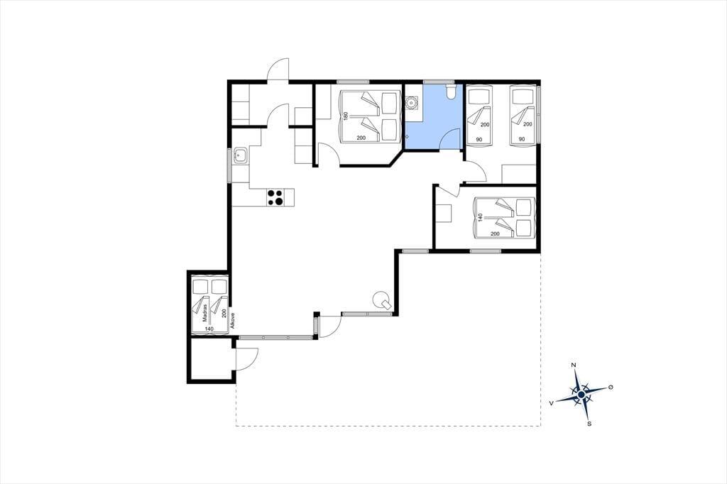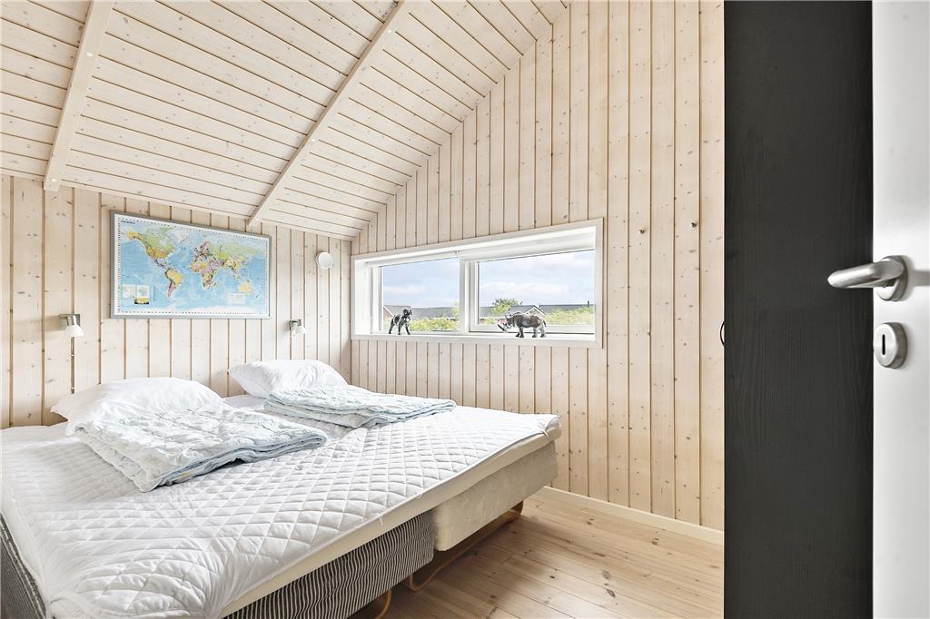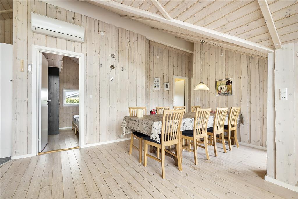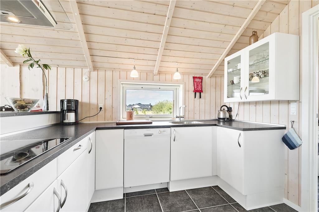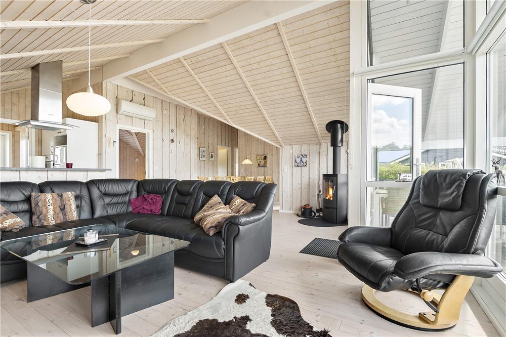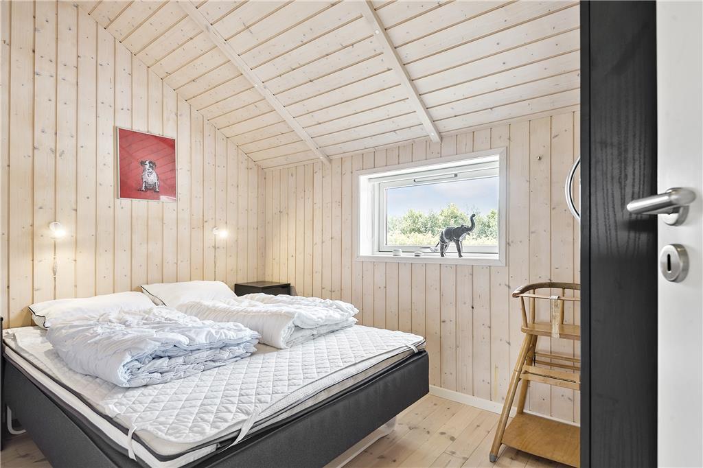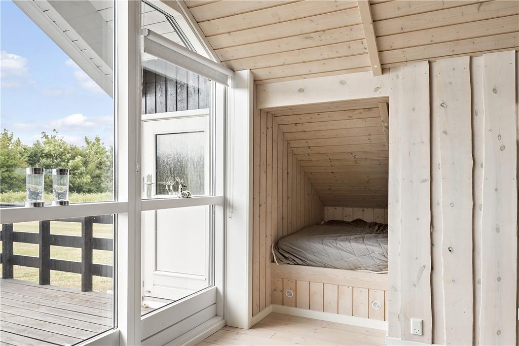 Der blev tænkt på både hygge og funktionalitet, da sommerhuset blev bygget i 2012. På det funktionelle plan kan rumfordelingen nævnes, for med tre gode soveværelser, et badeværelse, et bryggers med vaskefaciliteter samt en stor stue med integreret køkken finder I alt, hvad I skal bruge inden døre. Stuens brændeovn hører til hyggedetaljerne – og det samme gør alkoven, for den er perfekt i løbet af dagen, hvis I vil læse eller har lyst til en lille siesta. Alle rum præsenterer sig i øvrigt på lys og indbydende vis, og særligt i stuen er lysindfaldet ekstra optimalt takket være det store vinduesparti, der går fra gulv til loft.
